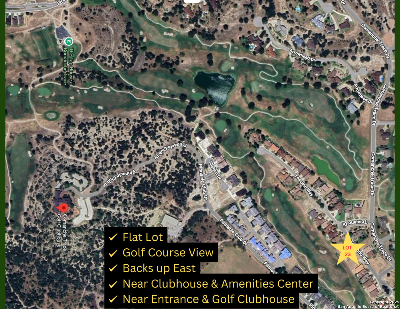 Welcome to Comanche Trace, a premier 27-hole championship golf community where luxury meets lifestyle. This spacious lot at 2041 Toscano Way offers the perfect setting to design and build your custom Hill Country retreat. Tucked in the heart of the community, you'll enjoy access to a private Guadalupe River park, a stocked fishing lake, scenic walking trails, a community garden, and more. Optional golf and social memberships open the door to resort-style amenities and connections with neighbors. Just minutes from downtown Kerrville, this homesite blends tranquility, convenience, and the opportunity to create your dream home in a sought-after location.
