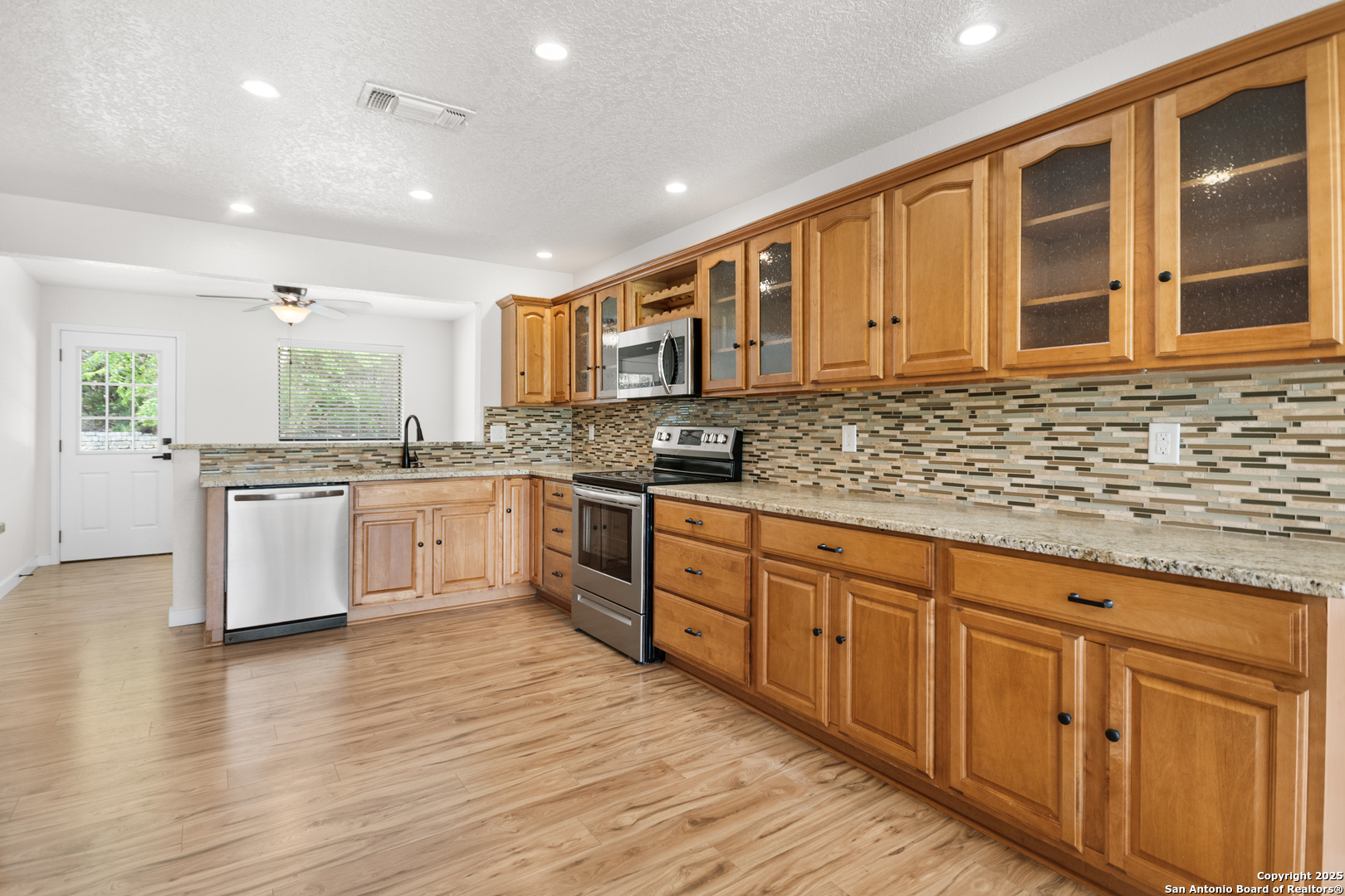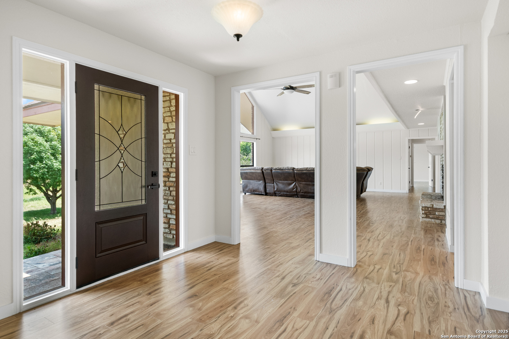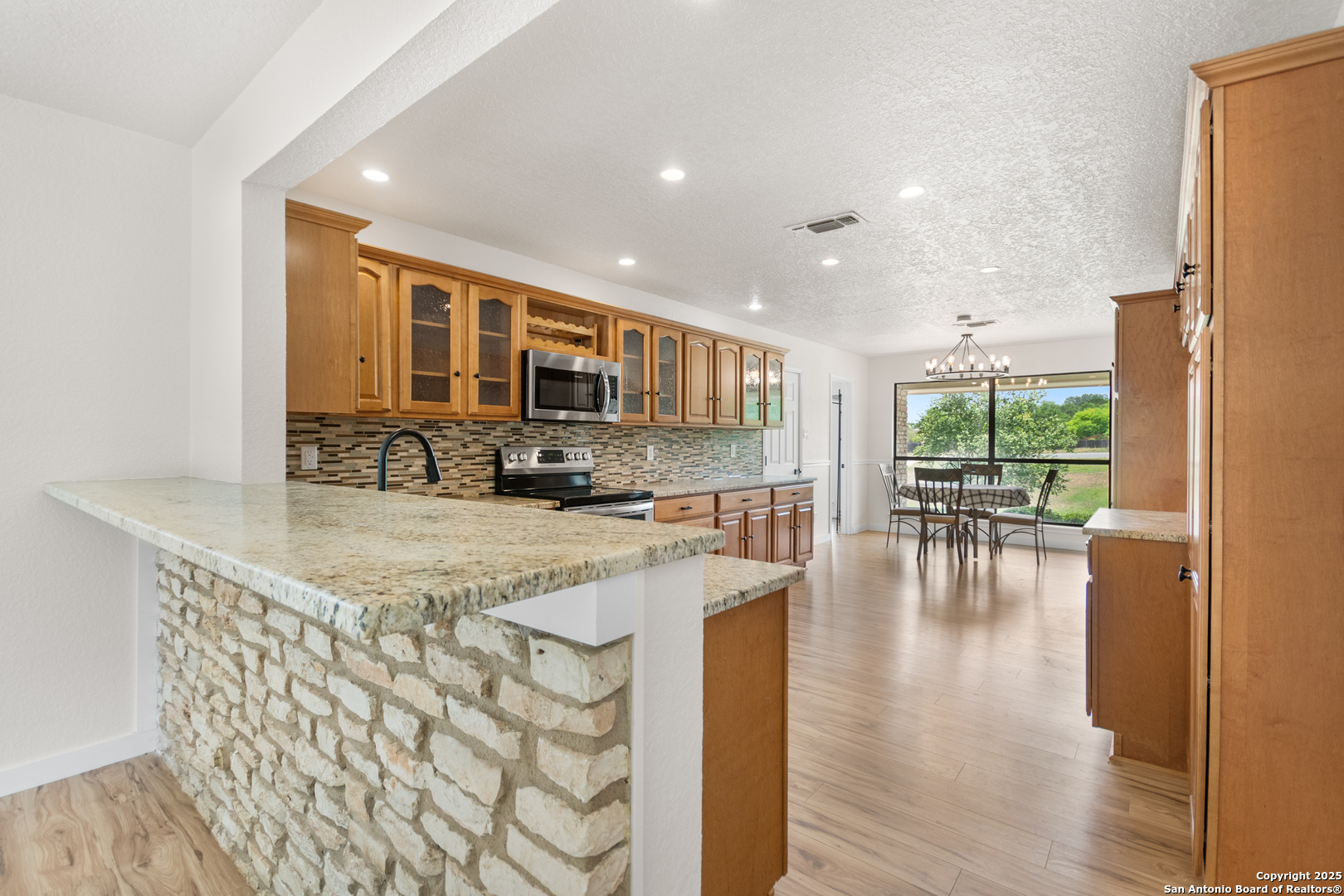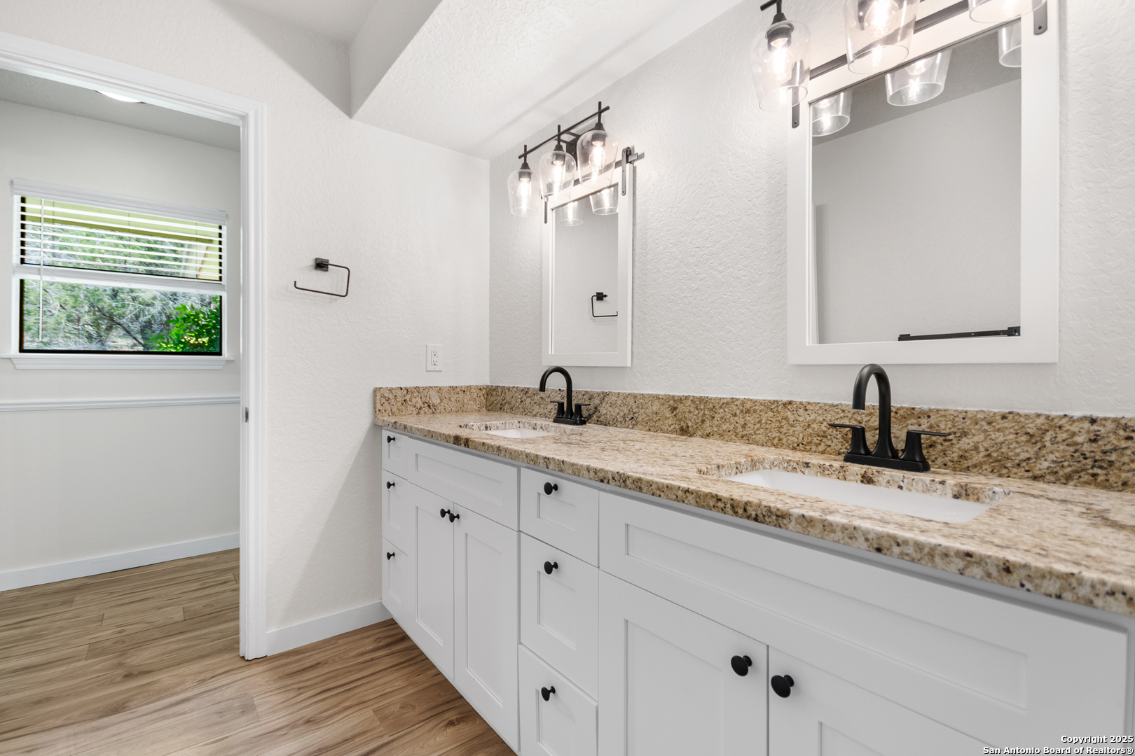 The home is tenant-occupied, but we're happy to accommodate showings for interested buyers. ***FRESHLY RE-PAINTED TO GIVE A BRIGHT AN AIRY FEEL***Discover the beauty of Kerrville Hills Ranch Estates in this fully remodeled home, spanning 3,707 sq ft with an additional 320 sq ft guest house, all nestled on nearly 2 acres of land. The main house, renovated in 2022, boasts a stunning great room with soaring cathedral ceilings, a wall of expansive windows, and a grand wood-burning fireplace, evoking the charm and warmth of a mountain lodge. The formal dining room boasts a large window overlooking the front of the property, while the remodeled kitchen is equipped with new stainless-steel appliances, bar seating in the breakfast room, and outside access. The split plan layout ensures privacy in the owner's suite, which offers large dual walk-in closets, new double sinks, a soaking tub, and tile shower. There is a flex room attached to the primary suite which would be great for an office, exercise room, or nursery. Two additional guest rooms, a full bath, and a loft complete the home. Don't forget the 320 SF casita out back. With a full bathroom, this space would make a great mother-in-law suite or detached office. This home is enhanced with a new roof, fresh paint, new flooring, fixtures, counters, doors, windows, hardware, and numerous other updates. Positioned at the rear of the property, approximately 300 feet from the road, ensures maximum privacy. Additional amenities include a 2-car garage with storage and ample parking for RVs, boats, and ATVs. With no city taxes and located just outside Kerrville's city limits, across from Riverhill, the home provides easy access to all local amenities and attractions.