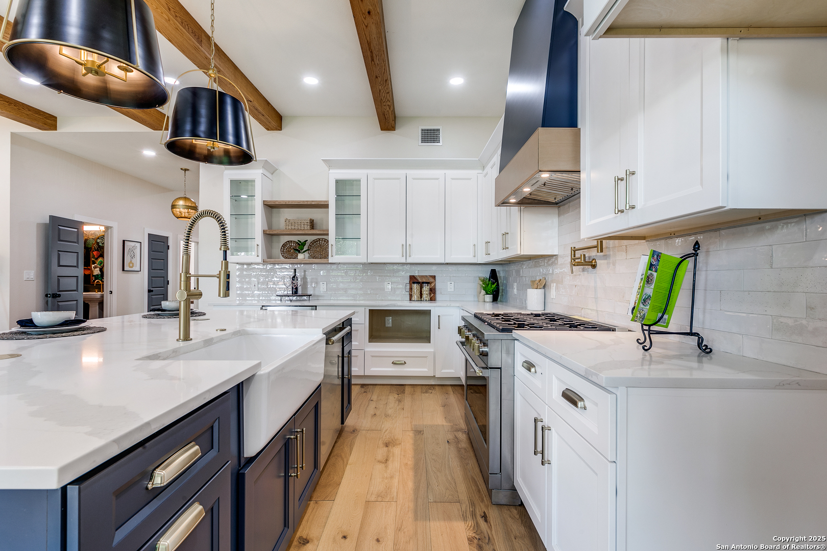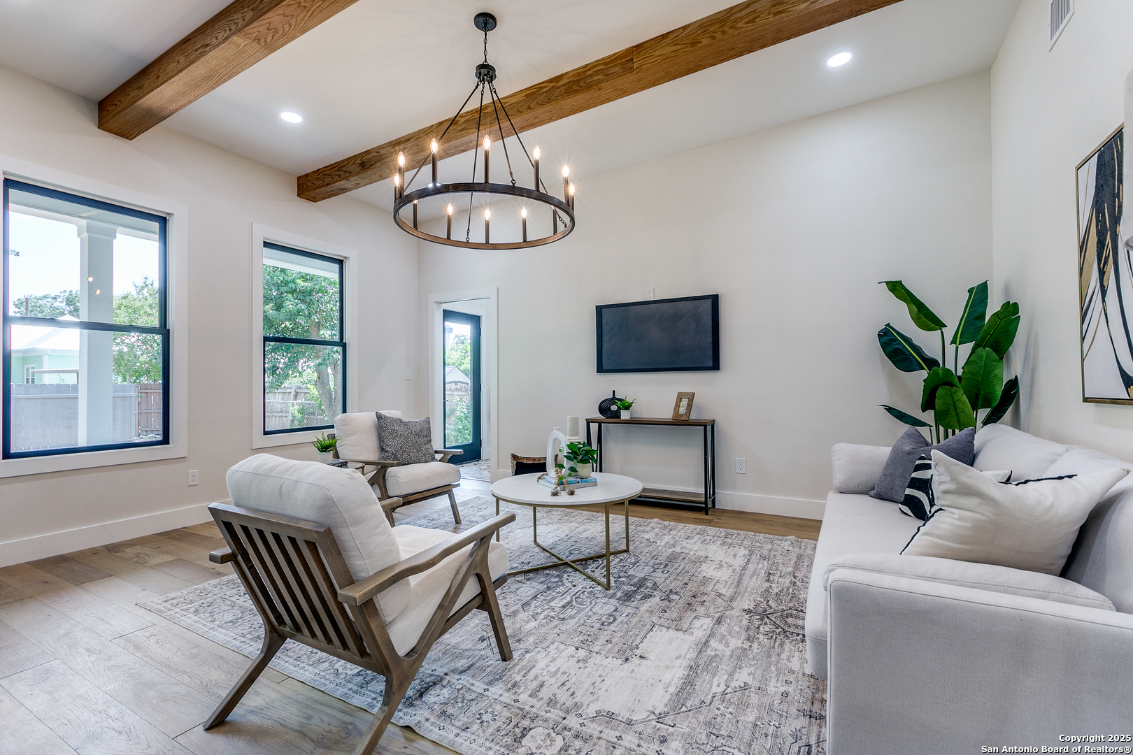 Move-In Ready! Celebrate the holidays in style at this fully renovated 1930 Folk Victorian, perfectly located in the heart of Southtown's Nathan Historic District. Just blocks from the Riverwalk, King William, and the Blue Star Arts Complex, this 3-bedroom, 2.5-bath home offers 1,974 sq ft of luxury living-and it's ready now for your seasonal gatherings. Step inside the grand foyer, where herringbone wood floors, brass lighting, and a stained-glass transom window create a warm and elegant welcome. Vaulted ceilings with custom beams elevate the open living and dining space, ideal for hosting family and friends. The chef's kitchen delivers with GE Monogram appliances, Calcutta Idlillo quartz countertops, and an oversized island made for entertaining. The relaxing primary suite includes a soaking tub, glass-enclosed shower, dual vanities, and Carrara marble finishes. Two additional bedrooms share a full bath with dual sinks, while a stylish powder room, mudroom, and separate laundry room offer convenience for everyday life. Enjoy mild San Antonio winters outdoors on your covered front porch or expansive rear patio, complete with ceiling fans and designer lighting. Secure, gated parking adds peace of mind. This down-to-the-studs renovation includes all-new plumbing, electrical, HVAC, insulation, drywall, flooring, and more-delivering historic charm with modern efficiency and comfort. Designated a local landmark, 205 E. Rische blends timeless character with walkable, urban living. Start the new year in a home that's both heritage-rich and holiday-ready. Schedule your showing today.