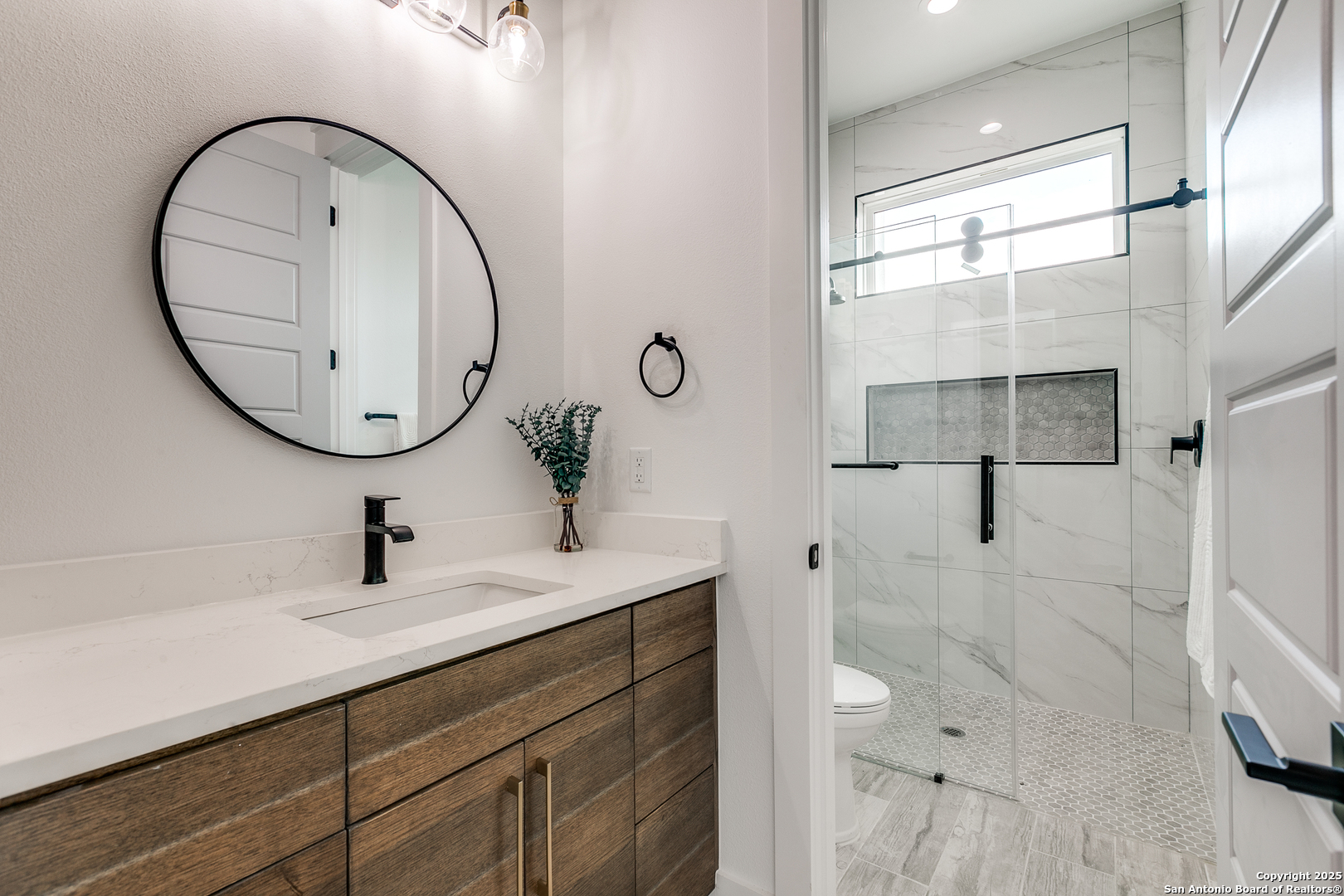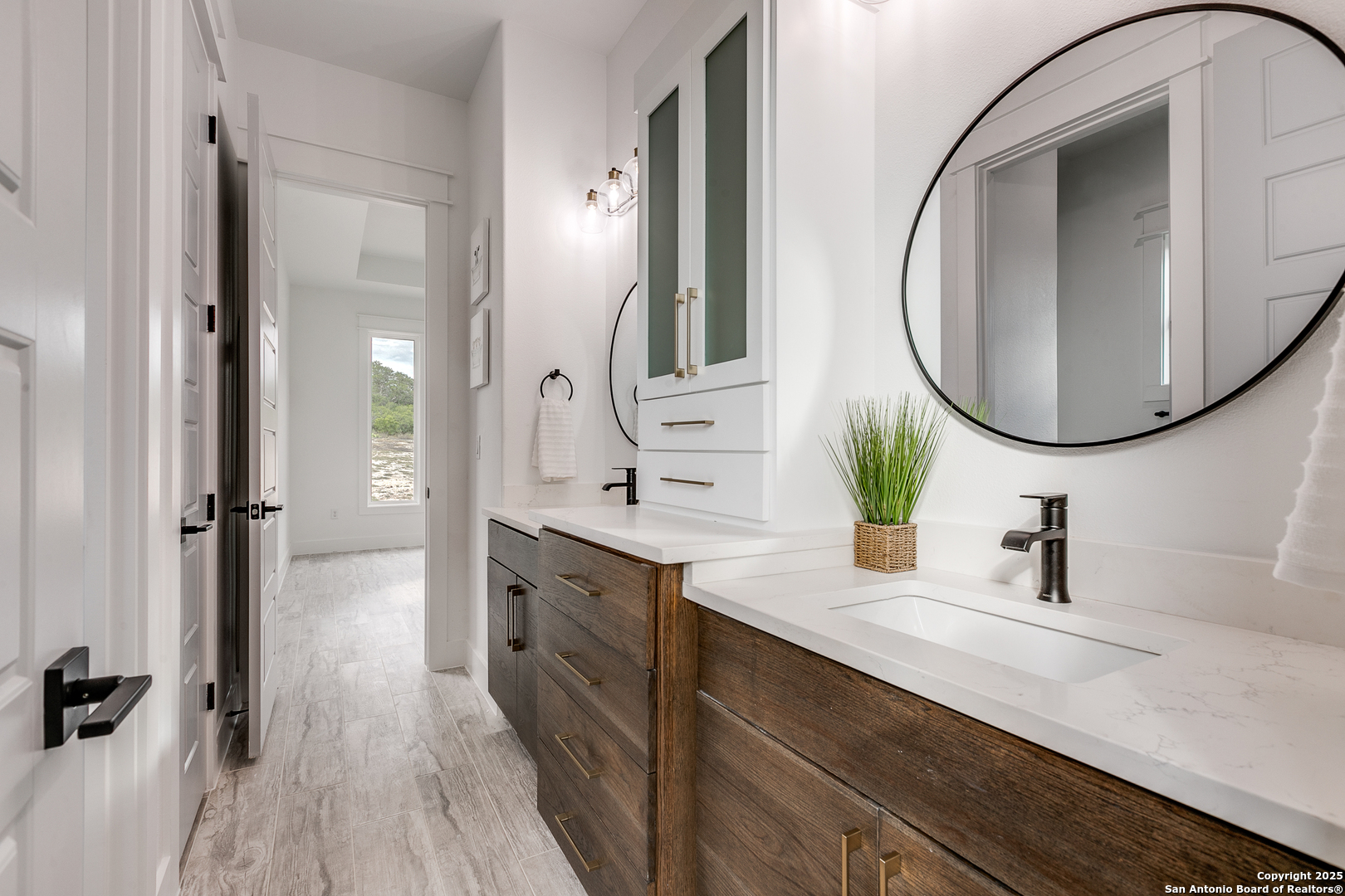 Hilltop Luxury in Mico, TX Custom Home on 2 Acres in a Private Gated Community Discover upscale country living in this one-of-a-kind custom home, perfectly situated on 2 scenic acres atop the hills of Mico, Texas. Nestled in a private gated community, this serene retreat offers unmatched privacy, natural beauty, and panoramic views-all just a short drive from the city. Surrounded by mature trees, the property offers a peaceful, wooded atmosphere that feels like your own private escape. From the backyard, you'll enjoy tranquil views of trees in every direction, creating a calming, nature-filled setting ideal for relaxing and recharging. Thoughtfully designed, the home features 4 spacious bedrooms, a versatile flex room, and a total of 3 full bathrooms plus a convenient half bath, offering comfort and flexibility for every lifestyle. From the moment you arrive, the bold metal front door makes a lasting impression, leading into a space filled with refined finishes and timeless style. Tile flooring flows throughout the open-concept layout, accented by custom cabinetry and a warm, inviting ambiance. At the heart of the home, a chef's kitchen boasts sleek quartz countertops, ample prep space, and modern fixtures, perfect for both everyday meals and entertaining. The primary suite is a luxurious retreat, offering breathtaking hilltop views and a HUGE walk-in closet that's every woman's dream, thoughtfully designed with both space and elegance. The primary bathroom is a showstopper, featuring his-and-hers sinks, a large soaking tub, and a spacious walk-in shower that feels like your own private spa. Step outside to enjoy the best of outdoor living with a large covered patio and a built-in fireplace, all set against a peaceful backdrop of towering trees and hilltop views. Built with care, quality, and attention to detail, this home is the perfect blend of luxury and nature. Whether you're hosting guests or enjoying a quiet evening under the stars, this Mico retreat offers a lifestyle that's both refined and relaxed. Schedule your private showing today and fall in love with this breathtaking hill country escape.