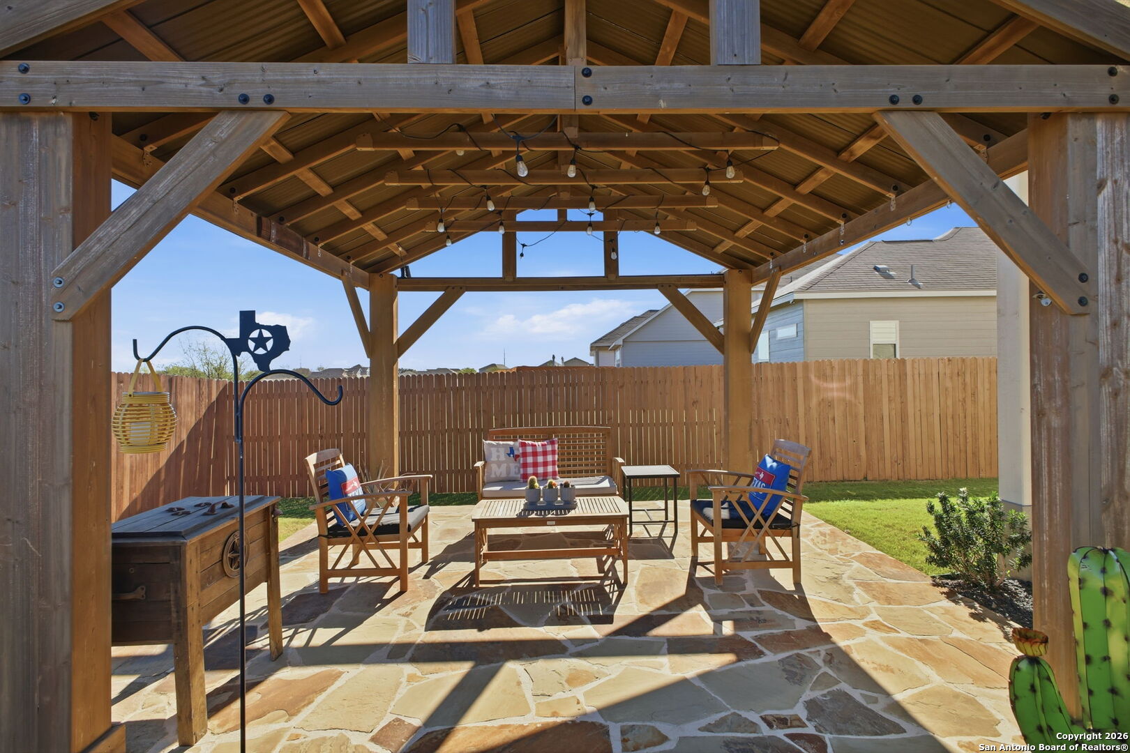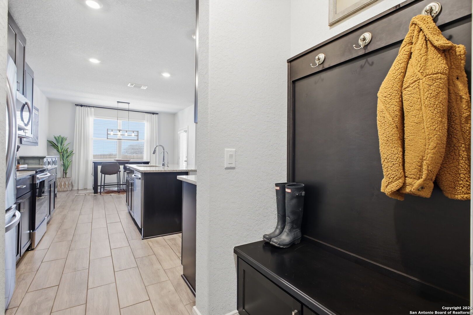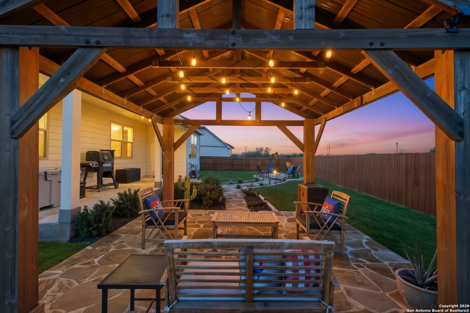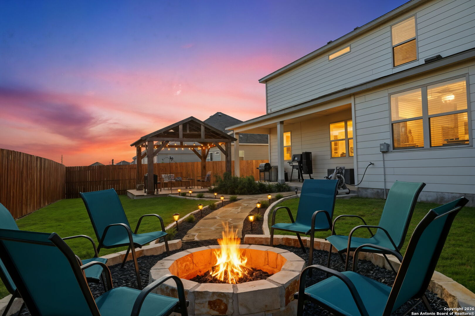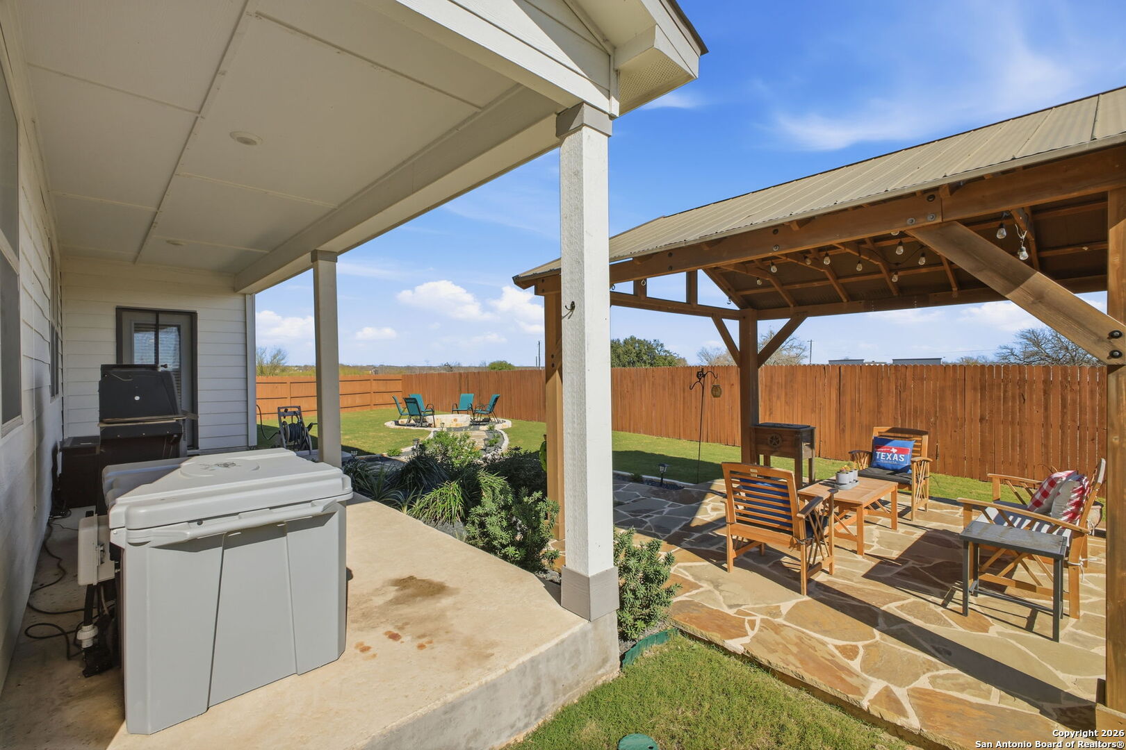 *This home offers an assumable VA loan at an incredible 4.125% interest rate, a rare opportunity in today's market!!* Welcome to 205 Pudu Trail in Cibolo, a true showstopper that blends modern design, thoughtful upgrades, and exceptional pride of ownership. This beautifully maintained 2022 View home stands apart from others in the neighborhood thanks to a long list of curated enhancements both inside and out. From the moment you arrive, you'll notice the professionally landscaped front yard, premium lot and extended concrete driveway, adding both curb appeal and everyday convenience. Step inside to an open-concept living space designed for effortless entertaining, featuring a spacious kitchen with granite countertops, a large island, select upgraded light fixtures, and no carpet downstairs for a clean, modern look and easy maintenance. The entryway makes a lasting impression with a charming beaded-board ceiling, while designer wainscoting in the bathrooms adds warmth and sophistication throughout the home. A functional mudroom with built-in storage and hooks keeps daily life organized and clutter-free. The outdoor space is where this home truly shines. Enjoy professionally landscaped front and back yards, a covered patio, and a custom flagstone walkway that leads to a stunning, professionally built fire pit and beautiful pergola, creating the perfect setting for entertaining, relaxing evenings, or gathering with friends and family. A thoughtfully added sidewalk provides added convenience when moving trash bins, a small detail that makes a big difference in everyday living. Additional highlights include an oversized laundry room with abundant cabinetry and storage, enhancing both functionality and convenience. Ideally located just minutes from Randolph Air Force Base, this home is perfect for military relocation buyers seeking comfort, style, and a quick commute. With tasteful upgrades, intentional design choices, and inviting indoor and outdoor spaces, 205 Pudu Trail is more than move-in ready, it's a home that feels special the moment you walk through the door.