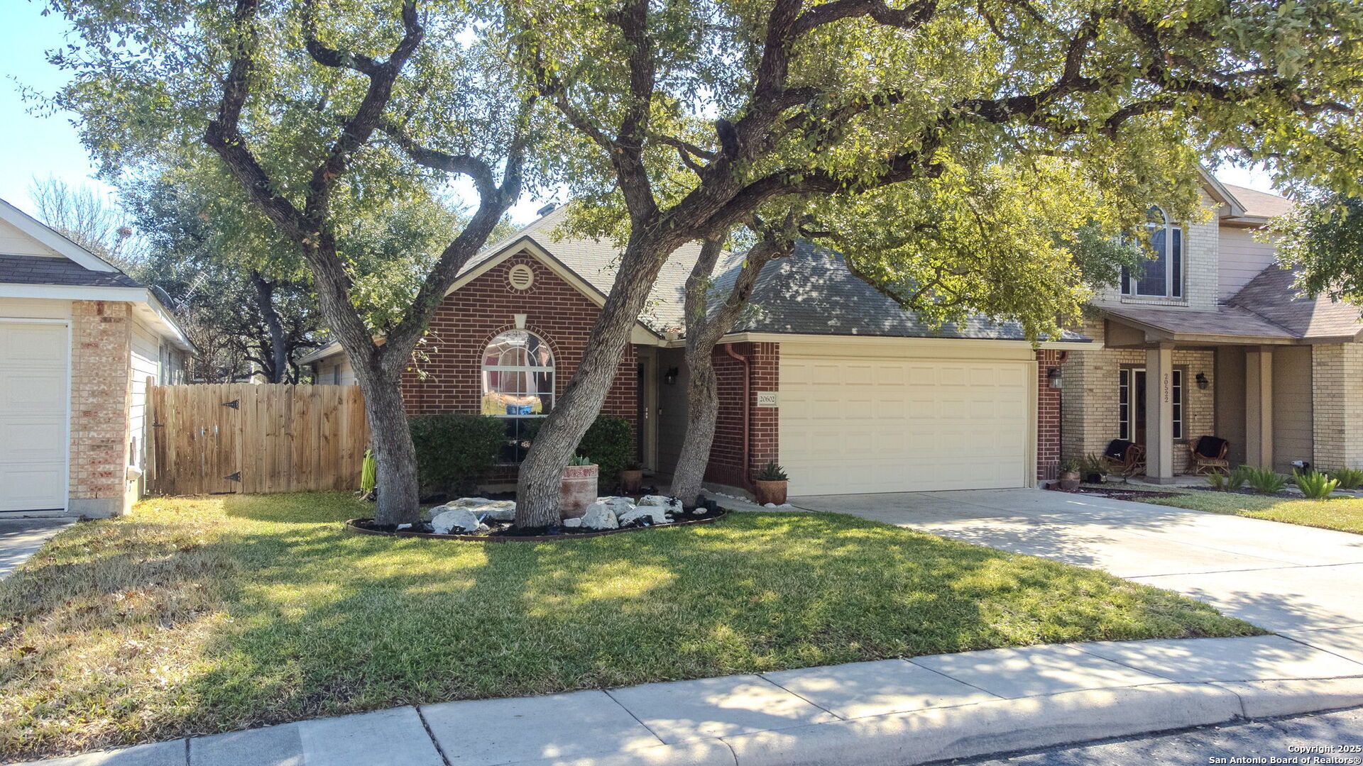 Nestled in the heart of Stone Oak, this single-story home offers undeniable charm and exceptional curb appeal. With three spacious bedrooms, two baths, and a two-car garage, this inviting home is designed for comfort and convenience. Step inside to an open-concept layout where the living, dining, and kitchen areas seamlessly connect. The kitchen features ample counter space for meal prep, a walk-in pantry, and plenty of cabinetry for storage. Imagine cozying up for movie nights in front of the fireplace! The primary suite is a true retreat with generous space, a full bath, and a walk-in closet. Additional bedrooms are well-sized, providing flexibility for guests, a home office, or anything that suits your needs. This bright and airy home sits in a gated community with an active HOA. Enjoy a short walk to the nearby elementary school and public library, plus easy access to NEISD award-winning schools, shopping, medical facilities, and major highways. Don't miss the chance to make this your next home!