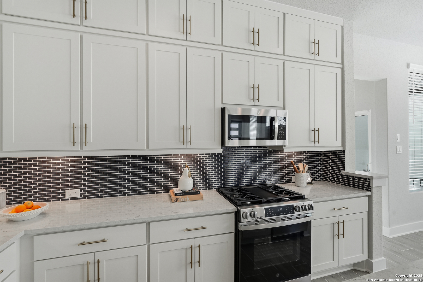 Move in Ready! Located in the heart of Stone Oak, this stunning home offers a spacious open floor plan designed for modern living and effortless entertaining. Elegant designer finishes create a warm, sophisticated atmosphere throughout, perfectly blending style and comfort. The owner's suite is a peaceful retreat, complete with a charming window bench-ideal for relaxing with a book or enjoying the morning sunlight. In the en-suite bathroom, split vanities offer both function and personal space, making daily routines a breeze. Upstairs, a versatile gameroom awaits, featuring a cozy tech center area that's perfect for a home study, gaming setup, or homework zone-tailored to fit your lifestyle needs.