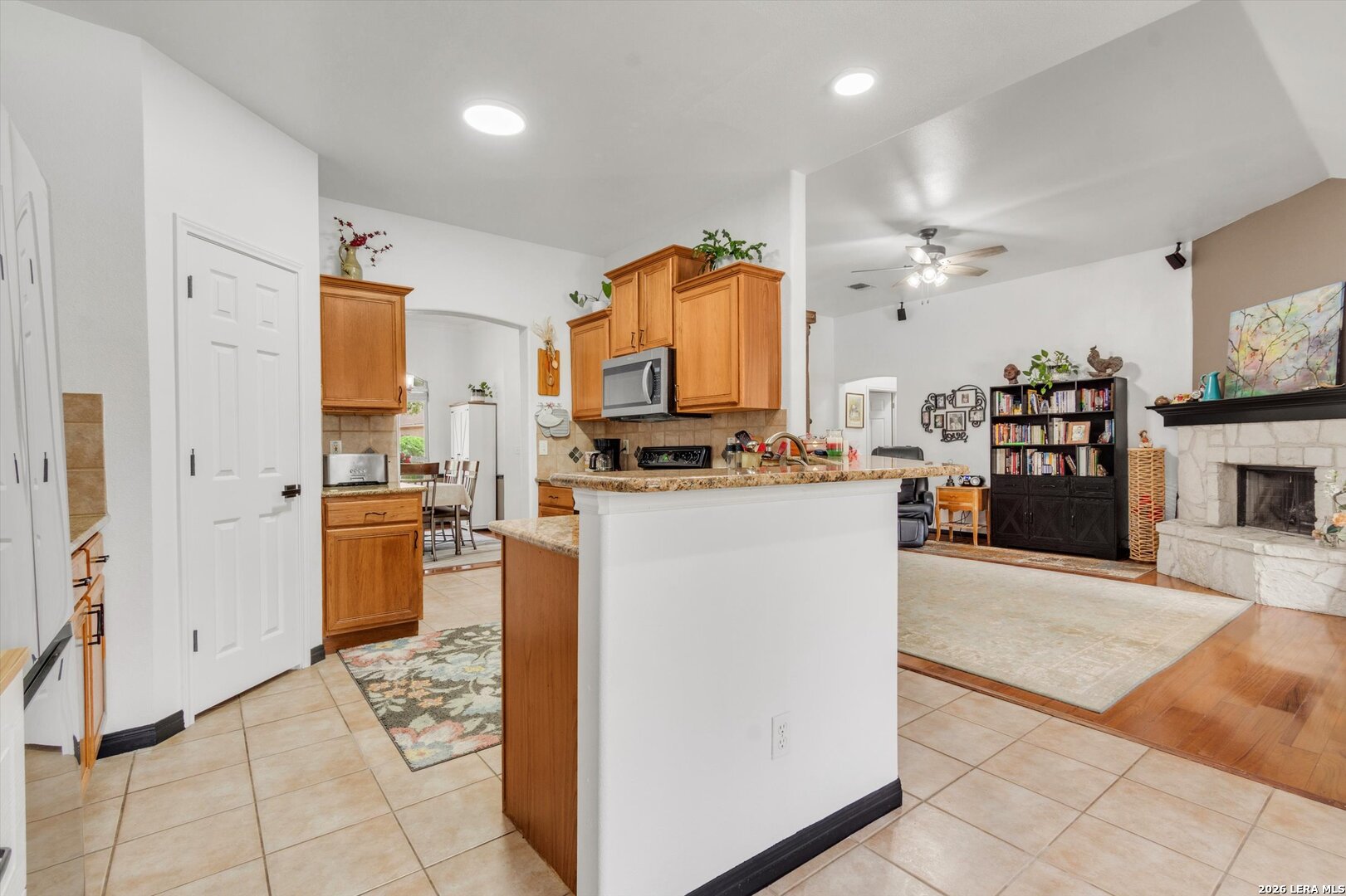 No HOA!! Private Pool!! Under $330k!?! (Yes, really.) If you've been looking for a move-in-ready home in New Braunfels but keep hitting a wall with strict HOAs and tiny lots, 2072 Stonehaven is exactly what you've been waiting for. Located on the desirable Guadalupe County side just south of County Line Road, this classic white-rock home gives you the freedom and space to actually enjoy your property. The layout is incredibly smart and functional. It's a true split floorplan with all three bedrooms on the main level. The primary suite sits entirely on its own for maximum privacy, complete with a tray ceiling, a highly organized custom walk-in closet, and a deep soaking tub. Upstairs? A large 14x13 flex loft that is completely out of the way-perfect for a dedicated home office, media room, or play area. Downstairs, the main living space is built for real life. Vaulted ceilings and a gorgeous white stone fireplace anchor the room, opening right up to a kitchen that features granite counters, stainless appliances, and a breakfast nook with a custom window seat. But the backyard is where this home completely separates itself from the competition. Step out the back door into a massive screened-in covered porch-your new bug-free zone for morning coffee or weekend cookouts. Just beyond the porch sits a low-maintenance, in-ground fiberglass pool surrounded by mature oak trees and a privacy fence. Finding a turnkey pool home with a split-floorplan and zero HOA restrictions is practically unheard of in this market. It's pristine, it's ready to go, and it is priced to move. Come see it before it's gone.
