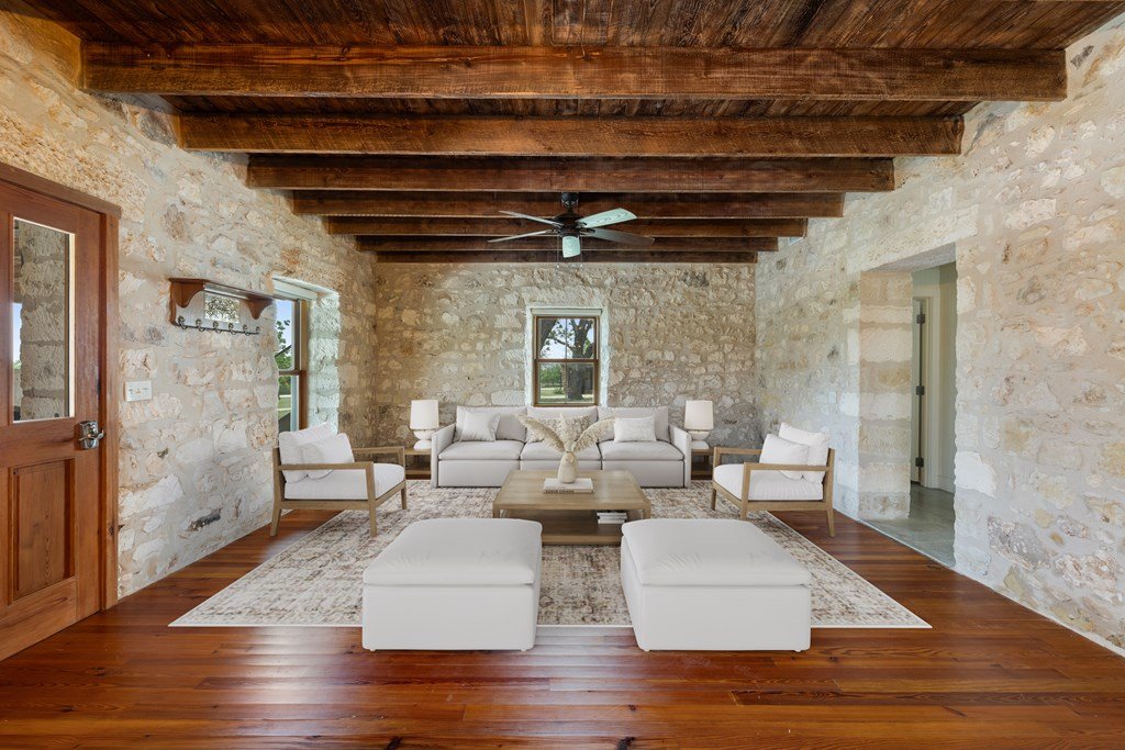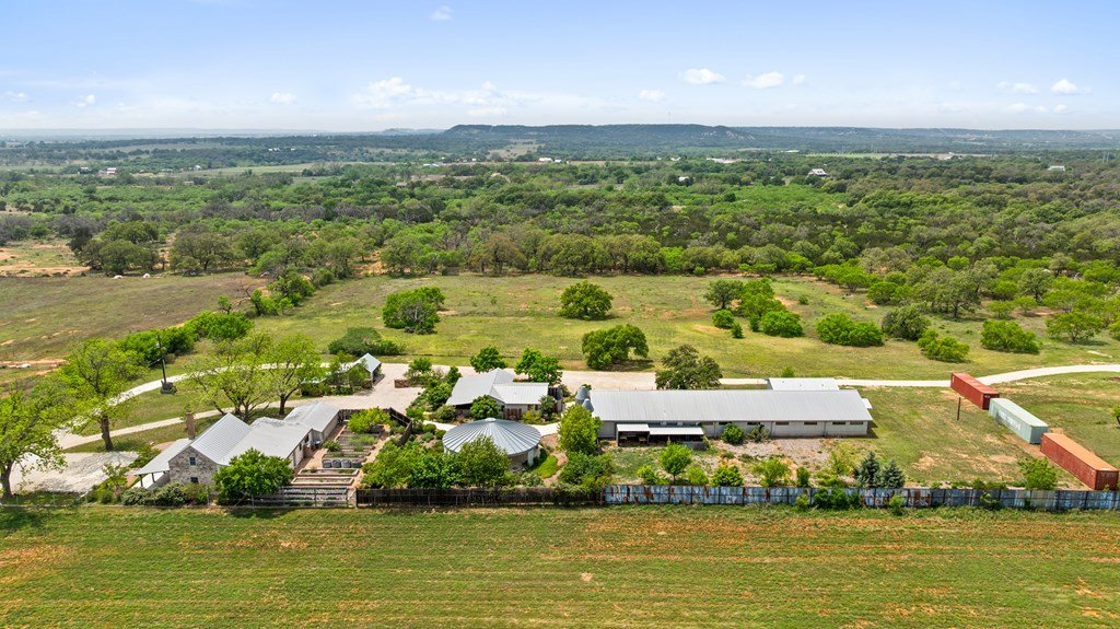 Unique family compound on 5 acres at edge of town has an 1882 field stone home, guesthouse, party barn, and studio. Stone house has 3 beds/3baths, 2 car garage and loft. Guesthouse has 2 beds/1bath. 4,800 sq ft party barn has 2 beds/4baths and capacity for 150 guests. Studio is 1 bed/1bath. This special property has many custom features to enhance its enjoyment: 38,500 gallon rainwater cistern for main house & guesthouse, 40 gpm well for all buildings, 40 ft diameter gazebo, all standing seam roofs, Spectrum Wi-Fi, bottle art fence, high fence, electric gate, charming she-shed with attached greenhouse, equipment shed, raised beds, small orchard, 2 large porches, outdoor fireplace, low care native plant landscaping, mature trees and wildlife tax exemption. This beautiful property was thoughtfully built by a profession designer as her forever home. But the building-bug bit her again so now it is for sale. You wont find another one like this. And it could be your forever home.