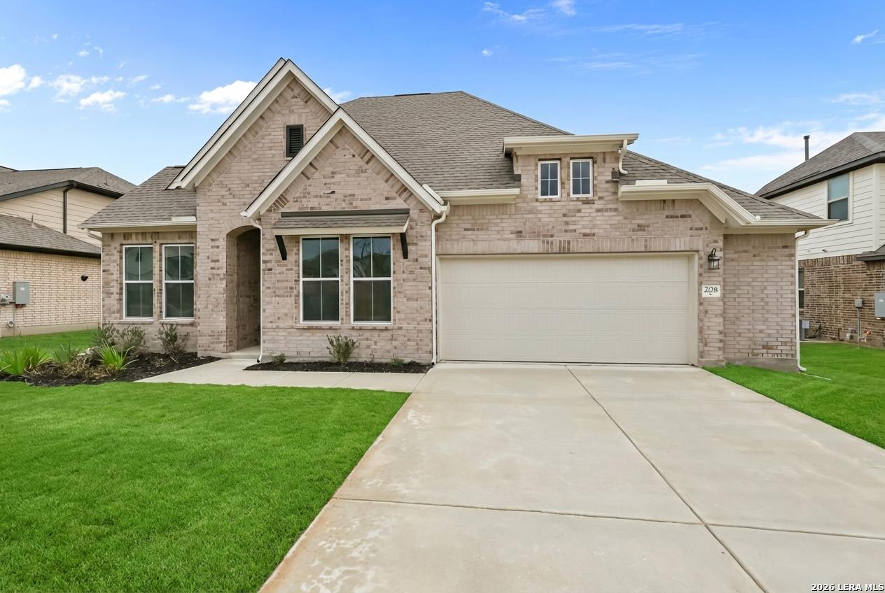 This impressive brick home features an 8-foot front door and a 3-car tandem garage, including a 5-foot storage extension, eliminating the need for a shed. You'll be awed by the high 14 ft ceilings that adorn all of the main living areas. The gourmet kitchen presents 42-inch painted cabinetry, built-in stainless-steel appliances with a 5- burner gas cook top, and an oversized island with additional cabinets that overlooks the great room and casual dining area. The spacious study with large windows provides an ideal work-from-home space. Each bedroom with a bathroom is perfect for family members or guests. Adjacent to the covered patio with a gas stub is a flex room, offering additional entertainment space for family and friends. Finally, retire to the primary suite and unwind in the primary bath, complete with a freestanding tub for relaxation, dual vanities, a large shower, and a walk-in closet. Visit your dream home today!