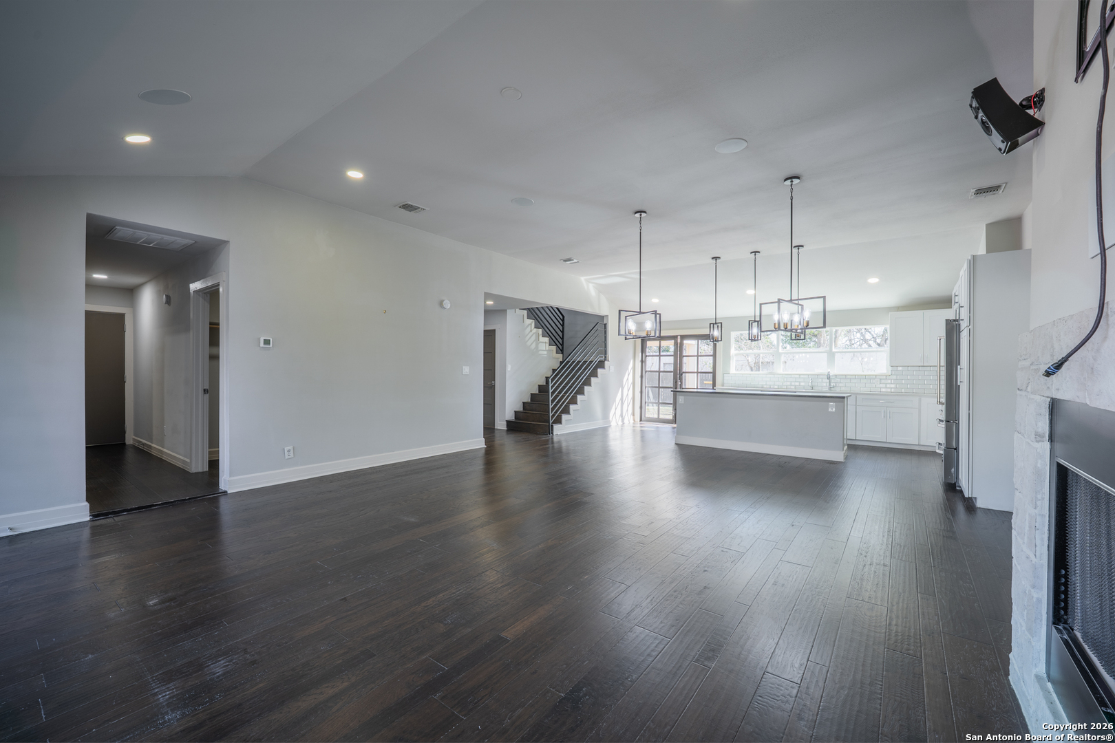 Discover refined Texas living at 208 Lemonwood, a beautifully designed residence tucked within the highly desirable community of Castle Hills, just outside Loop 410. Positioned on a generous flat corner lot, this home delivers an impressive blend of sophistication, comfort, and versatility rarely found in today's market. Inside, soaring ceilings and expansive living areas create an immediate sense of openness, complemented by abundant natural light and thoughtful architectural detail. The elegant kitchen stands at the heart of the home, enhanced by premium Bertazzoni appliances, sleek custom cabinetry, and an oversized cabinet-depth refrigerator-perfect for both everyday living and effortless entertaining. Offering outstanding flexibility, the home features multiple primary-suite options on both the first and second levels, ideal for multi-generational living, guest accommodations, or a luxurious owner's retreat. Each bedroom enjoys the privacy of its own en-suite bath, while an additional powder room serves guests. Generous room sizes, impressive storage, and well-planned living spaces ensure comfort at every turn. Warmth and character flow throughout the residence with multiple fireplaces, including an inviting centerpiece in the main living room. A thoughtfully designed surround-sound system with premium speakers enhances both indoor living and outdoor enjoyment, extending to the backyard space. Step outside to a tranquil setting shaded by mature trees, offering exceptional space to design your dream outdoor oasis-with ample room for a pool if desired. A large covered patio with a built-in outdoor kitchen sets the stage for evenings of relaxation, gatherings with friends, and memorable Texas sunsets. Additional highlights include a spacious butler's pantry/storage closet, tankless water heater, DuPure water softener, and the convenience of living in one of San Antonio's most established and prestigious neighborhoods-just minutes to dining, shopping, major highways, and top destinations across the city. Luxury, comfort, and thoughtful design come together seamlessly. A home that truly elevates everyday living.