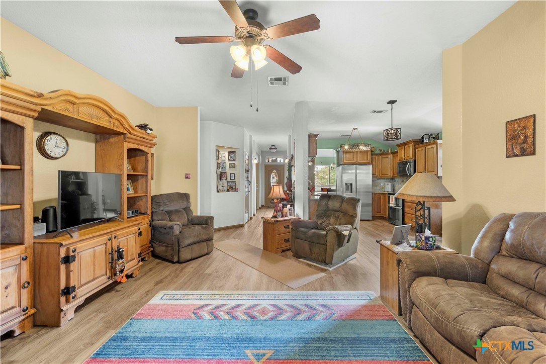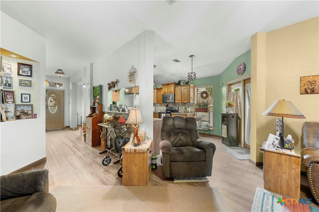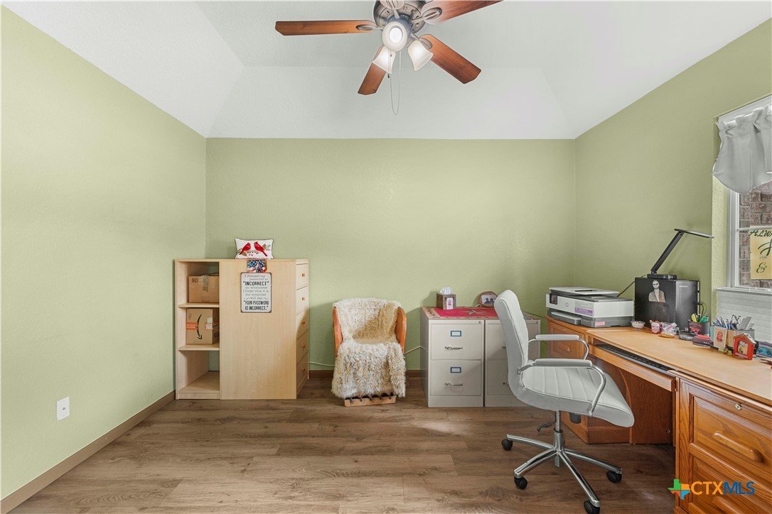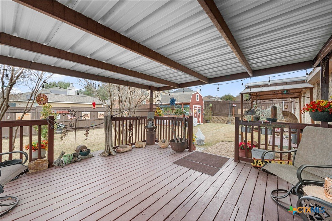 Immaculate, move-in ready, and thoughtfully upgraded, this home sets the standard for pride of ownership from the moment you arrive. Meticulously maintained and kept in pristine condition, every detail has been carefully considered to deliver comfort, efficiency, and long-term value. A brand-new Level 3-dimensional shingle roof with a 30-year warranty provides immediate peace of mind, while top-tier attic insulation, fresh interior paint, updated flooring, and modern appliances reflect the investment made throughout the home. The HVAC system remains within its warranty timeframe, ensuring dependable year-round comfort. The well-designed layout offers 3 bedrooms, 2 full bathrooms, and a dedicated office or flex space, ideal for remote work, hobbies, or an additional living area. A 2-car garage includes an added storage closet, and the wider driveway adds everyday convenience or decor. The heart of the home is warm and inviting, featuring a cozy remote-controlled fireplace with an upgraded mantle, creating the perfect setting for a relaxing atmosphere. Step outside to a beautifully maintained backyard patio oasis, complete with a Texas-style storage shed that provides extra space for tools, equipment, or seasonal storage, allowing you to enjoy outdoor living while staying organized. Located in a desirable neighborhood, this home blends quality craftsmanship, thoughtful upgrades, and functional living, making it a standout opportunity for buyers seeking a truly move-in-ready property.
