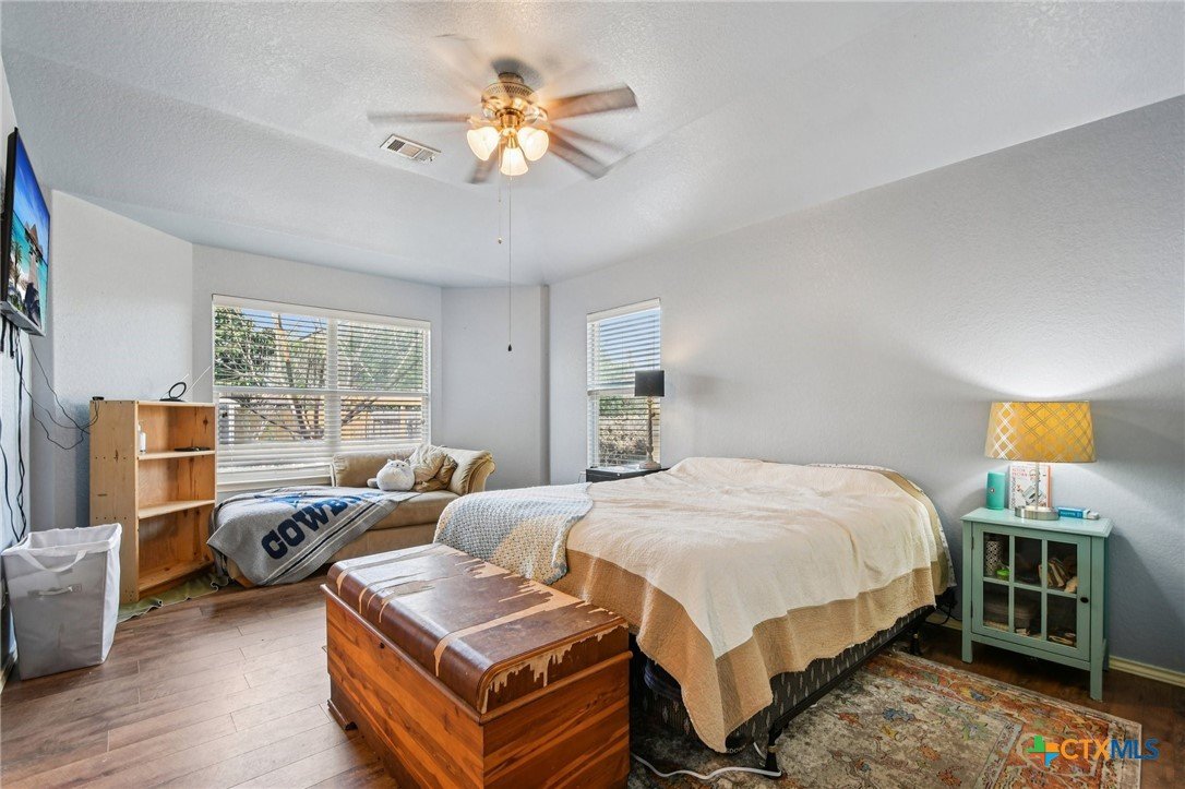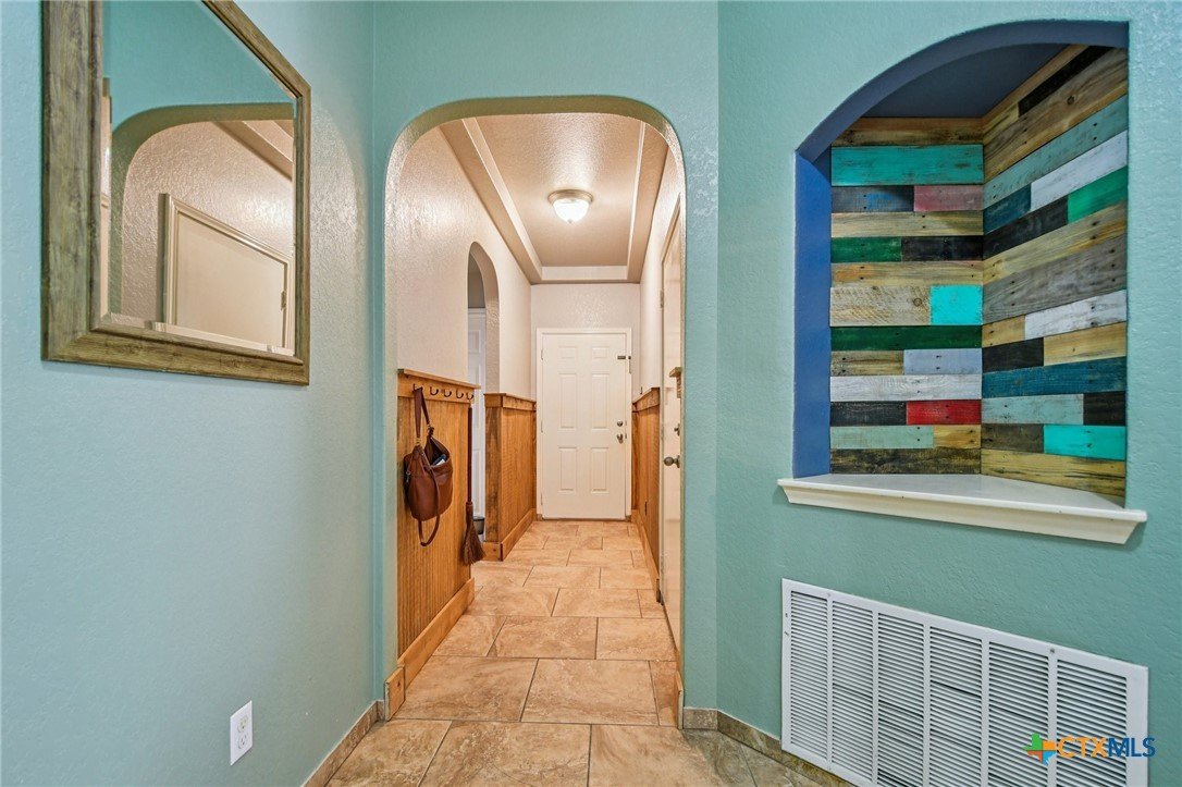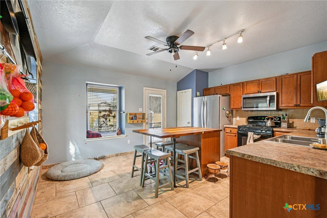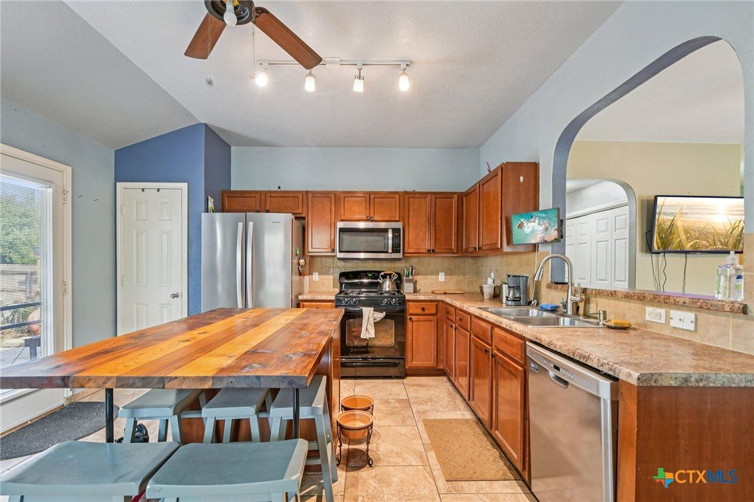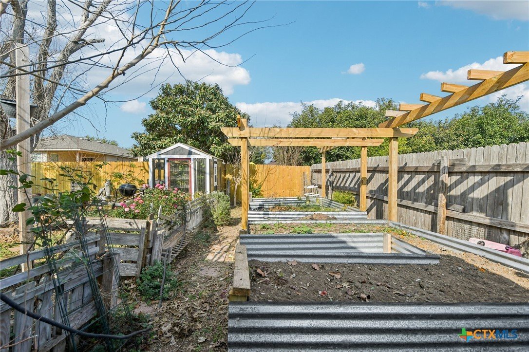 This charming 4-bedroom, 2-bath home blends comfort, craftsmanship, and functionality. Enjoy peace of mind with a brand-new roof and the ease of carpet-free living throughout. Craftsman-style woodwork adds warmth and character to the foyer, kitchen, and bathroom, while the kitchen shines with a custom island counter ideal for cooking and gathering. The fully fenced backyard is a gardener’s dream, complete with a shed, greenhouse, and beautiful flower beds. Multiple fruit trees including Fig, Peach, Plum, Pear Blueberry, Blackberry, and many more. Also multiple perennials including rosemary, chiltepin peppers, asparagus, oregano and more. Easy access to IH-35 to get Austin, New Braunfels and San Antonio. The 2-car garage completes this well-maintained and inviting home.