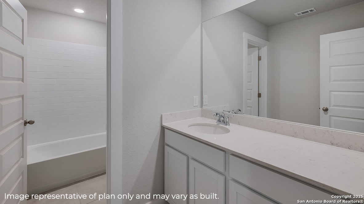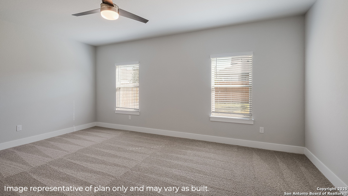 Welcome to The Rosemont floor plan, a large two-story home located at Brookstone Creek in San Antonio, TX. This home features 2 classic front exteriors, 5 bedrooms, 3 bathrooms, a spacious 2-car garage and 2716 square feet of living space. As you enter the home through the foyer, you'll pass one secondary bedroom and bathroom before entering the grand, open-concept kitchen, dining room, and living area. The Rosemont kitchen features quartz countertops, classic white subway tile backsplash, stainless steel appliances, a walk-in pantry, and a large kitchen island with a deep, single bowl sink. The main bedroom suite is privately located at the back of the home and includes quality carpet flooring, large windows providing plenty of natural light and a stylish ceiling fan. Step through the doorway into your very own attractive ensuite bathroom oasis, complete with a spacious tiled walk-in shower, dual vanity sinks and a walk-in closet. Upstairs you will find a large game room space, a third full bathroom and three secondary bedrooms. All bedrooms have carpet flooring, large windows and closets. Whether these rooms become bedrooms, offices or work out rooms, functionality is key. The Rosemont also includes a covered patio (per plan) and a professionally landscaped and irrigated yard complete with Bermuda sod. Additional features include natural gas, hard surface flooring at the entry, downstairs, halls, living room, kitchen, and dining/breakfast area, tile in all bathrooms and utility room, pre-plumb for water softener loop, and faux wood window blinds. The Rosemont includes our HOME IS CONNECTED base package. Using one central hub that talks to all the devices in your home, you can control the lights, thermostat and locks, all from your cellular device.