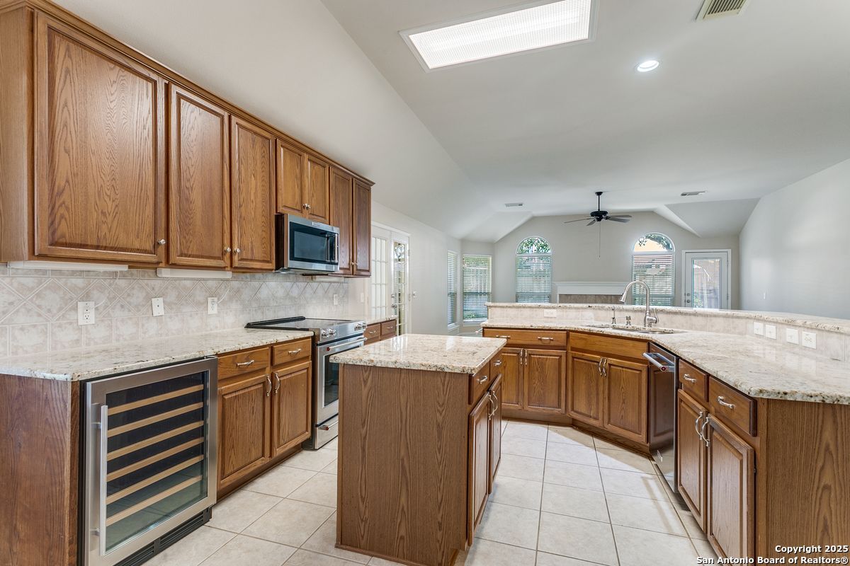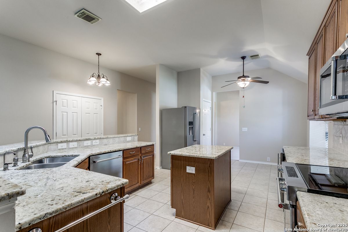 Nestled in the gated community of Encino Park, this beautifully cared for 3-bedroom, 2-bath home built by Pulte in 2001 offers comfort, style, and convenience on San Antonio's desirable North Side. The light-filled floor plan features a spacious living area with an added sunroom and a dedicated home office, along with a large kitchen with island, granite countertops, eat-in breakfast space, and recently replaced appliances, plus a generous laundry room. The private primary suite includes a large walk-in closet, dual vanities, separate shower, and soaking tub. Large windows throughout invite abundant natural light, while the mature, well-maintained garden and oversized corner lot provide a peaceful outdoor retreat. Complete with a two-car garage, spacious driveway, and easy access to Loop 1604 and Highway 281, this lovingly cared-for home is a true gem!
