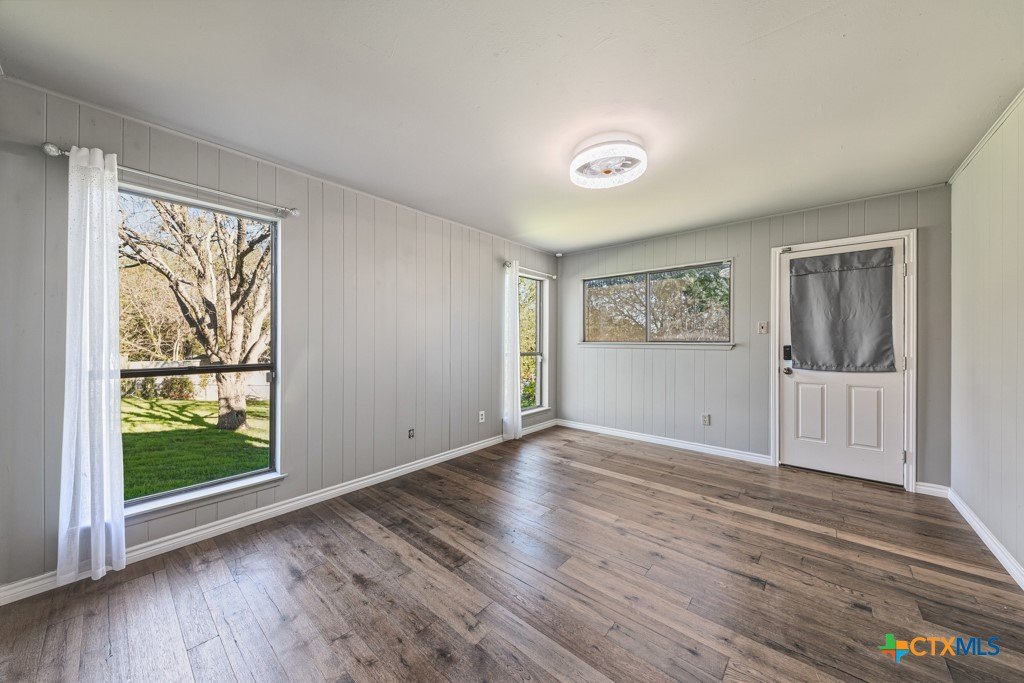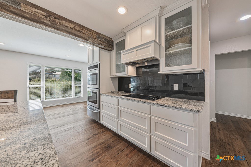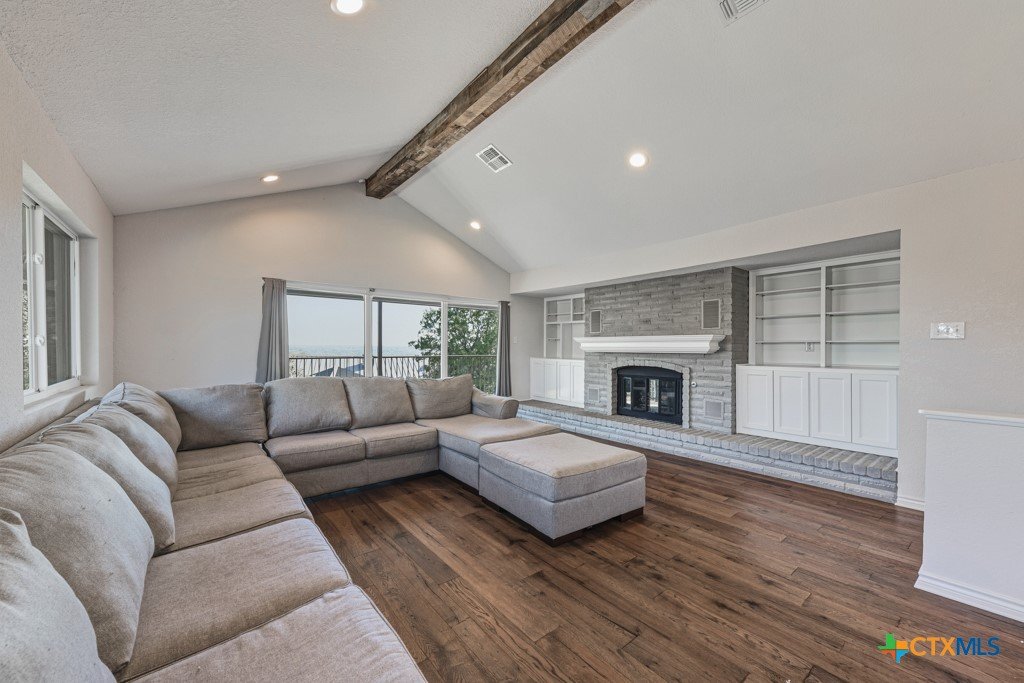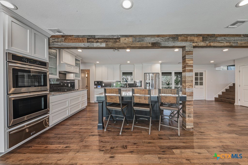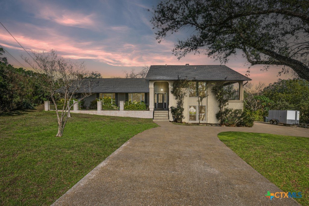 With half an acre on "The Hill", you will have some elbow room as well as a view. This 4 bedroom 3 bath home was originally built in 1979 but has been thoughtfully updated. The split level floorplan creates plenty of space that can offer versatility in living and entertaining. Step through the sliding glass doors to enjoy your city view from the large covered balcony that extends the whole side of the house from the family room to the owner's suite. The main level has flex space when you enter, bringing you into the kitchen with oversized granite island, stainless steel appliances, double ovens and faux wooden beam. The main level also offers two more bedrooms, bathroom, laundry and make sure to check out the cedar closet! Head down from the main level a few stairs and you will find another bedroom, bathroom, and sauna. The room also offers an exterior entrance that could be ideal for certain situations. Wood floors, gas fireplace, covered back patio with 10 seat hot tub, 3 car side entry garage and circle driveway are just a few more features this charmer has to offer. No HOA, NBISD, and close to all New Braunfels has to offer!