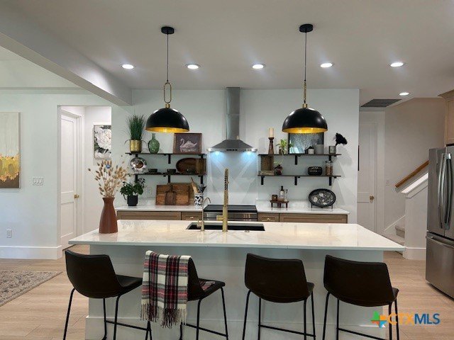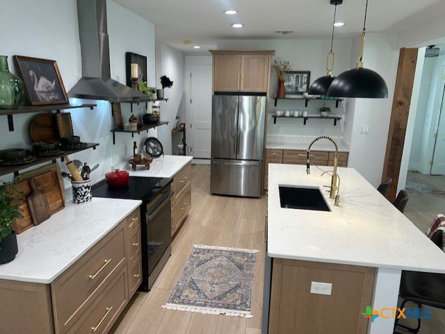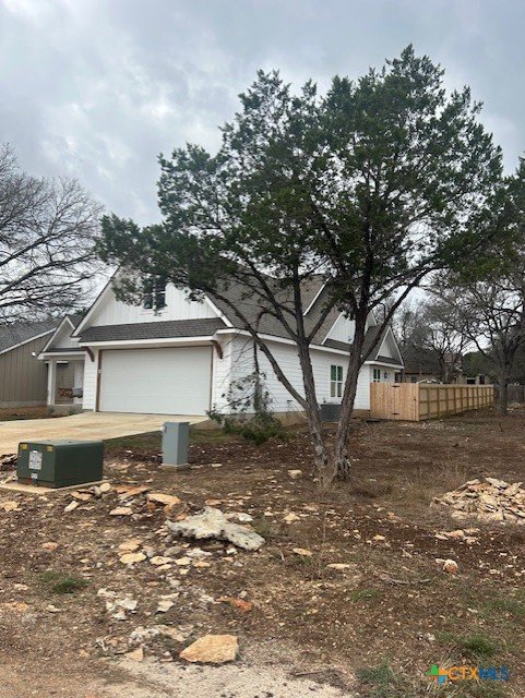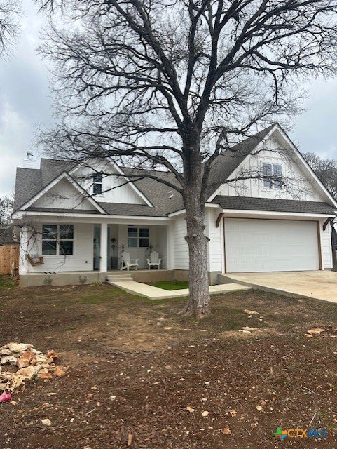 Custom Hill Country home built in late 2025 as the builder’s personal residence, combining quality craftsmanship with modern design. This thoughtfully designed home offers three carpeted bedrooms on the main level, with cathedral ceilings in the living area and primary suite accented by beautiful fir beams. Tall interior doors and luxury vinyl flooring throughout the main living areas create a light, open feel. The kitchen features quartz countertops, an induction five-burner cooktop, and clean, modern finishes ideal for everyday living and entertaining. Upstairs, an approximately 326± sq ft flex room with kitchen counter and sink provides flexible space for a home office, studio, guest suite, or media room. Enjoy true Hill Country outdoor living with large front and back porches, mature trees, and a new cedar fence. A unique highlight is the 15-foot concrete outdoor shower area with dog wash station, perfect after hiking, swimming, or outdoor activities. The home is prewired for a mini-split system and includes a Tesla EV charger for added efficiency and convenience. A rare opportunity for a new construction-style home with custom details in a peaceful Central Texas setting.