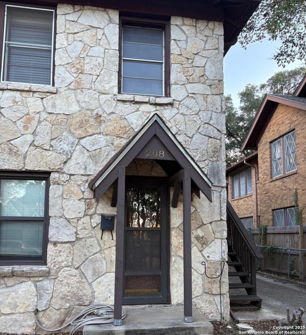 Historic, well-maintained duplex in the Monte Vista neighborhood. Built in 1920, this property features two units (each 2 beds / 1 bath), making it an appealing investment opportunity. It sits on a .145 acre lot and offers 1,872 sqft of living space. The style combines classic charm with modern updates and good upkeep. Original hardwood floors, large windows that allow for plenty of natural light, spacious rooms in both units. The roof is newer (replaced in 2020). Exterior is masonry/stone, which tends to give good durability and a timeless look. Large backyard, storage shed, onsite parking plus pad/street parking. Lot size gives space for outdoor living, gardening, or potential future improvements. Each unit has its own electric/gas meter. Dual central HVAC systems. Flooring is a mix of wood and ceramic tile. In Monte Vista, a historic district with strong appeal: walkability, beautiful architecture, mature trees, etc. Proximity to multiple universities (Trinity University, University of the Incarnate Word, San Antonio College), shops, restaurants, The Pearl and downtown. Great for tenants!