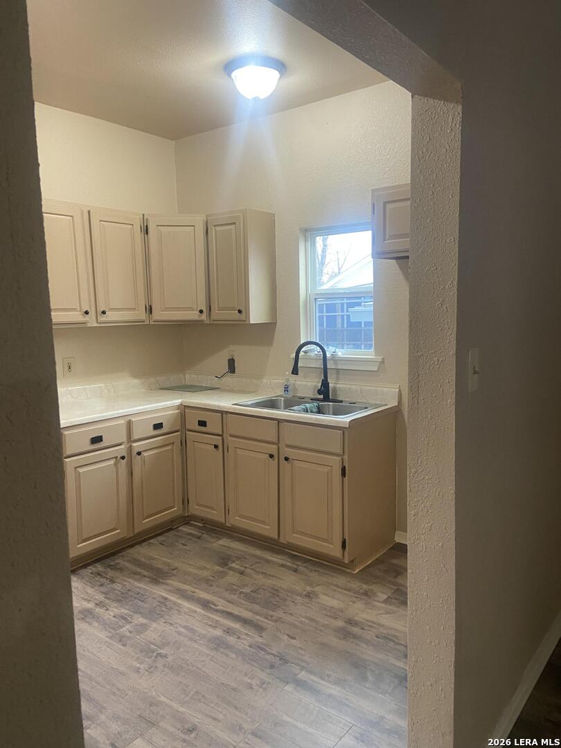 Beautifully updated three bedroom one and a half bath craftsman bungalow home in southeast San Antonio. Move-in ready property has brand new flooring throughout updated bathrooms excellent insulation and new energy efficient windows original front windows have been professionally restored and sealed preserving charm while improving efficiency washer dryer area has a drop down ironing board on the wall. Close to IH 37 S. East San Antonio home is exceptionally clean and well maintained with a fresh welcoming field electric fireplace for supplemental heat while essential air works throughout the whole home detached that tough shed in the backyard has great storage or workshop space convenient access to shopping, dining parks, and major routes