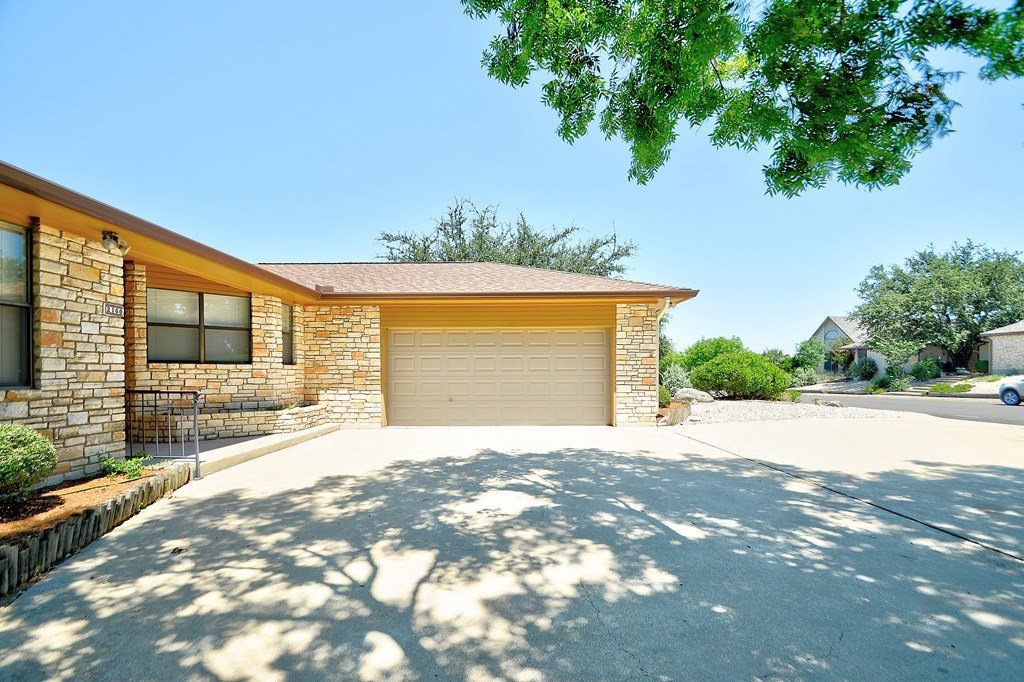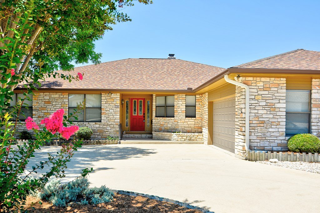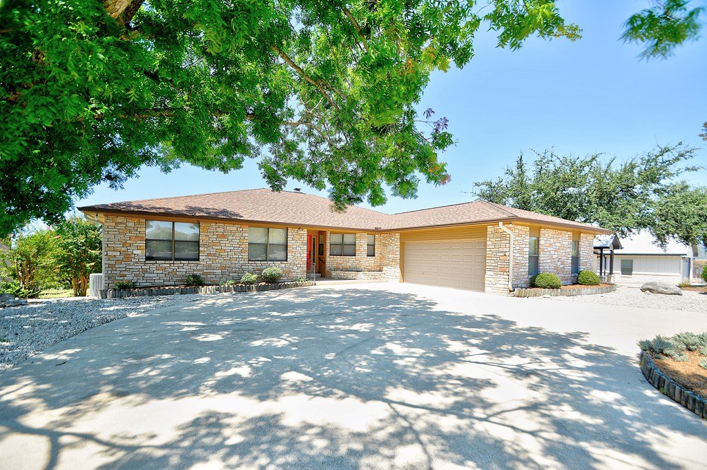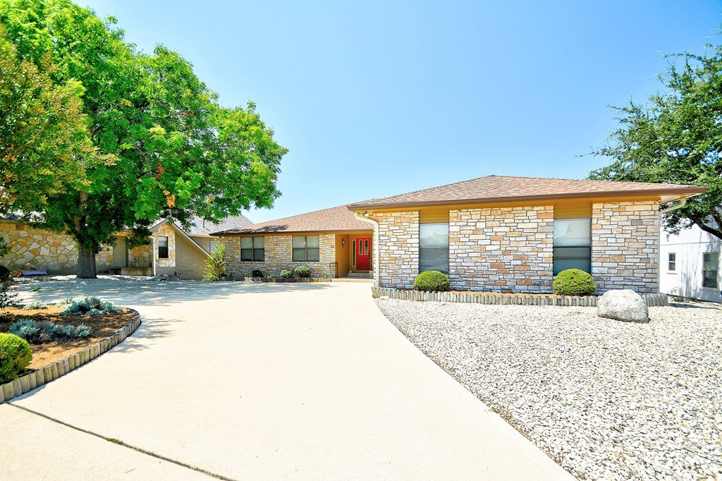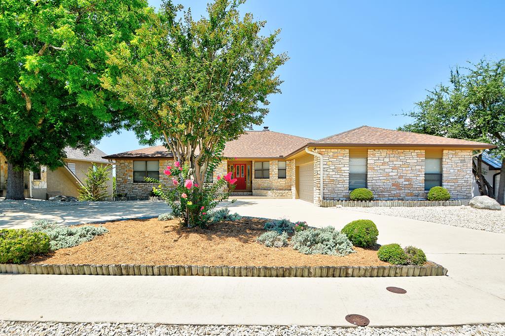 Breathtaking views of Kerrville welcome you into this charming single-story home in the sought-after Summit neighborhood. Featuring a split floor plan with 3 bedrooms, 2.5 bathrooms, and a dedicated office that could serve as a fourth bedroom, this home offers both comfort and versatility. The spacious living room centers around a beautiful wood burning stone fireplace and opens to a covered back porch, perfect for enjoying the stunning Hill Country scenery and local wildlife. The kitchen is equipped with granite countertops and double convection ovens, while the laundry room includes a utility sink, pantry, and half-bath. The generous primary suite offers private porch access, a jetted tub, separate shower, walk-in closet, and dual vanities. Built-in shelves in the office, an oval driveway and abundant garage storage add extra functionality to this well-designed home.