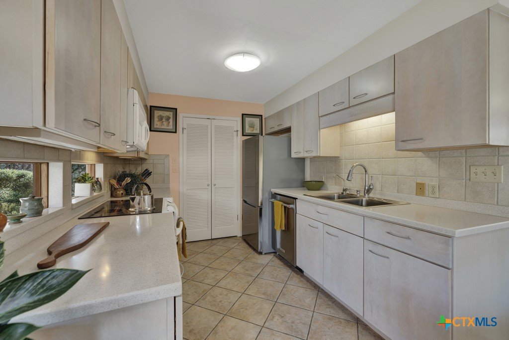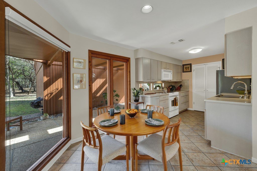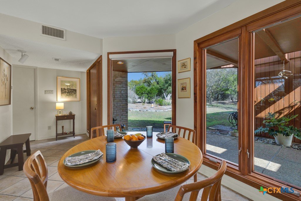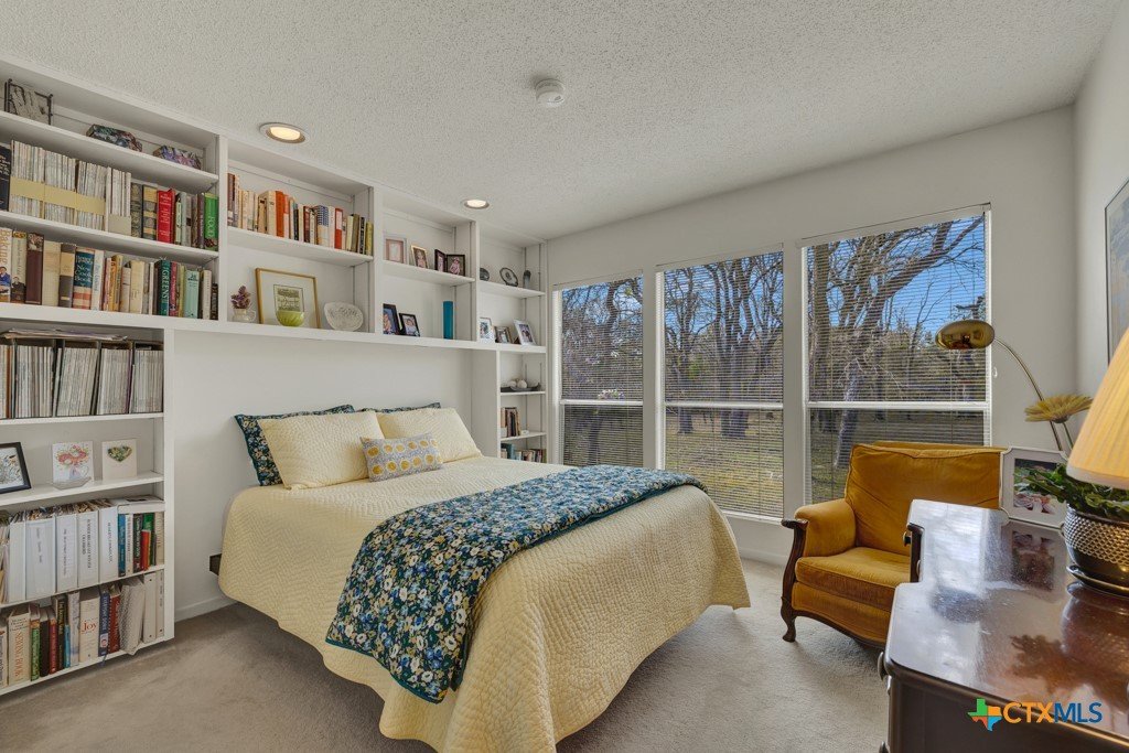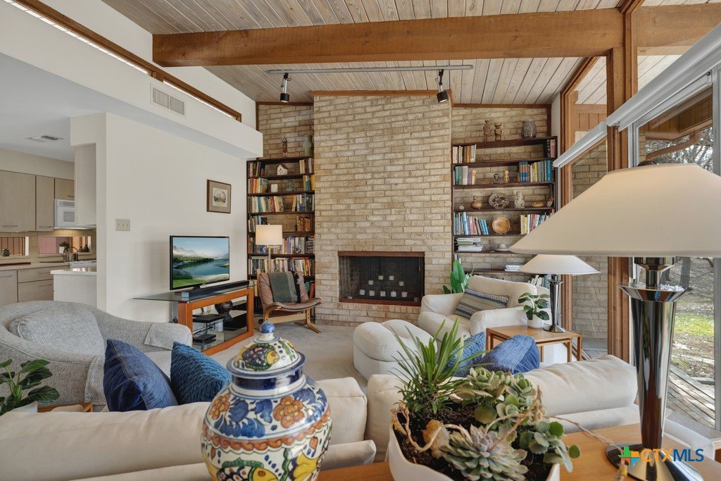 Now offered for the first time, this true architect-designed mid-century modern estate is a rare find, thoughtfully inspired by the clean lines and organic principles of Frank Lloyd Wright and Richard Neutra. Set on 4.5 tree-covered acres in the Texas Hill Country, the home has been meticulously cared for by a single family since its construction. Natural light pours in through floor-to-ceiling and clerestory windows, while three sets of sliding glass doors extend the living spaces onto generous patios. Warm wood and beamed ceilings in both the living room and primary suite create a seamless connection to the outdoors. A striking room-anchoring fireplace, flanked by built-in bookshelves, defines the main living area. The open-concept living, kitchen, and dining spaces were designed with intention and precision. The kitchen offers exceptional storage, and the living room is complemented by a hidden wall of cabinetry discreetly tucked behind four large doors. The primary suite, added in 1988, features dual closets with custom built-ins. Thoughtful xeriscape landscaping with deer-resistant plants enhances the natural setting. A well-designed breezeway connects the home to the garage, which includes a sink, cabinetry, and organized storage solutions. At every turn, the craftsmanship and care are evident. While the photography is beautiful, experiencing this home in person is essential.