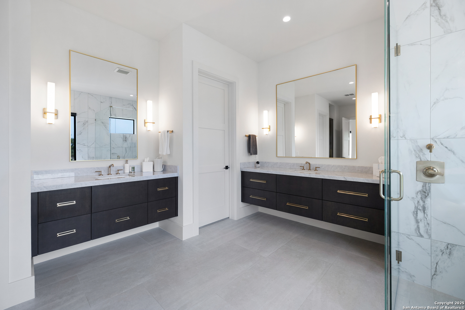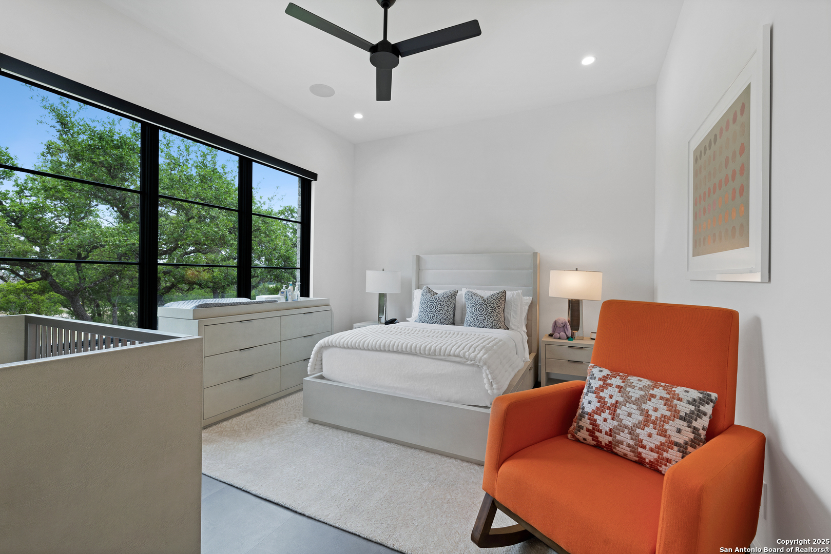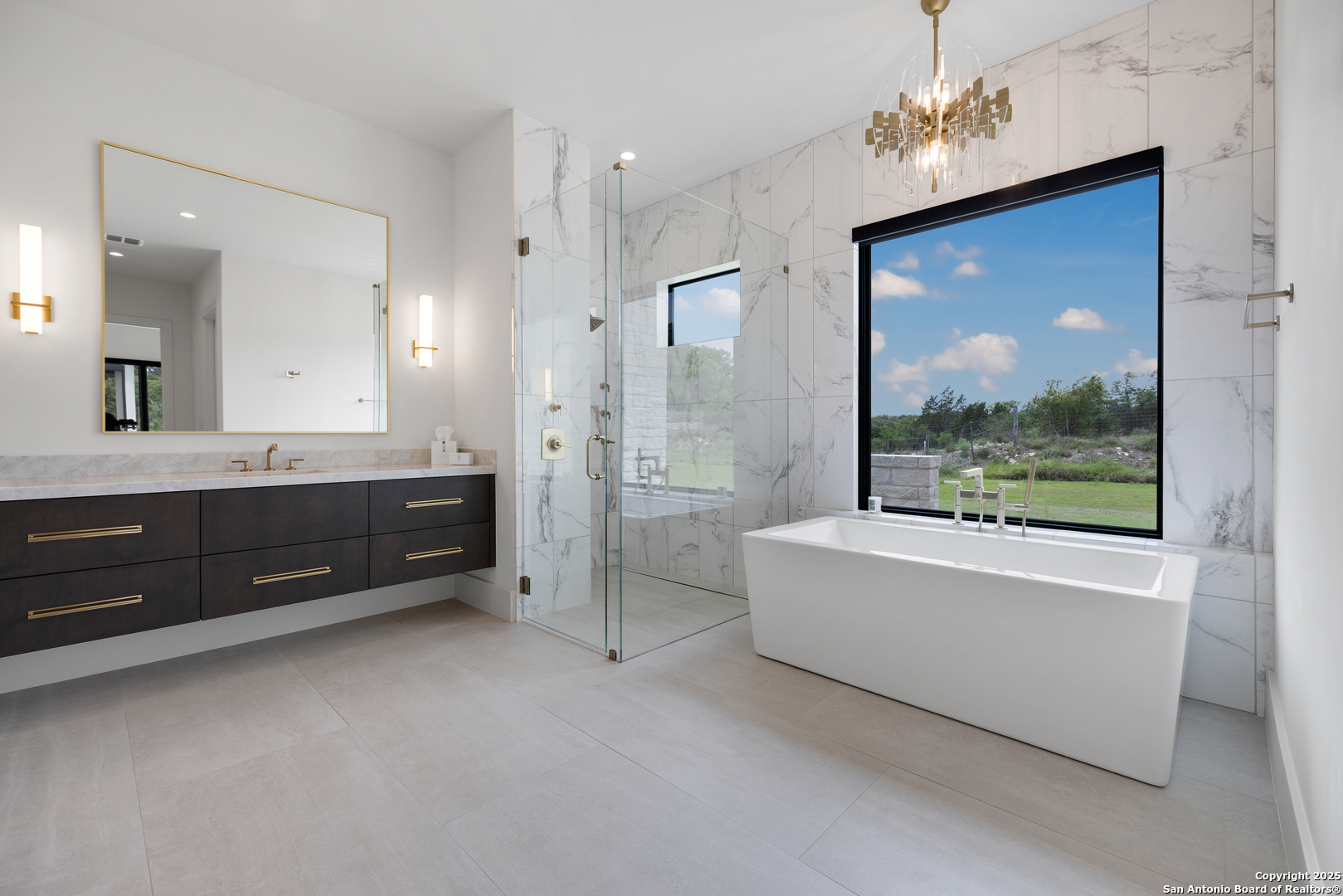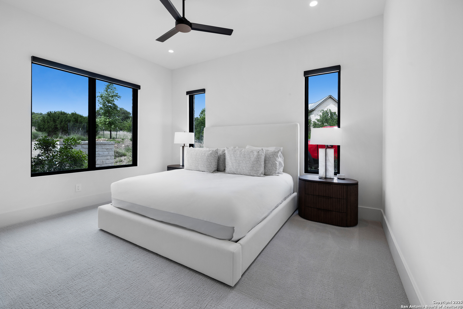 Nestled in the prestigious Clubs Village at Cordillera Ranch, this custom Garner Home perfectly blends modern Hill Country style with everyday livability. Every detail was thoughtfully chosen to create a balance of comfort, elegance, and clean architectural design. The dramatic glass entry doors immediately frame peaceful views of the outdoor oasis, complete with a resort-style pool and spa. Inside, soaring ceilings, abundant natural light, and a soft neutral palette set a calm, inviting tone throughout the home. The chef's kitchen is both stunning and highly functional, featuring quartzite countertops, a waterfall island, and a full suite of Thermador appliances. It opens seamlessly to the main living area, where a floor-to-ceiling stone fireplace becomes the centerpiece of the room. The primary suite feels like a private retreat, offering its own sitting area and a spa-inspired bath with dual vanities, a freestanding soaking tub, an oversized walk-in shower, and separate dressing areas. Upstairs, two additional bedrooms share a cozy private lounge and a covered balcony with beautiful long-range views. Two main-level guest suites provide added comfort and privacy for visitors. For entertaining, the game room is ideal, complete with a full bar and sliding glass doors that open directly to the outdoor living area. A separate fitness room offers flexibility for a fifth bedroom, home office, or creative space. Outside, the home continues to shine with a summer kitchen, multiple lounging areas, and the gorgeous pool and spa. THIS PROPERTY ALSO INCLUDES A MASTER FULL GOLF RIGHT MEMBERSHIP TO THE CLUBS OF CORDILLERA RANCH!! With its privacy, thoughtful amenities, and elevated lifestyle, this home truly embodies luxury living in one of the Hill Country's most desirable communities.