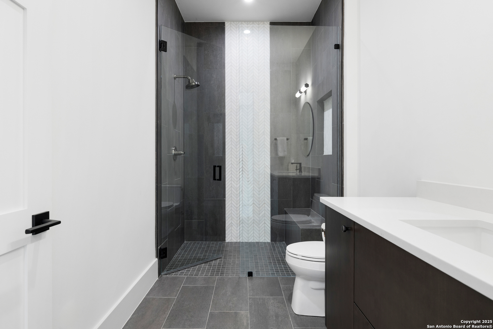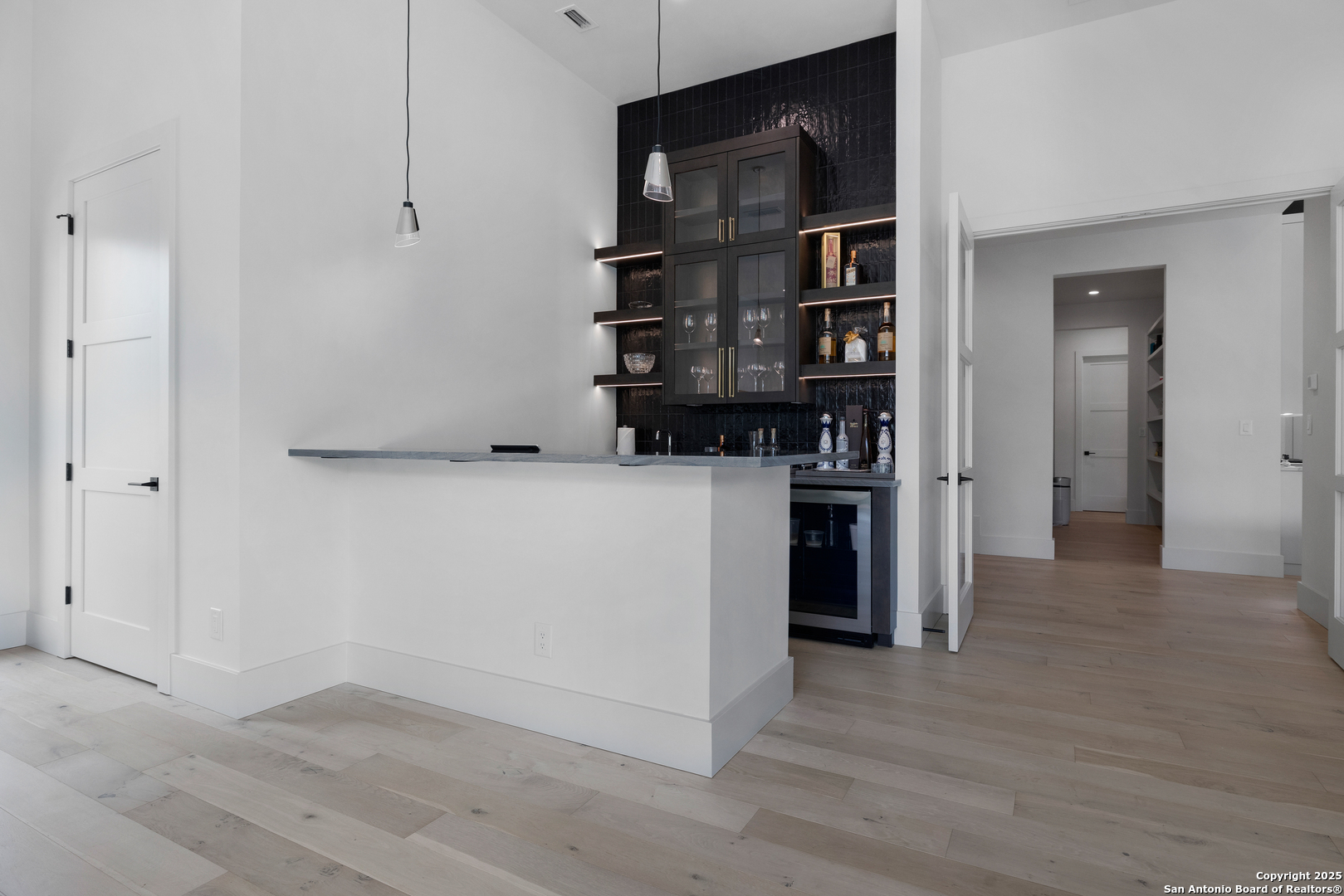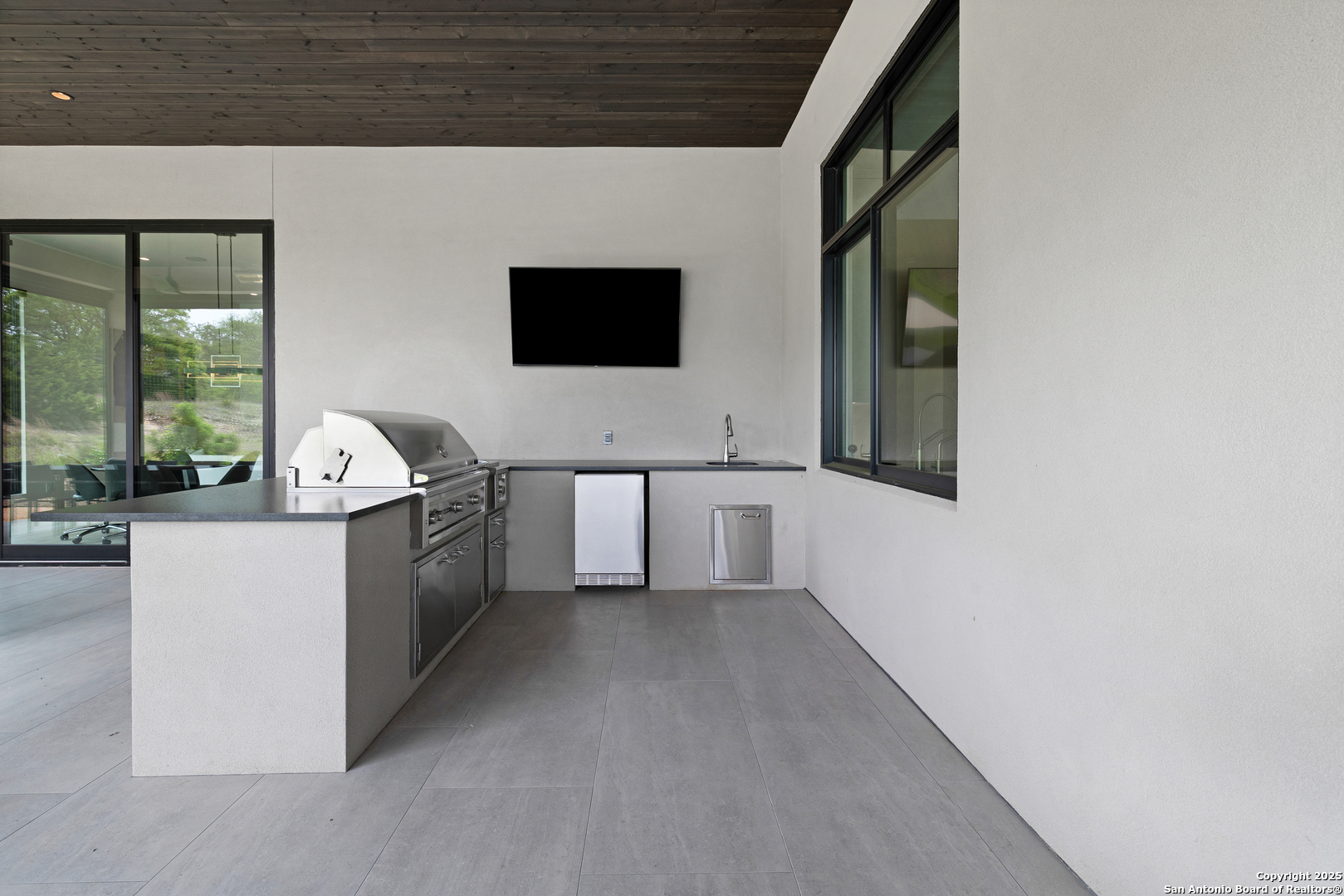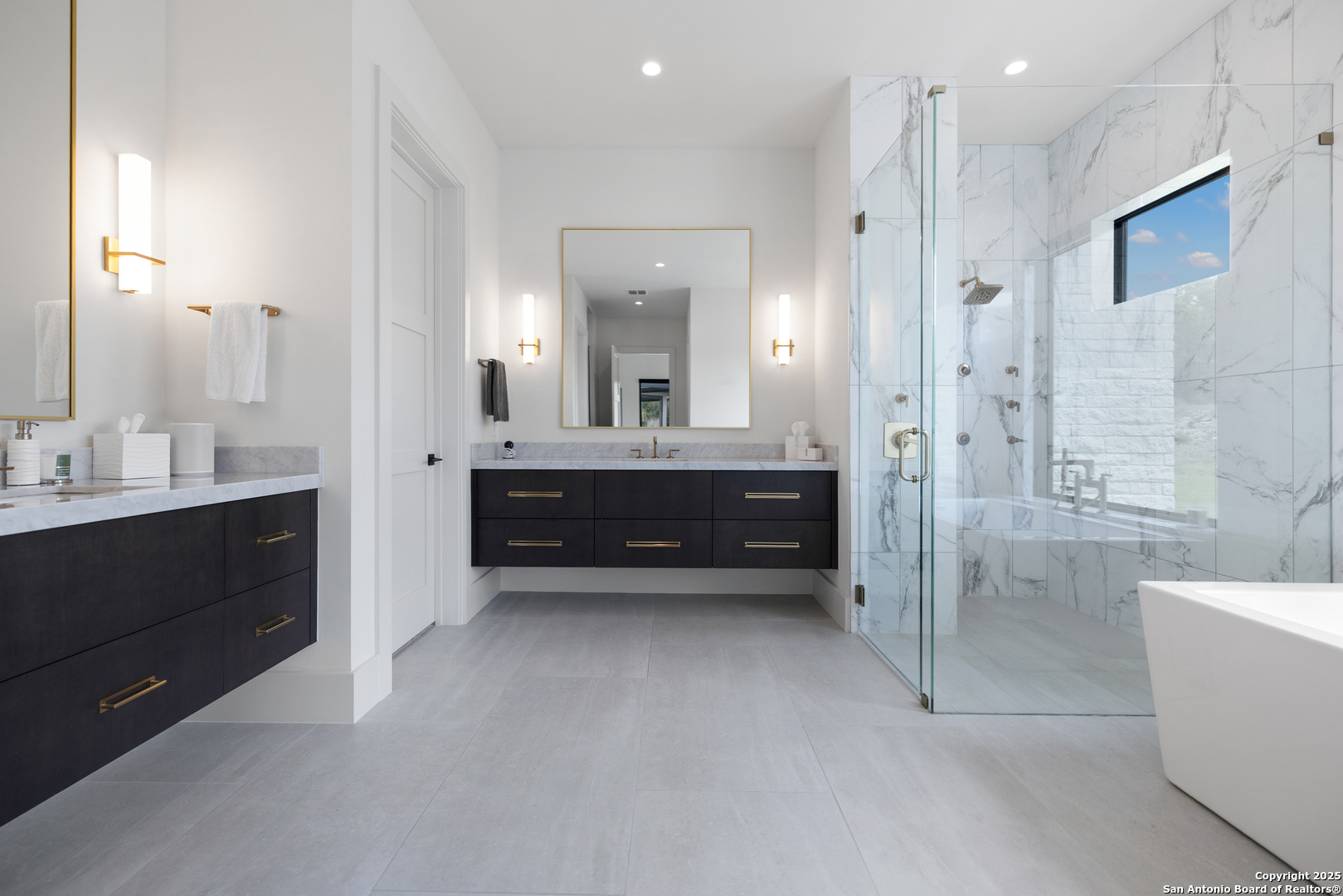 Nestled in the prestigious Clubs Village at Cordillera Ranch, this custom Garner Home perfectly blends modern Hill Country style with everyday livability. Every detail was thoughtfully chosen to create a balance of comfort, elegance, and clean architectural design. The dramatic glass entry doors immediately frame peaceful views of the outdoor oasis, complete with a resort-style pool and spa. Inside, soaring ceilings, abundant natural light, and a soft neutral palette set a calm, inviting tone throughout the home. The chef's kitchen is both stunning and highly functional, featuring quartzite countertops, a waterfall island, and a full suite of Thermador appliances. It opens seamlessly to the main living area, where a floor-to-ceiling stone fireplace becomes the centerpiece of the room. The primary suite feels like a private retreat, offering its own sitting area and a spa-inspired bath with dual vanities, a freestanding soaking tub, an oversized walk-in shower, and separate dressing areas. Upstairs, two additional bedrooms share a cozy private lounge and a covered balcony with beautiful long-range views. Two main-level guest suites provide added comfort and privacy for visitors. For entertaining, the game room is ideal, complete with a full bar and sliding glass doors that open directly to the outdoor living area. A separate fitness room offers flexibility for a fifth bedroom, home office, or creative space. Outside, the home continues to shine with a summer kitchen, multiple lounging areas, and the gorgeous pool and spa. THIS PROPERTY ALSO INCLUDES A MASTER FULL GOLF RIGHT MEMBERSHIP TO THE CLUBS OF CORDILLERA RANCH!! With its privacy, thoughtful amenities, and elevated lifestyle, this home truly embodies luxury living in one of the Hill Country's most desirable communities.