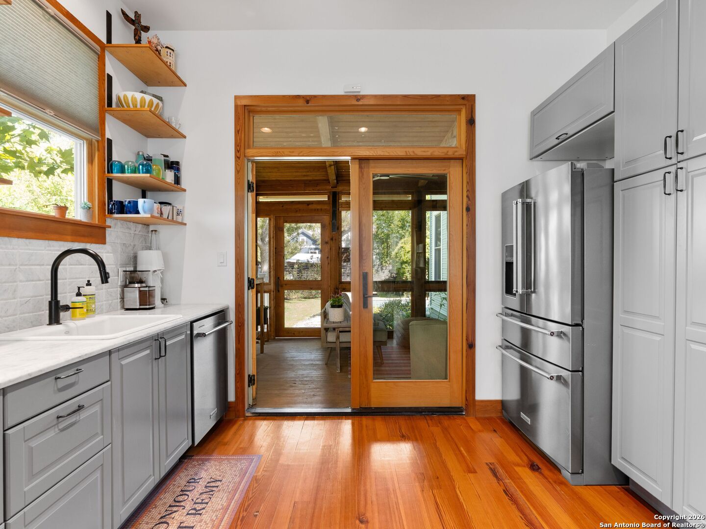 Discover the ultimate blend of historic charm and modern sophistication at this beautifully remodeled home at 211 Devine St. Located near the best restaurants and parks in the city, this property is a true urban oasis. Completely remodeled in 2017, this home has been meticulously updated to provide a contemporary and comfortable lifestyle. The renovations touched every corner, with an open floor plan connecting the living, dining, and kitchen areas for seamless flow and effortless entertaining. Soaring high ceilings create an open, airy atmosphere, while new double-pane solid wood windows throughout ensure energy efficiency and bright interiors. The gourmet kitchen is a chef's dream, featuring exquisite Carrera marble countertops, high-end appliances, and ample storage. This central hub is perfectly integrated into the main living space, making it ideal for both daily meals and large gatherings. A versatile second-story loft can serve as an additional living area, home office, gym or creative space. A custom Citizen Build metal stair railing adds a touch of modern artistry to the intelligent floor plan. The serene, expansive primary suite is a private retreat, featuring vaulted ceilings that enhance the feeling of spaciousness. Storage is abundant with multiple closets, including a custom-designed and built closet system by renowned local artisan Leo Barrios, showcasing exceptional craftsmanship. A luxurious private on-suite bath completes this personal sanctuary, offering a stunning Ipe wood soaking tub and walk-in shower. Step outside to your private paradise, the tranquil outdoor living space is enhanced by a copper mesh screened-in porch, perfect for enjoying a morning coffee or an evening cocktail. The Keith Zars pool offers a refreshing escape from the Texas heat and is surrounded by an Ipe wood sunning deck and trumpet vine pergola, perfect for afternoon gatherings. This home is ideally situated for those who love city life but cherish their privacy. Enjoy proximity to iconic landmarks like the San Antonio River Walk and Hemisfair, as well as a rich dining and entertainment scene. With its modern upgrades, exceptional design, and prime location, this property offers an unparalleled opportunity to own a piece of San Antonio's unique charm.