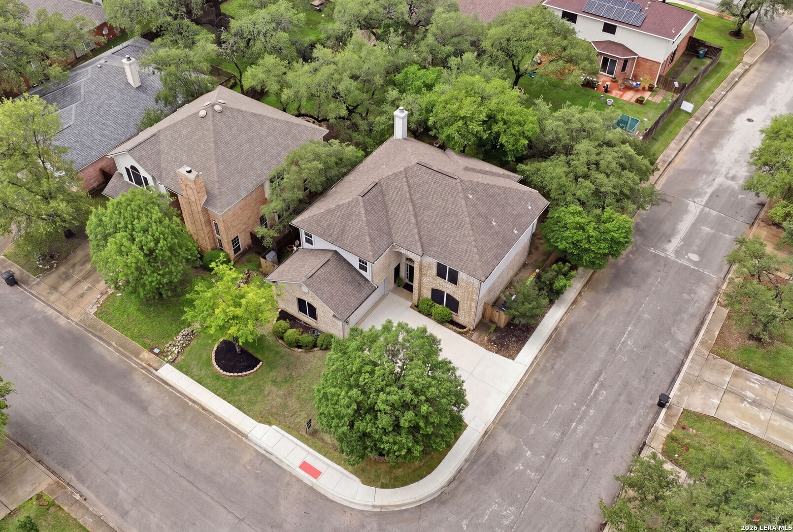 Spacious two-story home on a corner lot in desirable Encino Forest in North Central San Antonio, offering flexible living, extensive upgrades, and strong location benefits. The main level includes a dedicated office with French doors, formal and casual living spaces, a large dining area with custom dry bar and built in shelving, and a family room with fireplace and prewired media setup. The kitchen includes an island, updated soft close drawers, Rev A Shelf pullout, abundant cabinetry, and adjacent breakfast area. A sunroom adds valuable enclosed flex space and offers options for a second sitting area, reading room, hobby space, workout area, or additional living space, while improving connection to the backyard and outdoor living areas. The generous primary suite includes a large arched window, updated air return for improved comfort, and spacious bath layout. Upstairs includes secondary bedrooms, updated Mohawk laminate flooring. The fourth bedroom includes a bonus space that can be used for a craft area, sitting room, or flex space. Extensive interior improvements include recessed LED lighting, updated switches, upgraded outlets, ceiling fans, new door hardware, crown molding, chair rail detailing, and updated guest bath tile flooring. Major system improvements include upgraded attic insulation to R 38, HVAC enhancements including duct improvements, custom plenum, UV light, condenser hard start kit, drain float switch, and duct cleaning. Plumbing improvements include pressure reducing valve, expansion tank, and repaired kitchen sewer drain beneath foundation with the remainder of a transferable one-year warranty. Google Fiber available. Water softener system rebuilt. Outdoor features include a 15 x 13 concrete patio, mature trees, fenced backyard, and usable yard space. Exterior improvements include James Hardie Cedarmill siding, Simonton 5500 dual pane Low E windows, updated trim, and exterior paint improvements. Convenient access to Highway 281 and Loop 1604 supports efficient commuting to major employment centers, shopping, dining, medical services, and everyday conveniences. Nearby amenities include H E B, Stone Oak retail and restaurant destinations, and Methodist Stone Oak Hospital. Regional access to Joint Base San Antonio locations adds broader connectivity. Includes 3D walkthrough and floor plan.