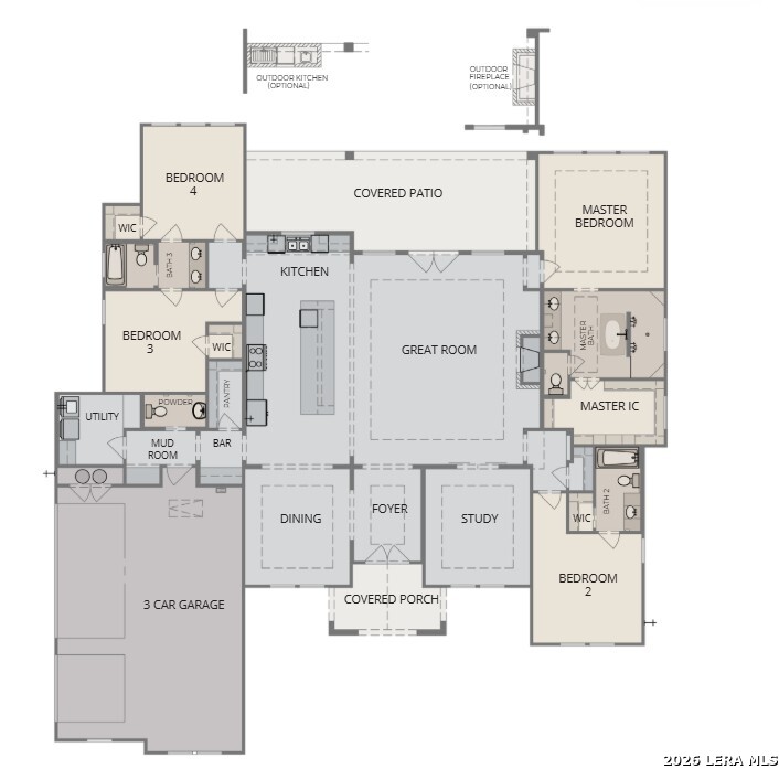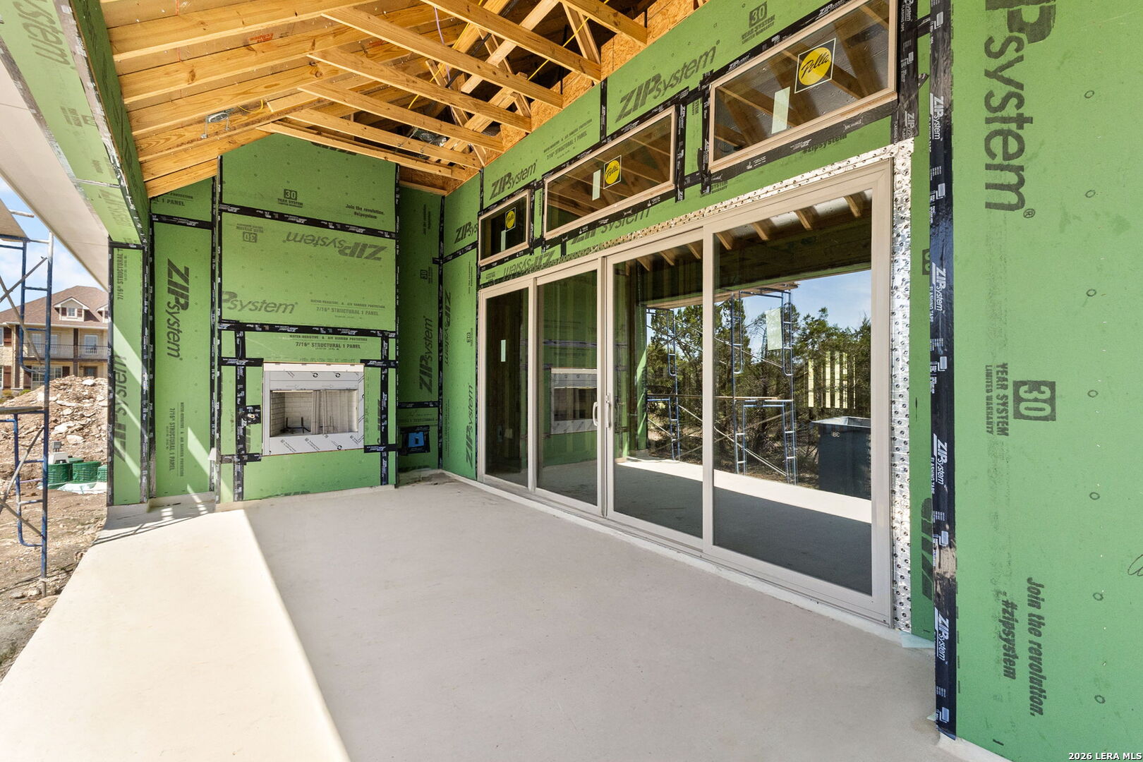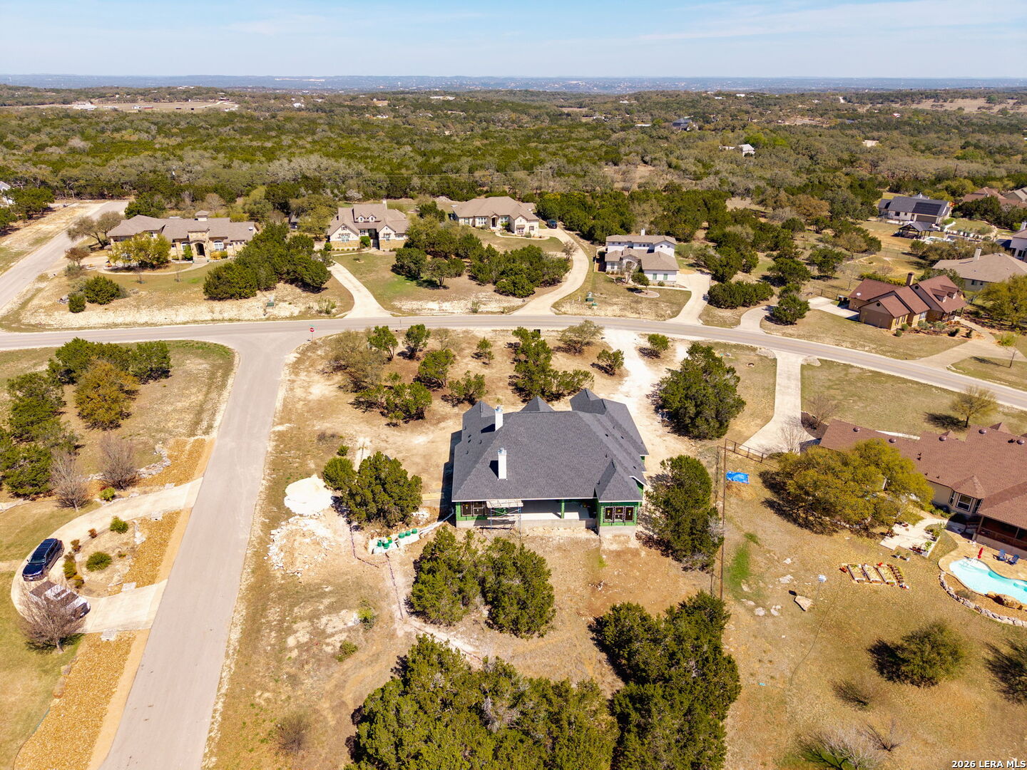 Welcome to 2116 Comal Springs in the highly sought-after Mountain Springs Ranch community. This stunning new construction home by JLP Builders is scheduled for completion in Q3 2026 and showcases a thoughtfully designed, modified Mulberry floor plan with a transitional style that blends timeless elegance with Hill Country charm. Step inside to an open-concept layout ideal for both everyday living and entertaining, enhanced by beautiful wood flooring that adds warmth and sophistication throughout the main living areas. The spacious living room features a striking floor-to-ceiling stone fireplace, creating a true focal point, and flows seamlessly into a chef-inspired kitchen outfitted with premium GE Cafe appliances, custom cabinetry, and an oversized island-perfect for gathering and hosting. Enjoy seamless indoor-outdoor living with a dramatic 16-foot sliding bi-parting glass door that opens to the outdoor living space, complete with a 36" wood-burning fireplace-ideal for relaxing evenings and entertaining year-round. Designed with both functionality and style in mind, the home offers well-appointed living spaces, abundant natural light, and quality craftsmanship at every turn. Enjoy the peace of mind that comes with new construction, including a builder's warranty, all set against the scenic beauty of Mountain Springs Ranch. *This home is under construction*