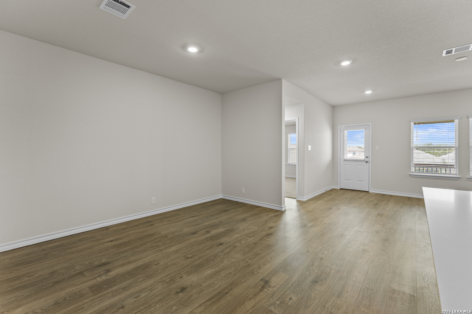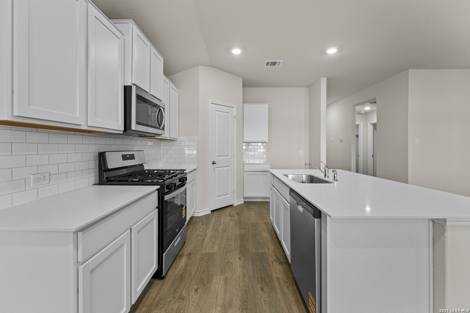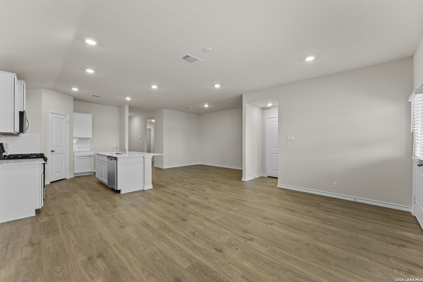 Smart design and spacious living come together in The Harris floor plan located at Brookstone Creek in San Antonio, TX - an elegant 1823 square foot, single-story home offering four bedrooms, two and a half baths and thoughtfully curated spaces for your lifestyle. An extended entryway leads you into a bright and open layout, where the kitchen, dining area and living room flow seamlessly together - perfect for family gatherings and entertaining. The kitchen is a modern showpiece with stainless steel appliances, a gas cooking range, quartz countertops, stylish flat panel cabinetry and a farmhouse-style sink. A spacious island anchors the space while a classic white subway tile backsplash ties everything together with timeless appeal. Privately located at the rear of the home, the primary bedroom suite is a true retreat, featuring a walk-in shower, dual vanity sinks and a generously sized walk-in closet. The secondary bedrooms offer comfort and flexibility. Each includes carpet flooring, large windows and ample closet space - ideal for bedrooms or other flex spaces. The convenient half bathroom adds a practical touch for visitors without sacrificing privacy in the full bathrooms. This home includes our HOME IS CONNECTED base package. Using one central hub that talks to all the devices in your home, you can control the lights, thermostat and locks, all from your cellular device. Additional highlights include hard surface flooring throughout the main living areas and wet zones, a covered patio for relaxing outdoors, full yard landscaping with irrigation and a pre-plumbed water softener loop to support your future upgrades. *Seller is willing to assist with closing costs or a rate buy-down through preferred lender with an acceptable offer. *