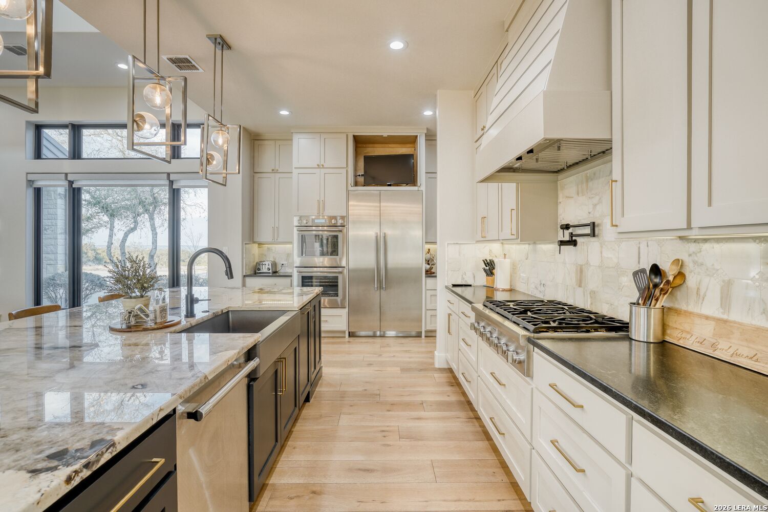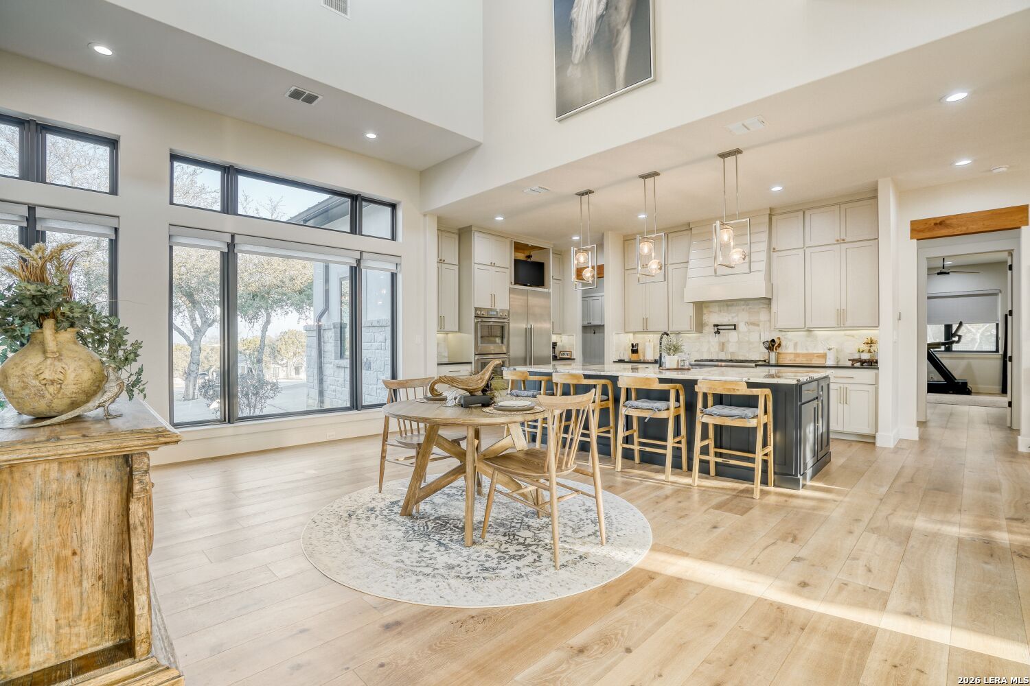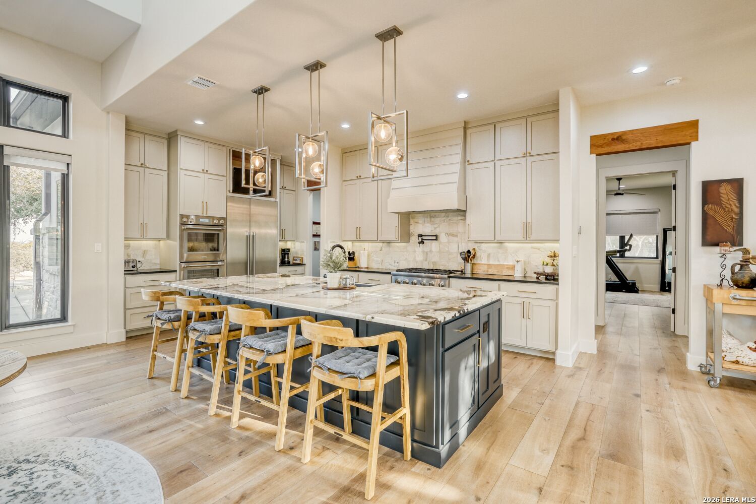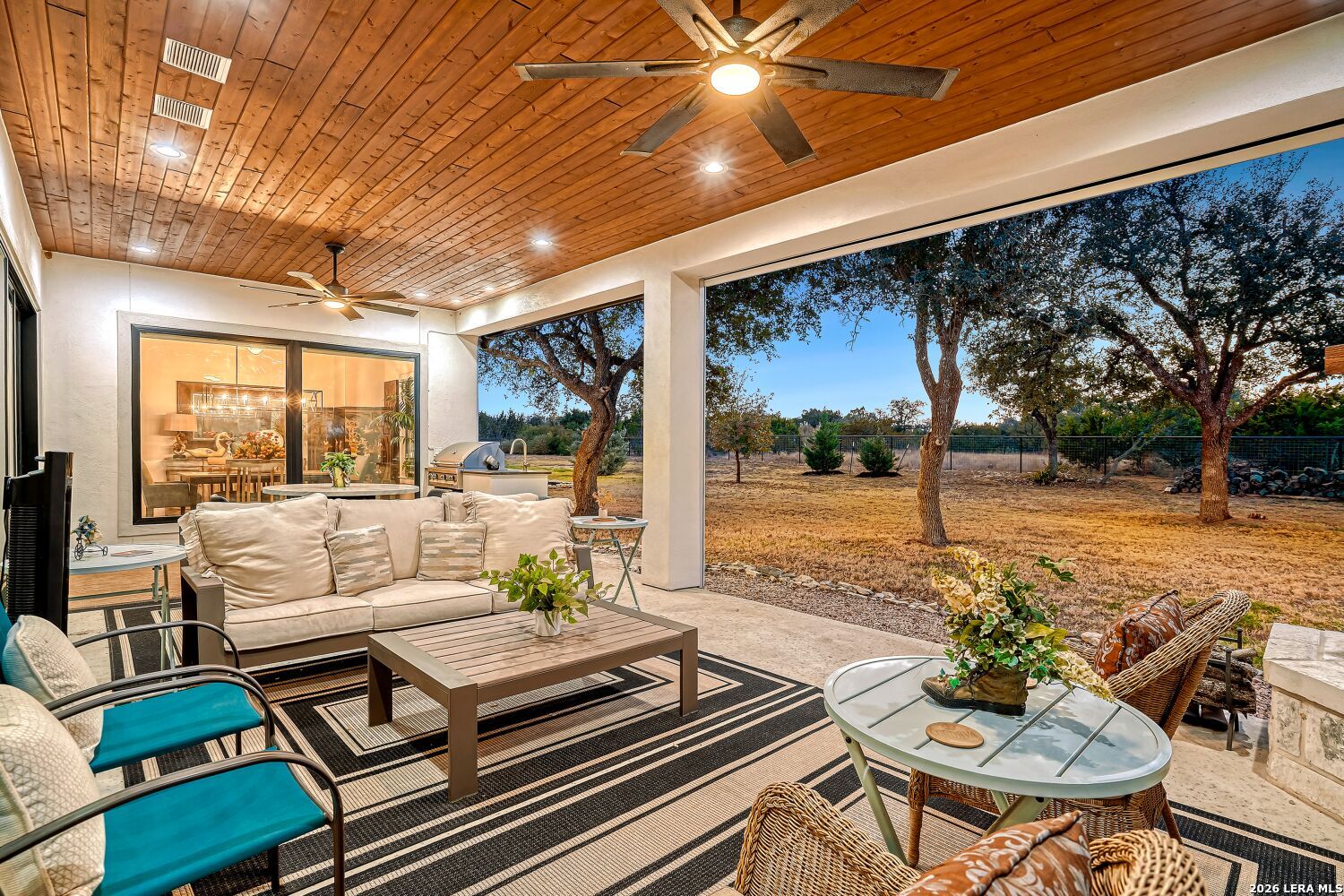 The moment you step inside, you're drawn into an open living space defined by soaring ceilings and natural light flooding through generous windows. A signature fireplace anchors the room, and the easy flow between indoors and the expansive patio beyond sets the tone for how this home lives - connected, comfortable, and built for how people actually spend their time. The kitchen is where this home shows serious thought. Thermador appliances, a six-burner gas cooktop, and double wall ovens are built for actual cooking, not just looking at. A pot filler over the cooktop, a built-in refrigerator, and a dedicated icemaker in the pantry handle the practical details that make daily life smoother. Marble countertops and under-cabinet lighting complete the picture - functional and refined without feeling fussy. Opus oak flooring flows throughout, creating a visual continuity that makes the whole space feel larger and brighter. The primary suite feels like a personal retreat. A generous walk-in closet accommodates a full wardrobe, and the en suite delivers genuine spa quality with separate vanities, a deep soaking tub, and a walk-in shower designed for real comfort. Hunter Douglas motorized shades throughout the home adjust with your phone, and the whole-home smart system lets you manage lighting, temperature, and security from anywhere without the complexity. Each of the secondary bedrooms includes a walk-in closet, something you don't always find at this level. The fourth bedroom works equally well as a guest suite, media room, or home office. The bathrooms keep the same attention to detail with marble countertops and quality fixtures that feel spa-like without pretension. The garage alone deserves attention. Nearly 1,300 square feet gives you space for vehicles and a boat with exceptional clearance, epoxy flooring, and glass-panel doors that look intentional rather than utilitarian. Pre-wired soffit outlets and yard lighting are already in place. A mudroom captures the practical transition from garage to living space, keeping things tidy without extra fuss. Outside, the covered patio is genuinely spacious - three panel sliders open to the backyard, and an outdoor fireplace and kitchen make entertaining feel natural rather than like a production. Pipe-style cattle panel fencing provides privacy while keeping sightlines open. A zoned sprinkler system handles the landscape automatically, and tankless water heaters plus two separate HVAC units mean the mechanical systems are actually scaled to the home's needs. Alto Lago is set within Cordova Bend's gated community, where homes are well-designed and the neighborhood actually has substance - a lakefront park with a boat ramp that turns waterfront living from weekend fantasy into a real part of daily life. You're buying into more than just a house here. You're getting a home in a place where the details matter and where living well is genuinely possible every day.