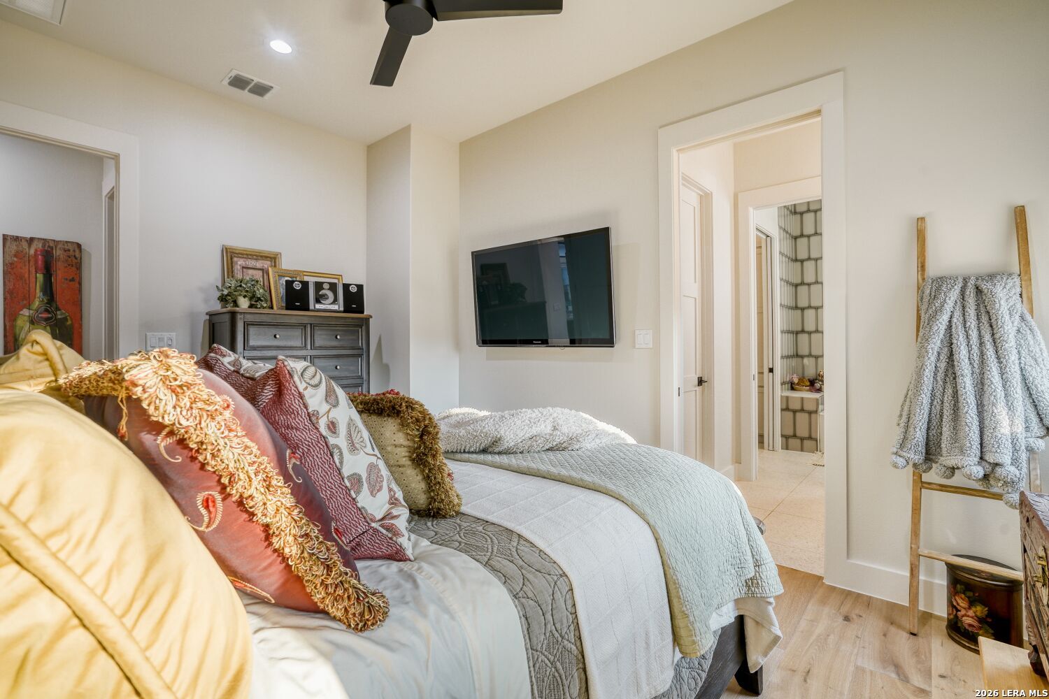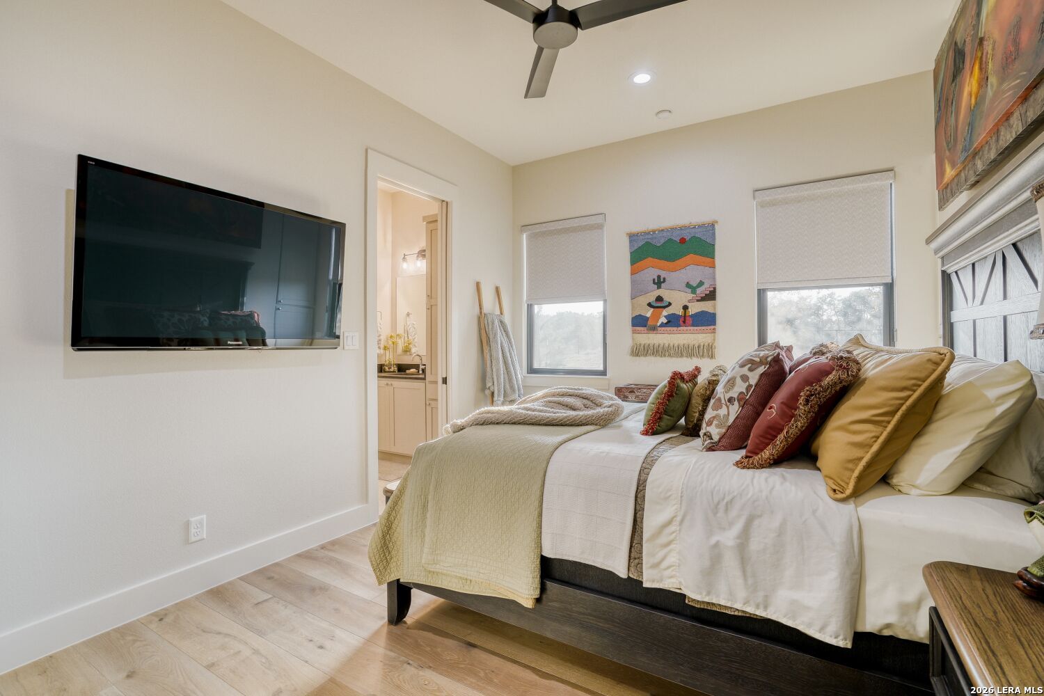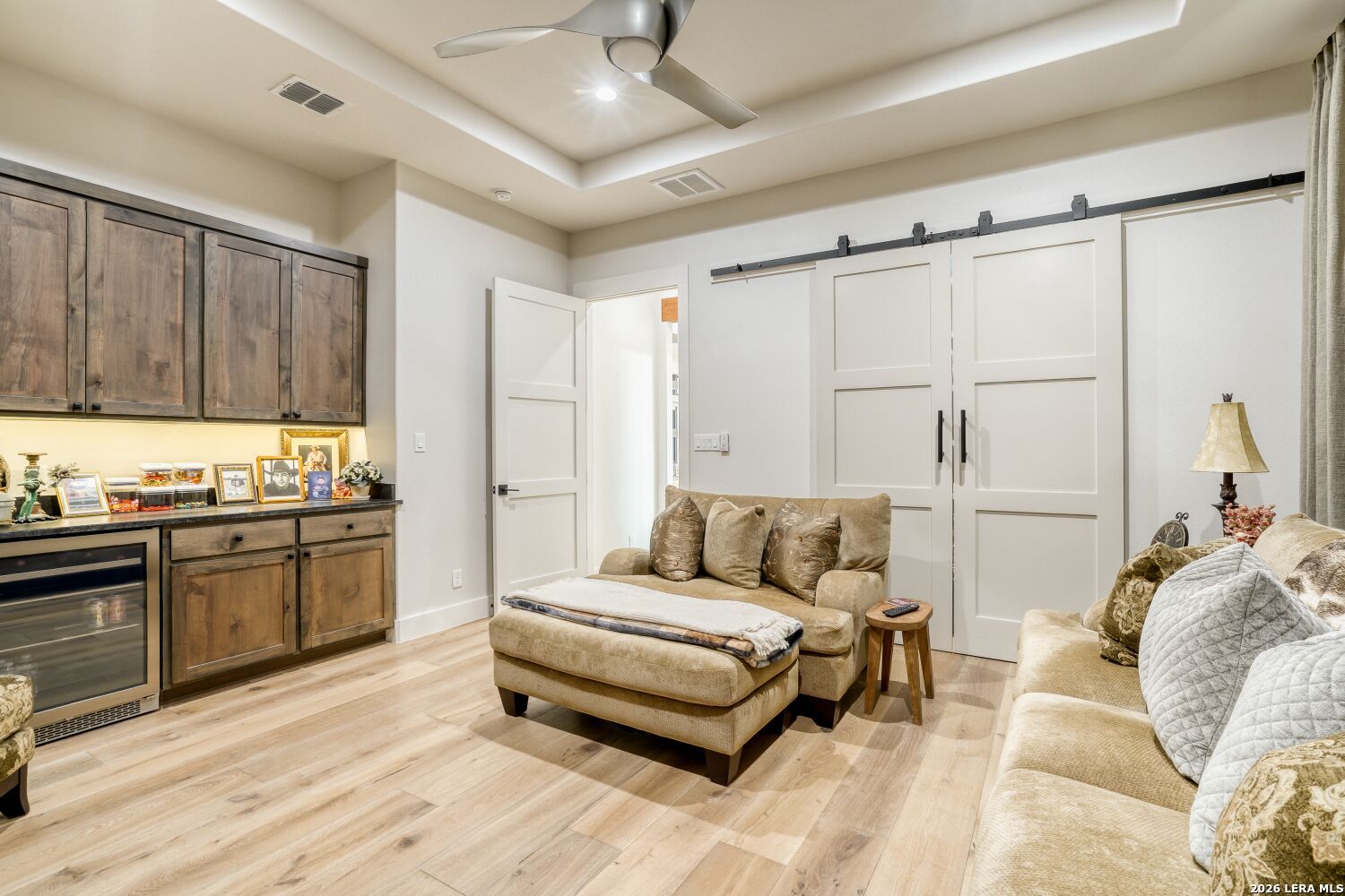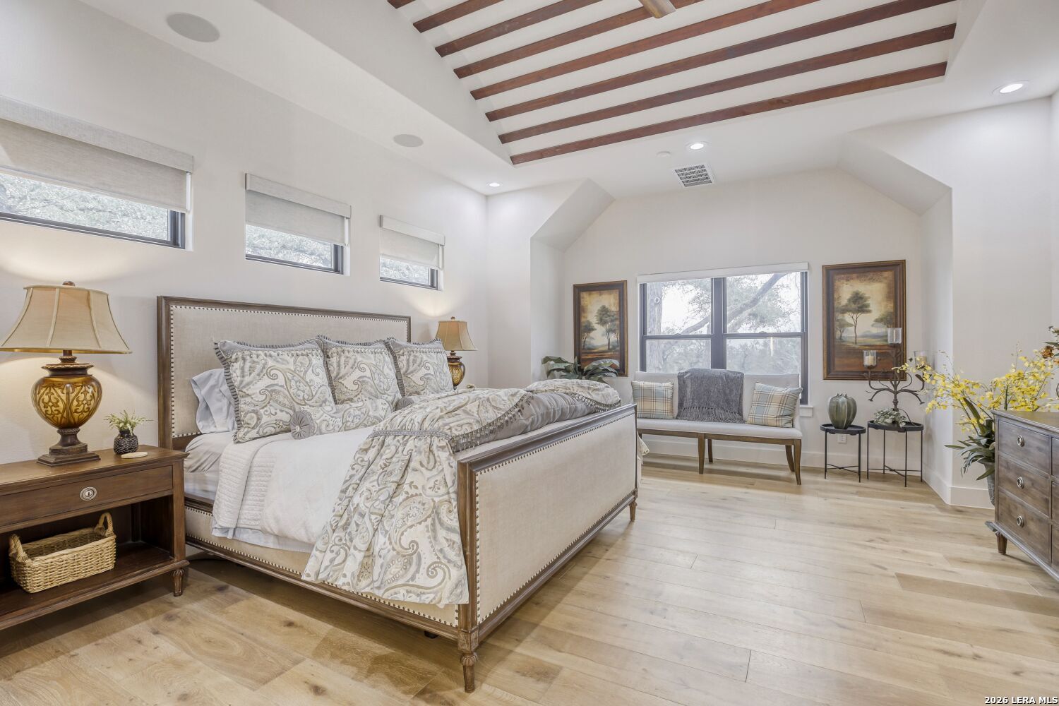 The moment you step inside, you're drawn into an open living space defined by soaring ceilings and natural light flooding through generous windows. A signature fireplace anchors the room, and the easy flow between indoors and the expansive patio beyond sets the tone for how this home lives - connected, comfortable, and built for how people actually spend their time. The kitchen is where this home shows serious thought. Thermador appliances, a six-burner gas cooktop, and double wall ovens are built for actual cooking, not just looking at. A pot filler over the cooktop, a built-in refrigerator, and a dedicated icemaker in the pantry handle the practical details that make daily life smoother. Marble countertops and under-cabinet lighting complete the picture - functional and refined without feeling fussy. Opus oak flooring flows throughout, creating a visual continuity that makes the whole space feel larger and brighter. The primary suite feels like a personal retreat. A generous walk-in closet accommodates a full wardrobe, and the en suite delivers genuine spa quality with separate vanities, a deep soaking tub, and a walk-in shower designed for real comfort. Hunter Douglas motorized shades throughout the home adjust with your phone, and the whole-home smart system lets you manage lighting, temperature, and security from anywhere without the complexity. Each of the secondary bedrooms includes a walk-in closet, something you don't always find at this level. The fourth bedroom works equally well as a guest suite, media room, or home office. The bathrooms keep the same attention to detail with marble countertops and quality fixtures that feel spa-like without pretension. The garage alone deserves attention. Nearly 1,300 square feet gives you space for vehicles and a boat with exceptional clearance, epoxy flooring, and glass-panel doors that look intentional rather than utilitarian. Pre-wired soffit outlets and yard lighting are already in place. A mudroom captures the practical transition from garage to living space, keeping things tidy without extra fuss. Outside, the covered patio is genuinely spacious - three panel sliders open to the backyard, and an outdoor fireplace and kitchen make entertaining feel natural rather than like a production. Pipe-style cattle panel fencing provides privacy while keeping sightlines open. A zoned sprinkler system handles the landscape automatically, and tankless water heaters plus two separate HVAC units mean the mechanical systems are actually scaled to the home's needs. Alto Lago is set within Cordova Bend's gated community, where homes are well-designed and the neighborhood actually has substance - a lakefront park with a boat ramp that turns waterfront living from weekend fantasy into a real part of daily life. You're buying into more than just a house here. You're getting a home in a place where the details matter and where living well is genuinely possible every day.