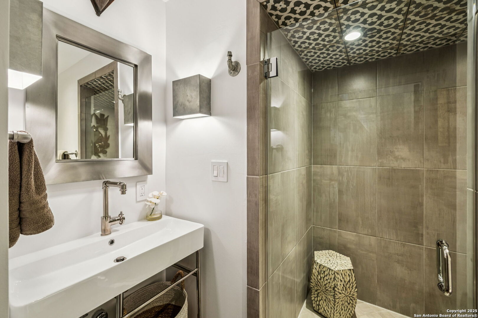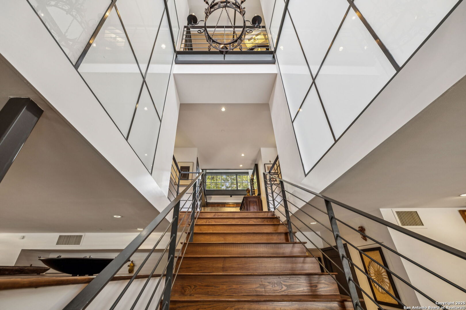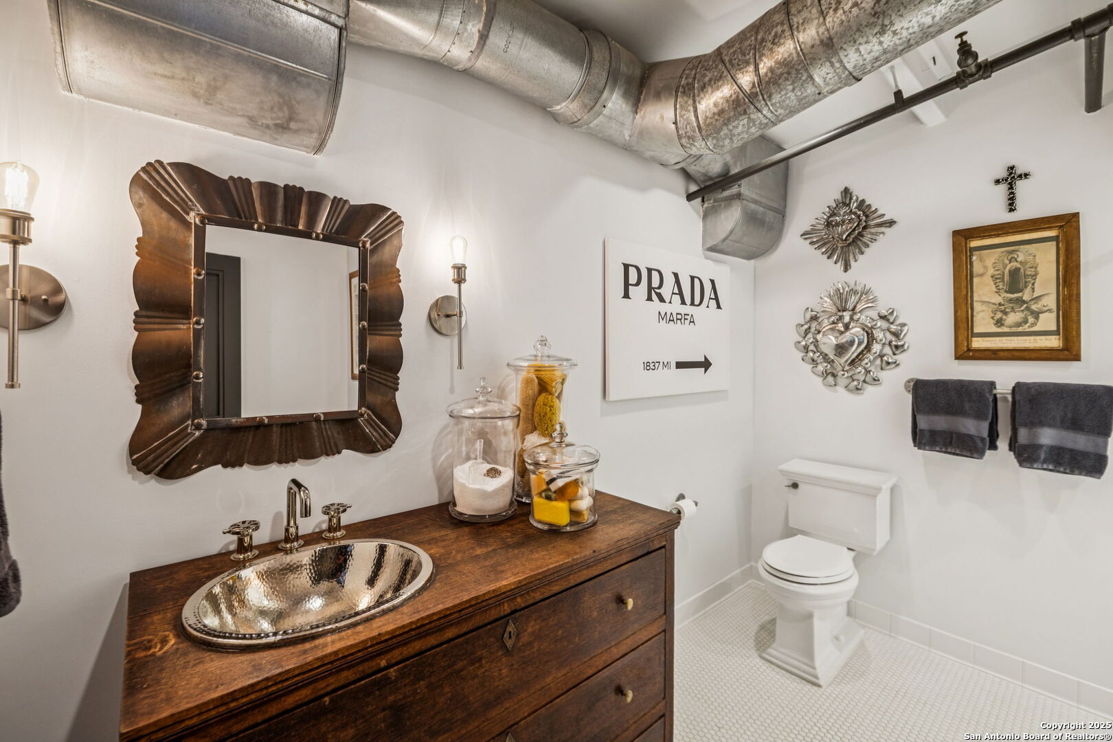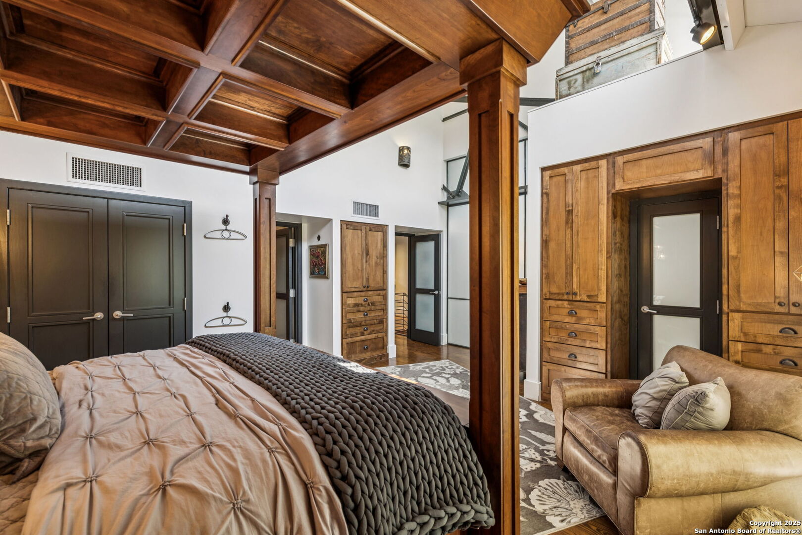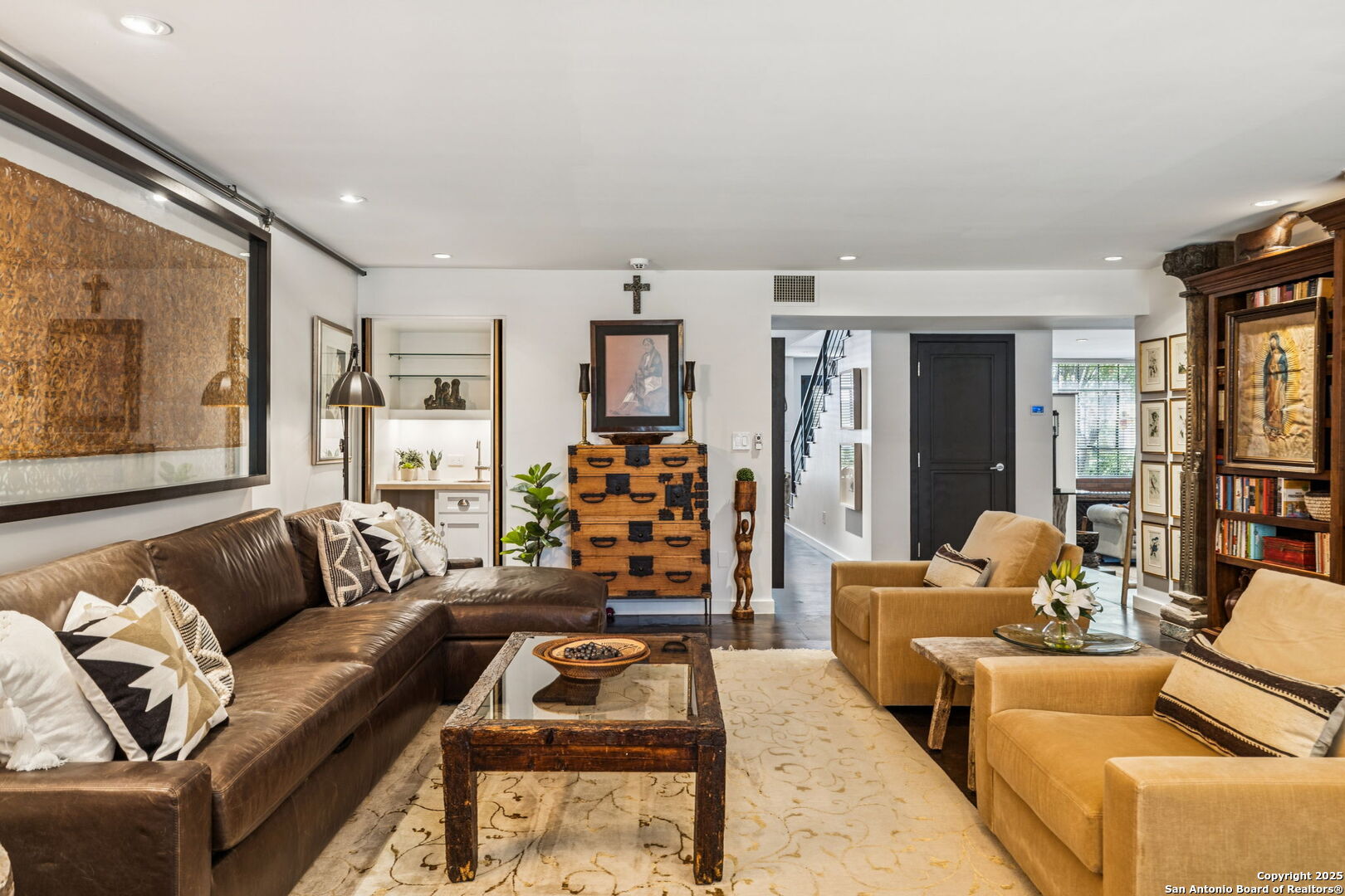 An extraordinary residence within the oldest historic neighborhood in Texas - San Antonio's King William Historic District, this 4,014-square-foot loft unfolds across three levels. Steel beams and exposed brick form the backdrop for interiors that move fluidly between grand gathering spaces and more intimate alcoves, punctuated by multiple patios and balconies that extend the living experience outward. The floor plan offers four distinct living areas, each with its own atmosphere: from a soaring double-height living room edged in industrial windows to fireside seating arranged with sculptural precision. The kitchen takes its place as a functional and aesthetic centerpiece, finished in warm wood cabinetry, professional-grade appliances with gas cooking and dekton countertops Two private bedroom suites anchor the plan, complemented by additional flexible sleeping areas and four full baths. The primary suite is a dramatic gesture in wood and steel, crowned by a custom canopy bed beneath vaulted trusses, with a Japanese copper soaking tub fed by a ceiling-mounted faucet creating a striking focal point in the bath. A curated environment that is part gallery and part sanctuary, this residence offers the scale and function of a house within San Antonio's most storied district and stands as one of its rarest offerings. 4,014 sq ft 2 bedroom suites (with 1-2 additional sleeping areas) 4 full baths 4 living areas 3-levels 4 patio/balconies