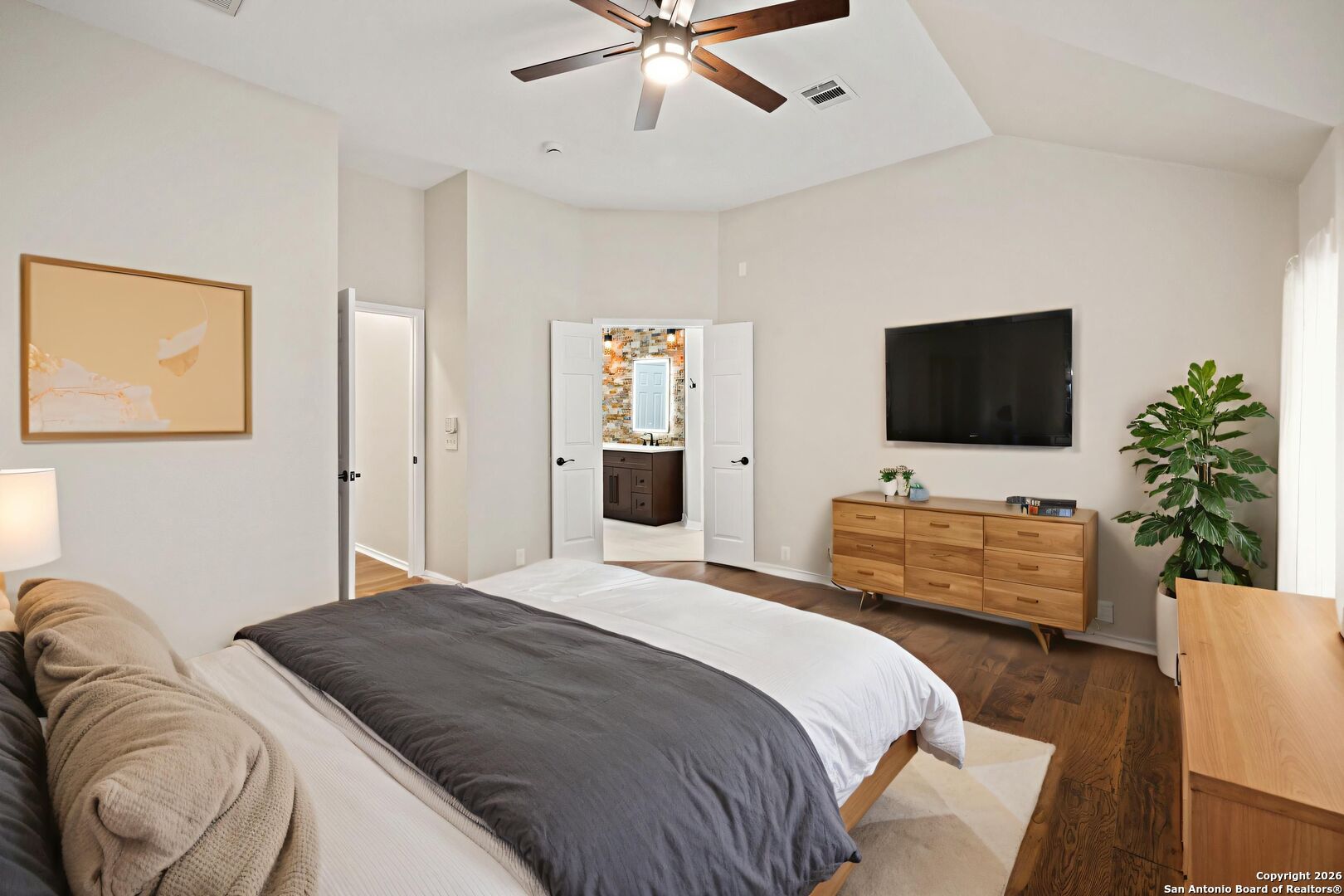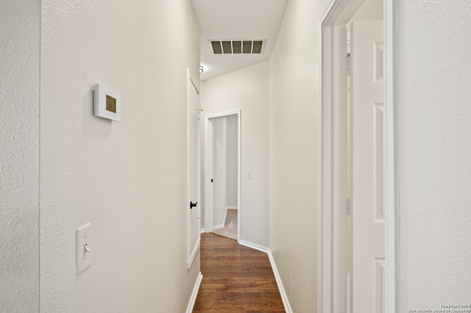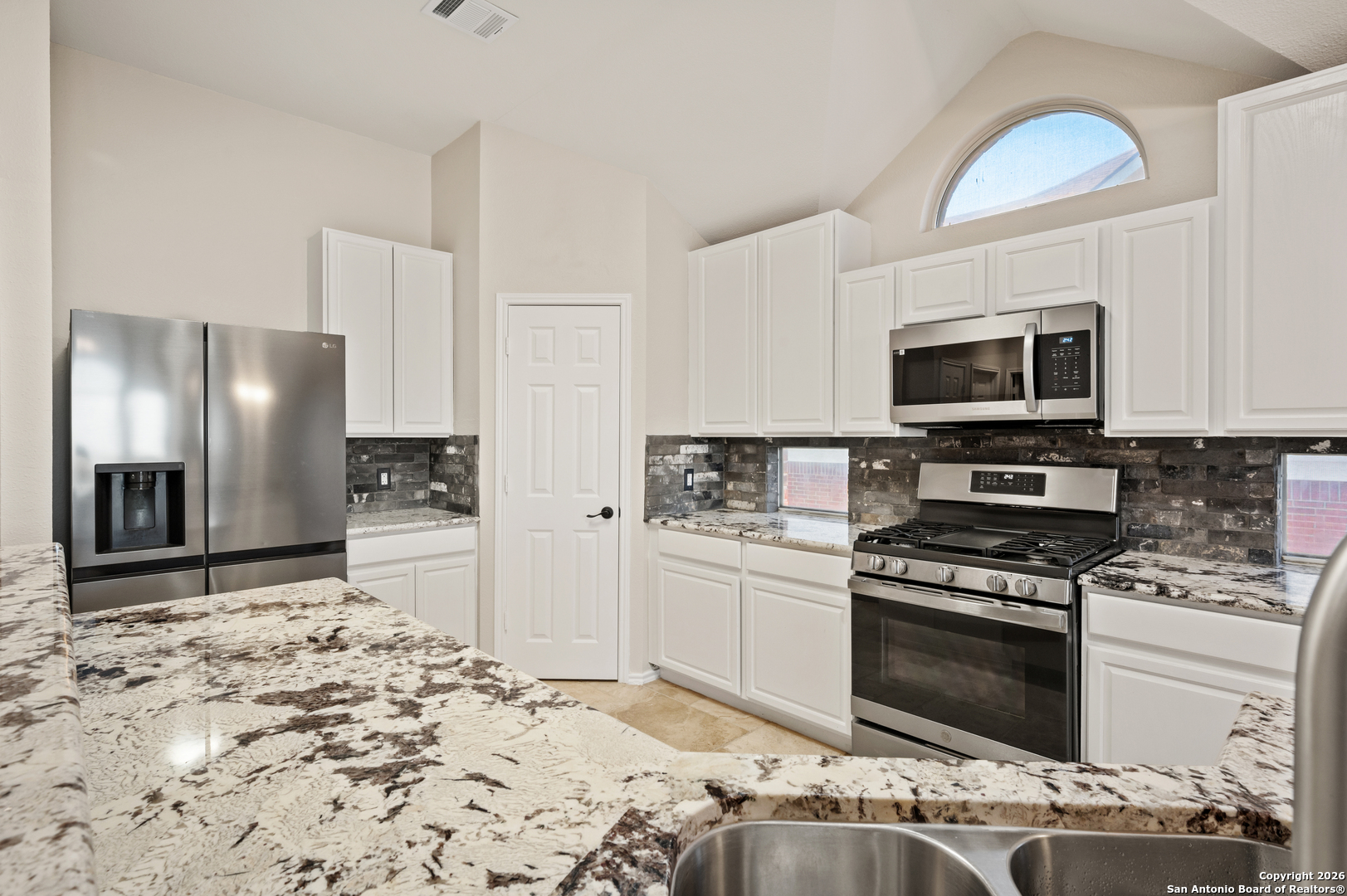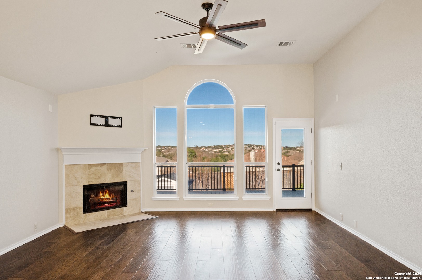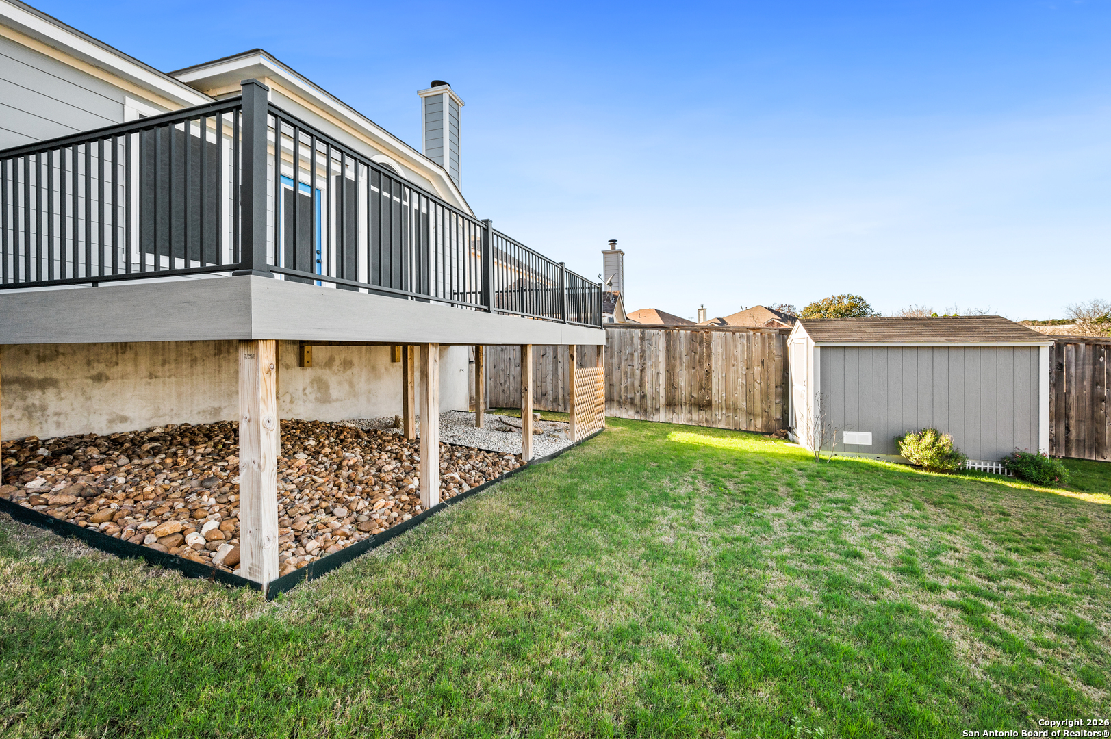 Welcome to 21247 Rio Sabinal, a beautifully updated single-story home tucked inside the gated community of Encino Rio. Set on a meticulously landscaped lot, this four bedroom, two bath, two car garage residence offers sweeping hill country style views that stretch for miles and a backyard that feels like your own private park. Inside, the home has been thoughtfully refreshed with fresh paint throughout, new carpet in the secondary bedrooms, and upgraded flooring featuring high-end travertine and wide wood scraped plank flooring. The fully remodeled primary suite is a true retreat, highlighted by a tastefully finished bathroom with custom tile work and a frameless glass shower enclosure. The kitchen is designed to impress, making a bold statement with exotic granite countertops, a natural stone backsplash, and a stainless steel five burner gas stove. Whether entertaining or enjoying everyday living, the layout is both functional and visually striking. Step outside to a maintenance-free deck overlooking a serene, park-like backyard with breathtaking views that elevate everyday moments. This Encino Rio gem blends privacy, style, and comfort in one of the area's most desirable gated neighborhoods.