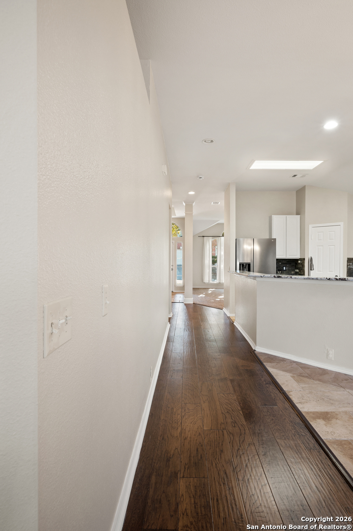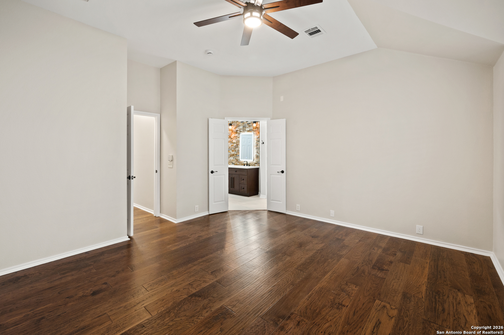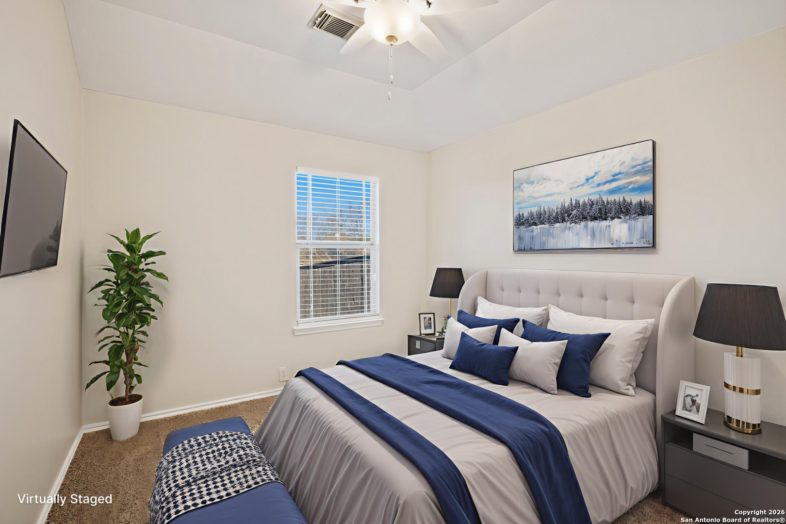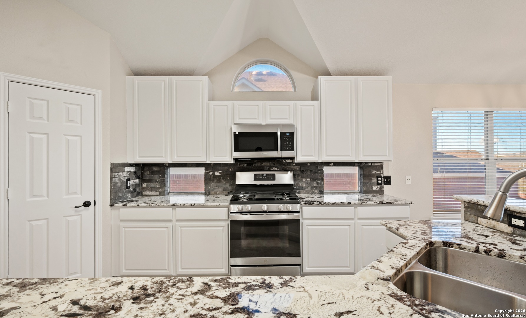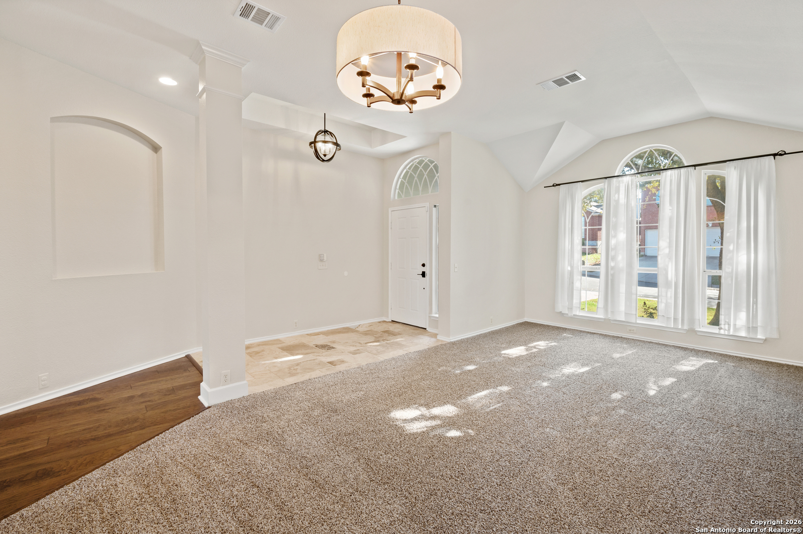 Welcome to 21247 Rio Sabinal, a beautifully updated single-story home tucked inside the gated community of Encino Rio. Set on a meticulously landscaped lot, this four bedroom, two bath, two car garage residence offers sweeping hill country style views that stretch for miles and a backyard that feels like your own private park. Inside, the home has been thoughtfully refreshed with fresh paint throughout, new carpet in the secondary bedrooms, and upgraded flooring featuring high-end travertine and wide wood scraped plank flooring. The fully remodeled primary suite is a true retreat, highlighted by a tastefully finished bathroom with custom tile work and a frameless glass shower enclosure. The kitchen is designed to impress, making a bold statement with exotic granite countertops, a natural stone backsplash, and a stainless steel five burner gas stove. Whether entertaining or enjoying everyday living, the layout is both functional and visually striking. Step outside to a maintenance-free deck overlooking a serene, park-like backyard with breathtaking views that elevate everyday moments. This Encino Rio gem blends privacy, style, and comfort in one of the area's most desirable gated neighborhoods.