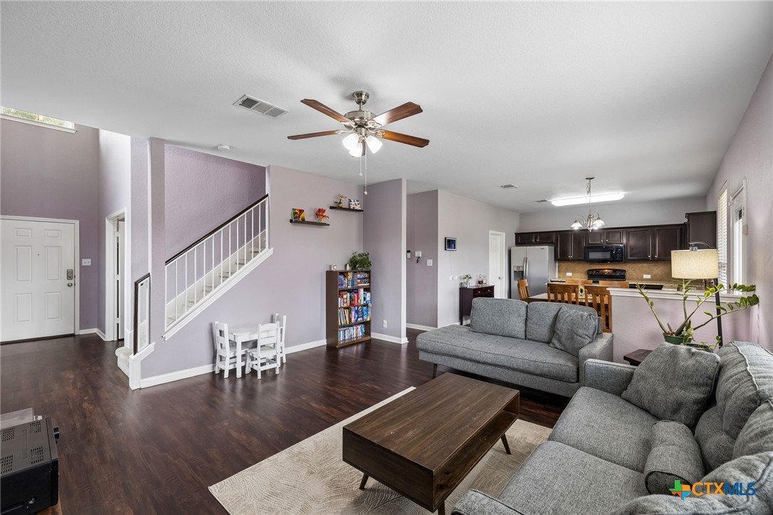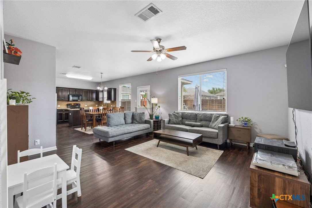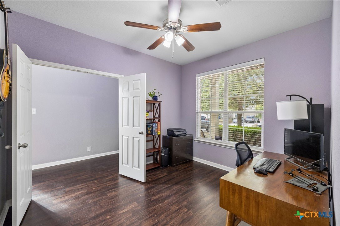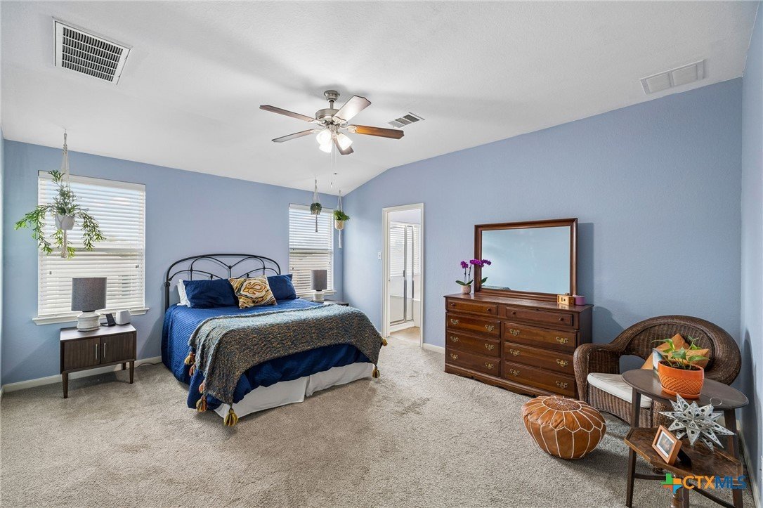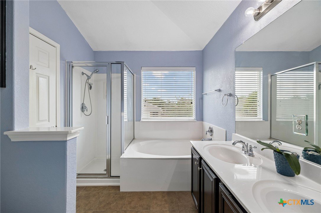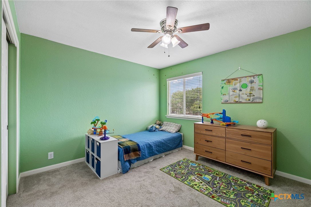 Energy-efficient living in Avery Park with community pool, playground, and flexible living space. This home features 34 solar panels providing an efficient energy source, along with a spacious backyard, covered patio, and privacy fencing designed for outdoor enjoyment. Inside, the open floor plan connects the kitchen, dining, and living areas, while a main-level bonus room offers flexibility for a home office, playroom, or guest space. Upstairs, a second family room with balcony access creates additional living and entertaining space. The kitchen includes upgraded granite countertops, stainless steel appliances, abundant cabinetry, and a large walk-in pantry with shelving. The dining area offers direct outdoor access for easy indoor-outdoor living. The owner’s suite features an oversized bedroom, large walk-in closet, and en suite bath with soaking tub, walk-in shower, and dual vanity. Secondary bedrooms provide spacious closets and ceiling fans. Additional highlights include a two-car attached garage with overhead storage, exterior security cameras, and landscaped yard.