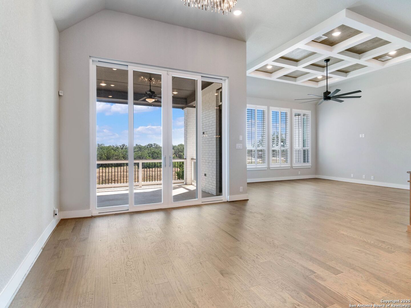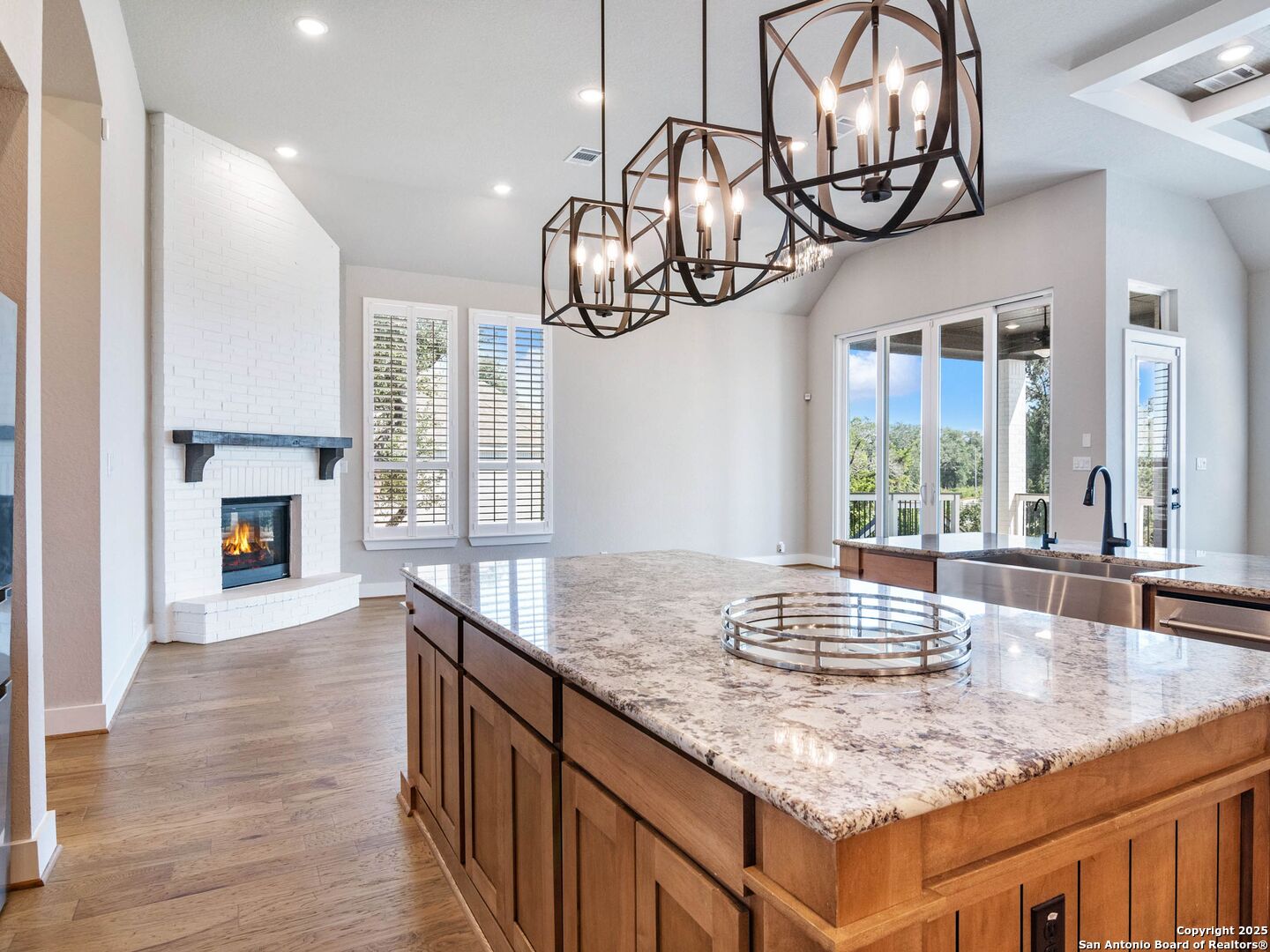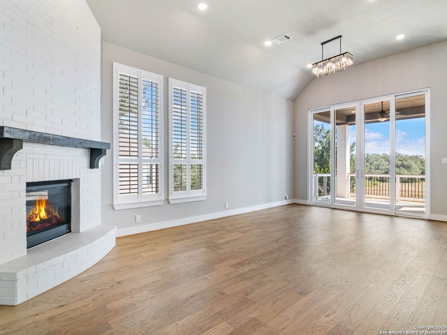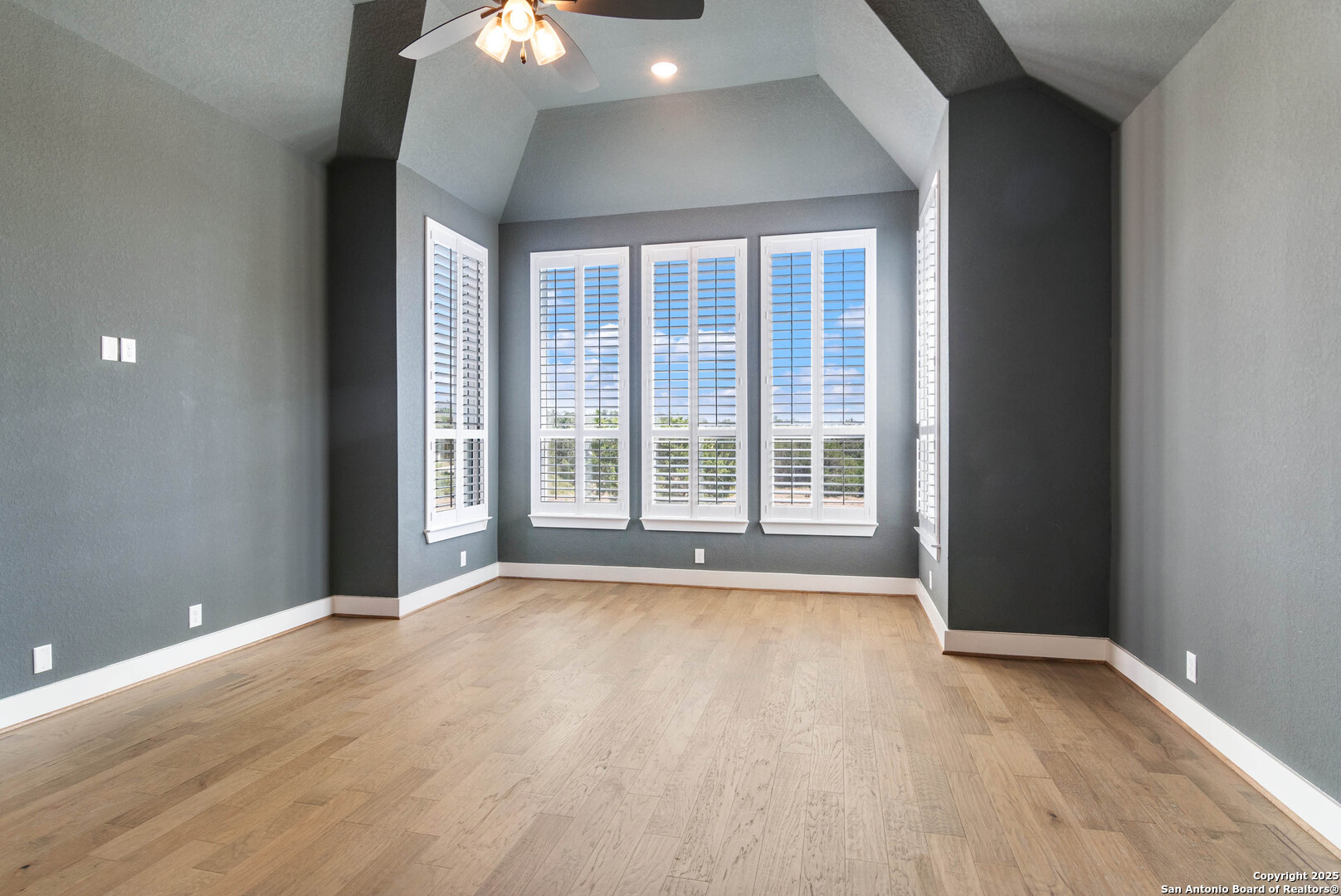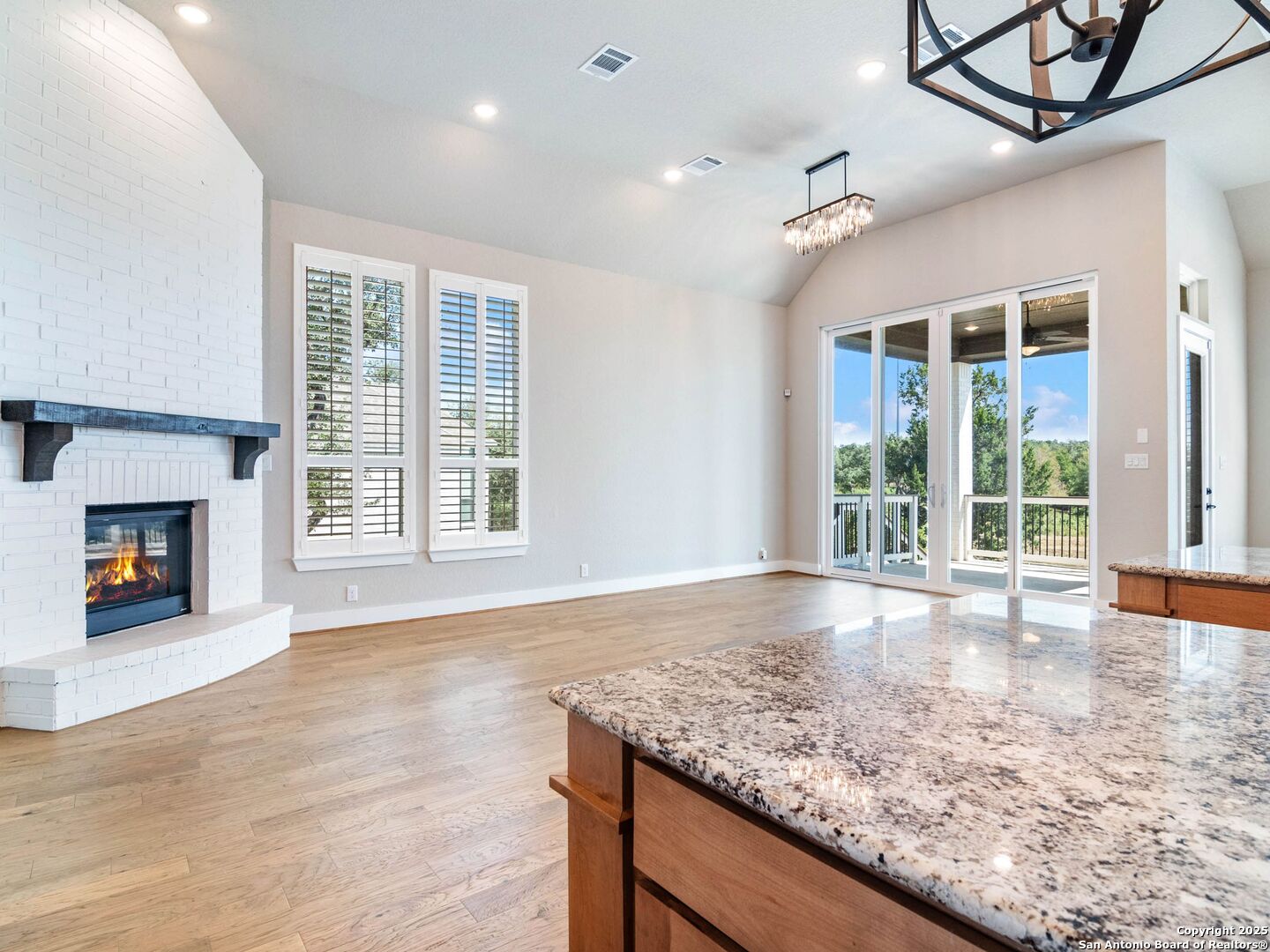 MOVE IN READY! NEW TREES (WAX MYRTLE) PLANTED ACROSS BACK OF PROPERTY - ONE STORY dream home with just about every upgrade you can think of! Premium painted brick elevation, double door front entry, hardwood and tile floors throughout, arched/vaulted ceilings, plantation shutters, custom black lighting fixtures, professional landscaping, etc. The kitchen offers custom cabinetry, a large granite island with built-in stainless-steel appliances, 6 burner commercial gas cooktop, double ovens. The second pantry has been converted to a beverage room complete with a KitchenAid beverage refrigerator, wine bottle holders and additional cabinet storage. The open floor plan allows a natural flow from the kitchen to a comfortable family room / gathering room with a gas fireplace. An Owner suite includes a sitting area, and spa bath - dual vanities, vessel tub, walk-in shower, huge walk-in closet! The secondary rooms are generous in size. Separate Study and game room complete the interior extraordinary package. Outdoor living space includes a custom deck for extended entertaining space. Plenty of room to add your own pool. Enhanced laundry room plus craft room, a must see!! 3 car garage. No steps into the home. This beautiful home has been thoughtfully designed to ensure comfort and convenience. It's perfect for those seeking luxury, comfort with a hill country setting with the conveniences of the city. Don't miss out on this beautiful home! Schedule your showing today. Hwy 281 is just minutes from the community. Schools (Piper elementary TO high school), restaurants, shopping and the Stone Oak HEB grocery are within a 5-minute drive! NO MUD OR CITY TAX!