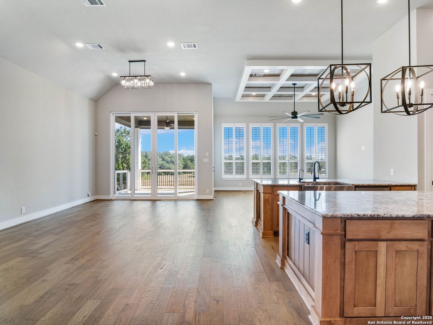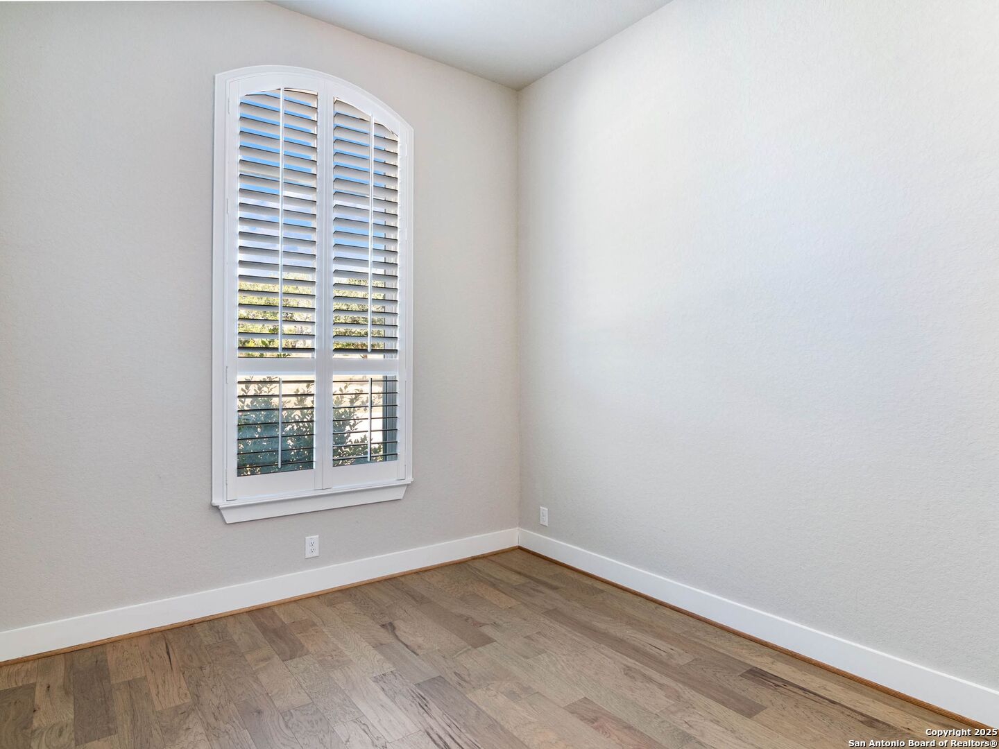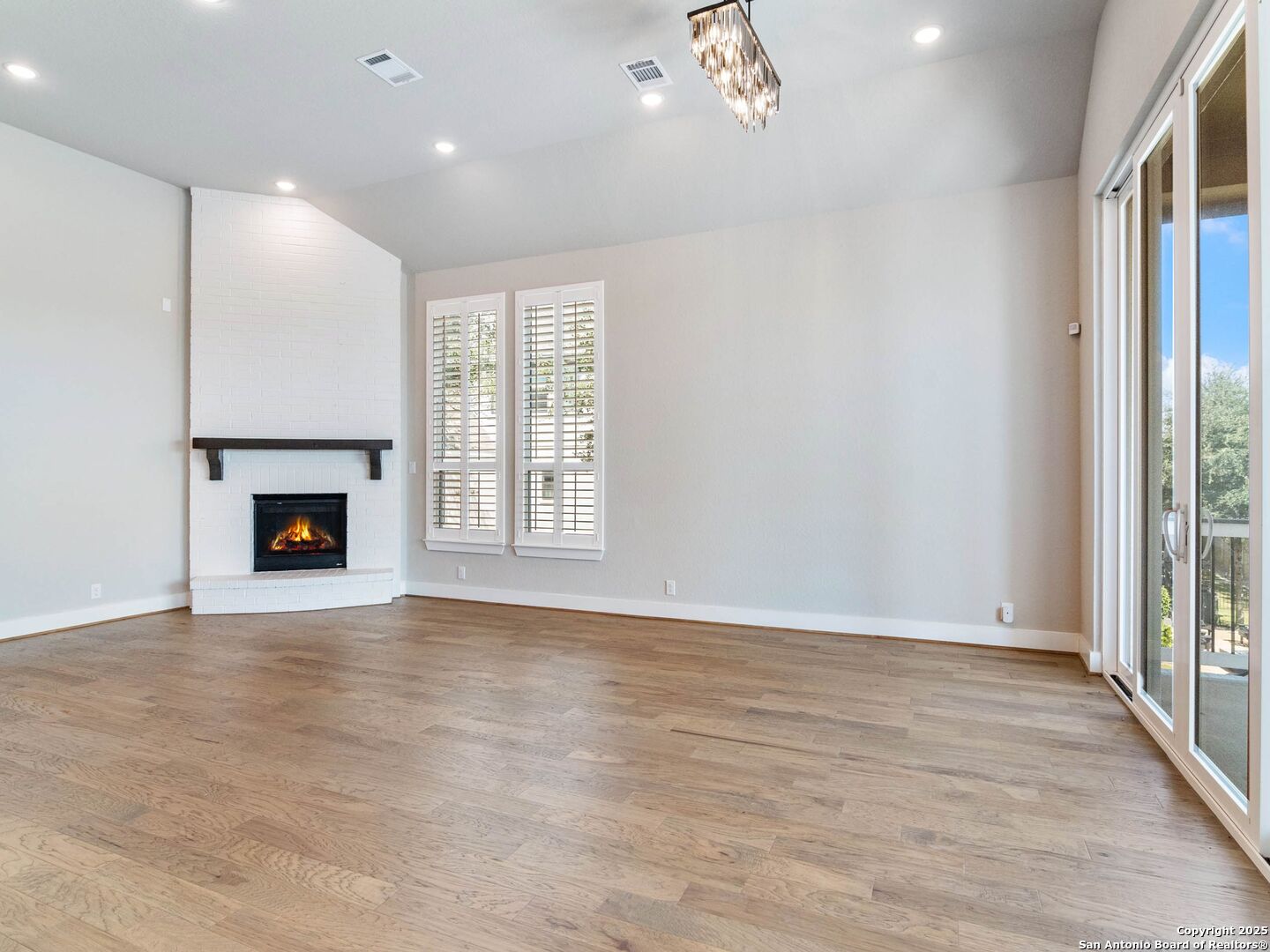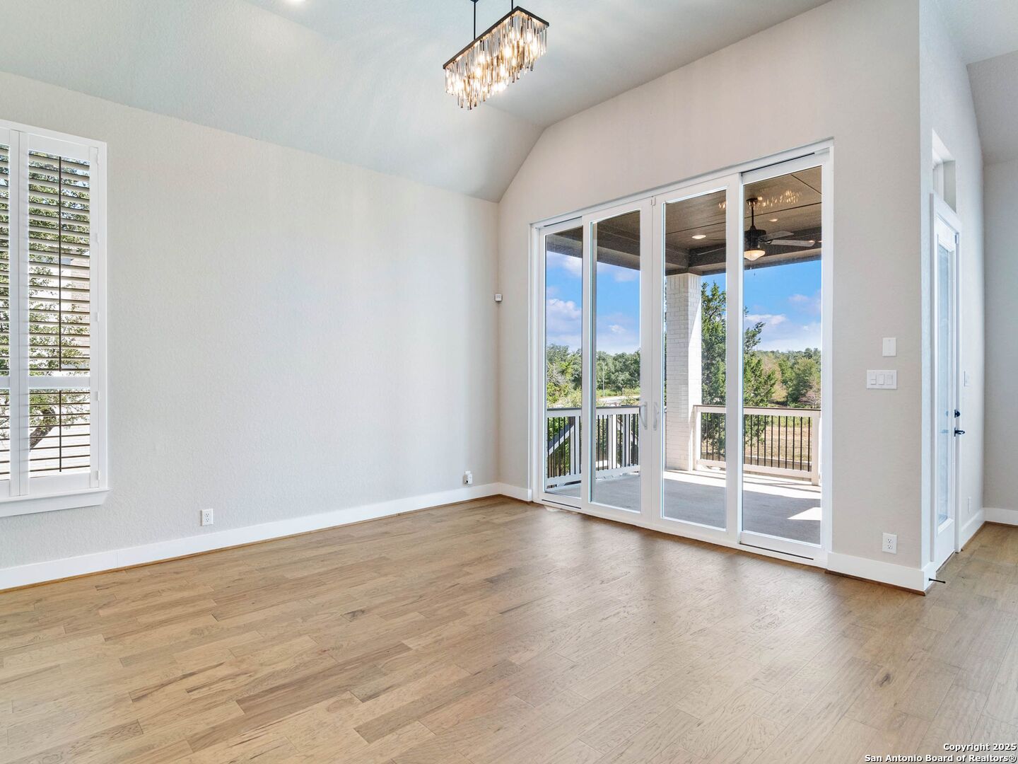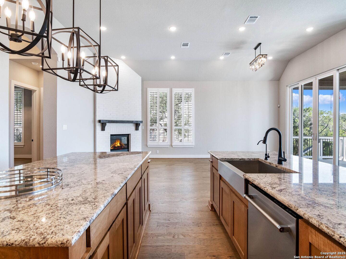 MOVE IN READY! NEW TREES (WAX MYRTLE) PLANTED ACROSS BACK OF PROPERTY - ONE STORY dream home with just about every upgrade you can think of! Premium painted brick elevation, double door front entry, hardwood and tile floors throughout, arched/vaulted ceilings, plantation shutters, custom black lighting fixtures, professional landscaping, etc. The kitchen offers custom cabinetry, a large granite island with built-in stainless-steel appliances, 6 burner commercial gas cooktop, double ovens. The second pantry has been converted to a beverage room complete with a KitchenAid beverage refrigerator, wine bottle holders and additional cabinet storage. The open floor plan allows a natural flow from the kitchen to a comfortable family room / gathering room with a gas fireplace. An Owner suite includes a sitting area, and spa bath - dual vanities, vessel tub, walk-in shower, huge walk-in closet! The secondary rooms are generous in size. Separate Study and game room complete the interior extraordinary package. Outdoor living space includes a custom deck for extended entertaining space. Plenty of room to add your own pool. Enhanced laundry room plus craft room, a must see!! 3 car garage. No steps into the home. This beautiful home has been thoughtfully designed to ensure comfort and convenience. It's perfect for those seeking luxury, comfort with a hill country setting with the conveniences of the city. Don't miss out on this beautiful home! Schedule your showing today. Hwy 281 is just minutes from the community. Schools (Piper elementary TO high school), restaurants, shopping and the Stone Oak HEB grocery are within a 5-minute drive! NO MUD OR CITY TAX!