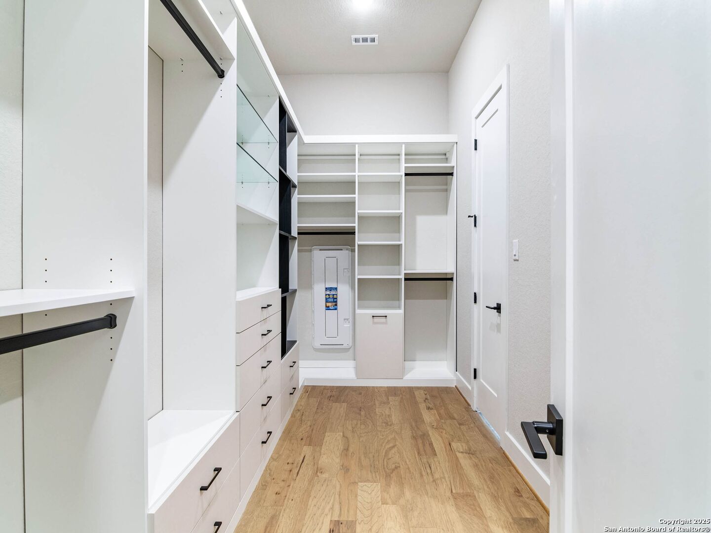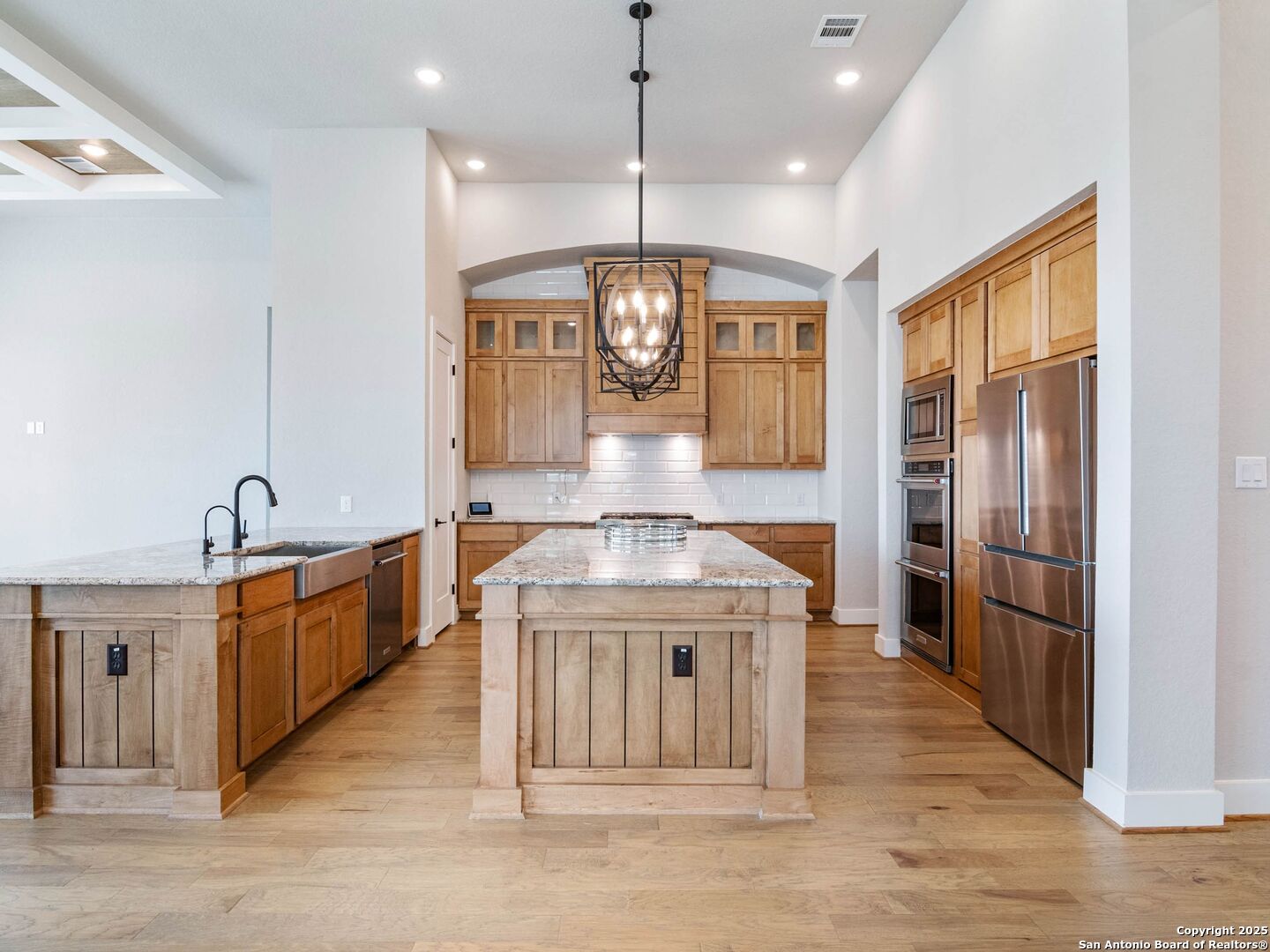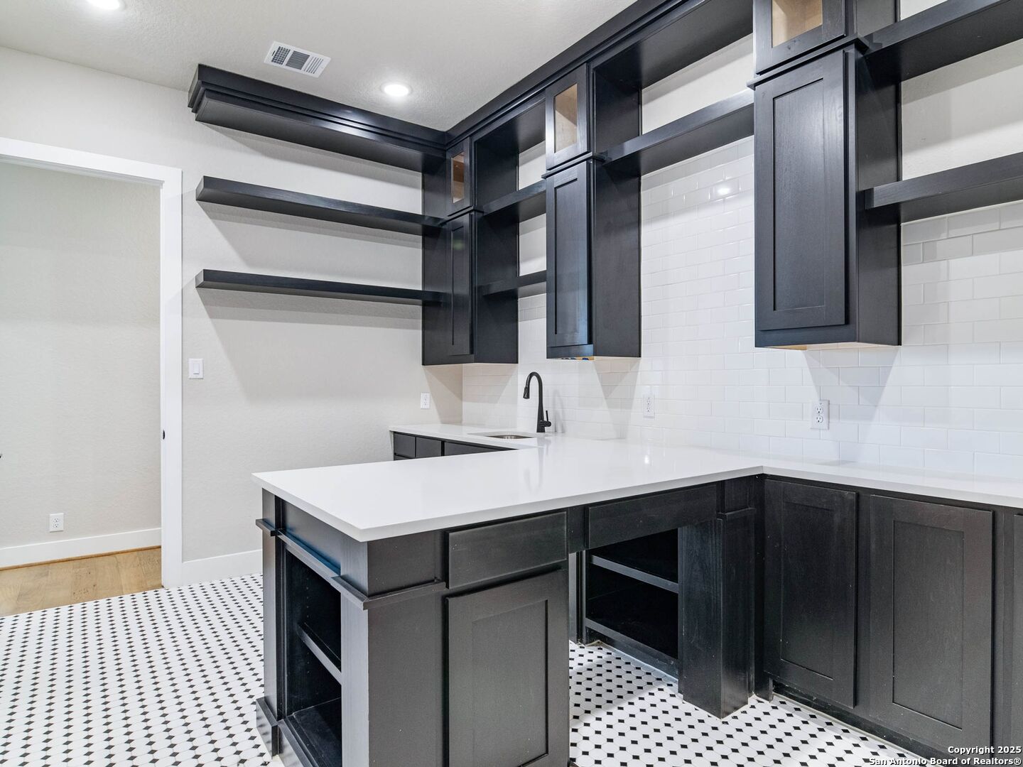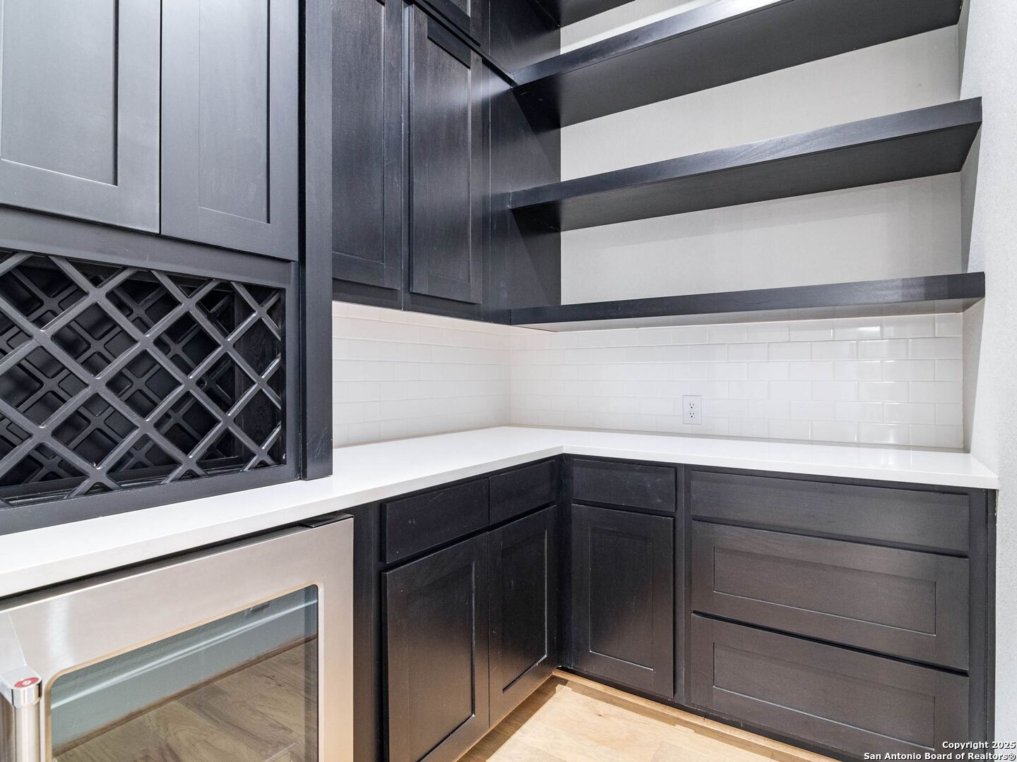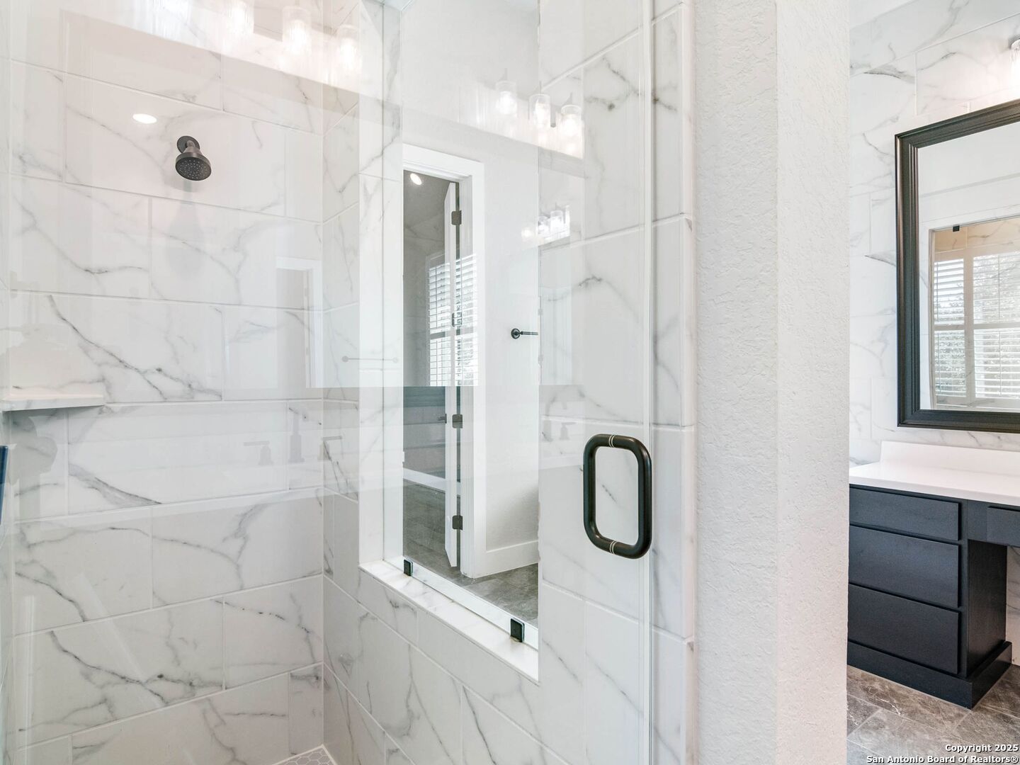 MOVE IN READY! NEW TREES (WAX MYRTLE) PLANTED ACROSS BACK OF PROPERTY - ONE STORY dream home with just about every upgrade you can think of! Premium painted brick elevation, double door front entry, hardwood and tile floors throughout, arched/vaulted ceilings, plantation shutters, custom black lighting fixtures, professional landscaping, etc. The kitchen offers custom cabinetry, a large granite island with built-in stainless-steel appliances, 6 burner commercial gas cooktop, double ovens. The second pantry has been converted to a beverage room complete with a KitchenAid beverage refrigerator, wine bottle holders and additional cabinet storage. The open floor plan allows a natural flow from the kitchen to a comfortable family room / gathering room with a gas fireplace. An Owner suite includes a sitting area, and spa bath - dual vanities, vessel tub, walk-in shower, huge walk-in closet! The secondary rooms are generous in size. Separate Study and game room complete the interior extraordinary package. Outdoor living space includes a custom deck for extended entertaining space. Plenty of room to add your own pool. Enhanced laundry room plus craft room, a must see!! 3 car garage. No steps into the home. This beautiful home has been thoughtfully designed to ensure comfort and convenience. It's perfect for those seeking luxury, comfort with a hill country setting with the conveniences of the city. Don't miss out on this beautiful home! Schedule your showing today. Hwy 281 is just minutes from the community. Schools (Piper elementary TO high school), restaurants, shopping and the Stone Oak HEB grocery are within a 5-minute drive! NO MUD OR CITY TAX!