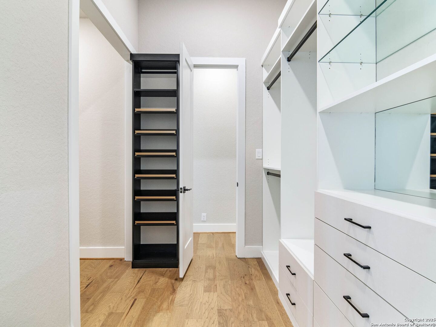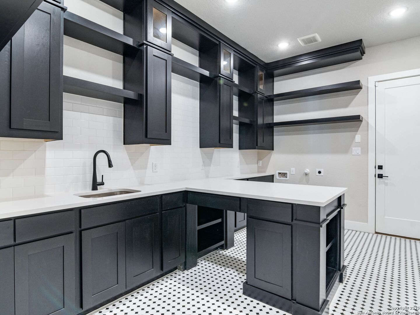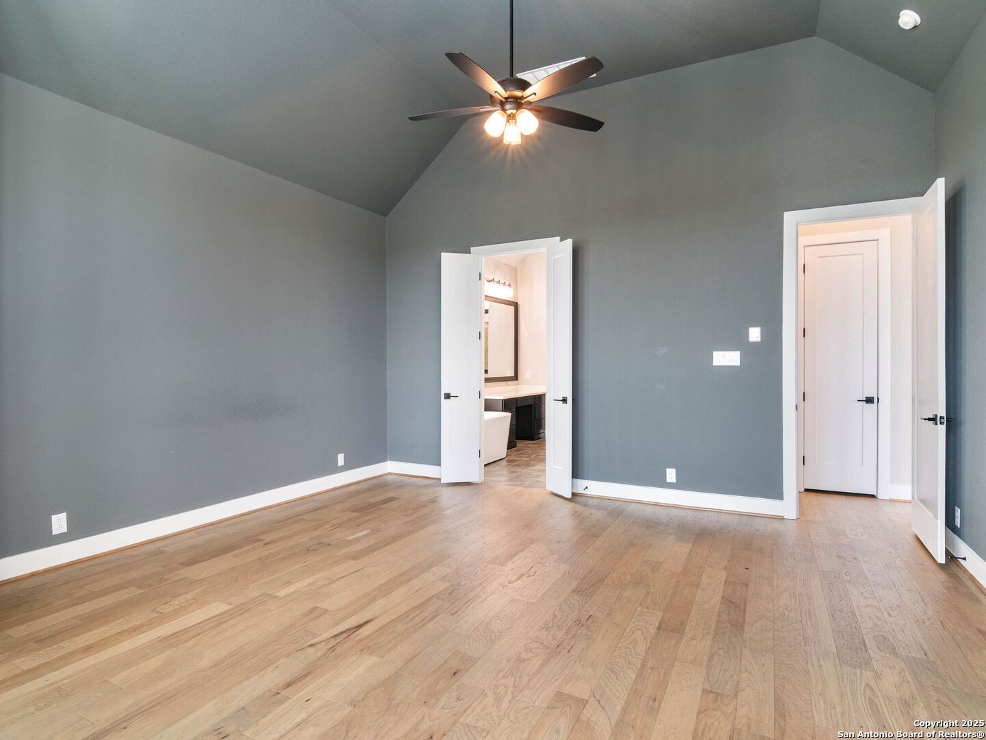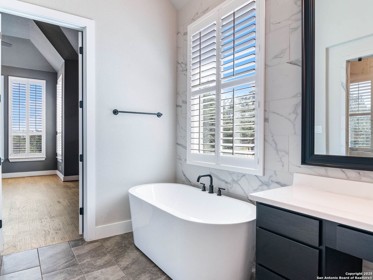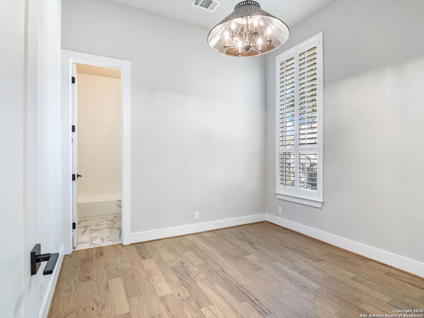 MOVE IN READY! NEW TREES (WAX MYRTLE) PLANTED ACROSS BACK OF PROPERTY - ONE STORY dream home with just about every upgrade you can think of! Premium painted brick elevation, double door front entry, hardwood and tile floors throughout, arched/vaulted ceilings, plantation shutters, custom black lighting fixtures, professional landscaping, etc. The kitchen offers custom cabinetry, a large granite island with built-in stainless-steel appliances, 6 burner commercial gas cooktop, double ovens. The second pantry has been converted to a beverage room complete with a KitchenAid beverage refrigerator, wine bottle holders and additional cabinet storage. The open floor plan allows a natural flow from the kitchen to a comfortable family room / gathering room with a gas fireplace. An Owner suite includes a sitting area, and spa bath - dual vanities, vessel tub, walk-in shower, huge walk-in closet! The secondary rooms are generous in size. Separate Study and game room complete the interior extraordinary package. Outdoor living space includes a custom deck for extended entertaining space. Plenty of room to add your own pool. Enhanced laundry room plus craft room, a must see!! 3 car garage. No steps into the home. This beautiful home has been thoughtfully designed to ensure comfort and convenience. It's perfect for those seeking luxury, comfort with a hill country setting with the conveniences of the city. Don't miss out on this beautiful home! Schedule your showing today. Hwy 281 is just minutes from the community. Schools (Piper elementary TO high school), restaurants, shopping and the Stone Oak HEB grocery are within a 5-minute drive! NO MUD OR CITY TAX!