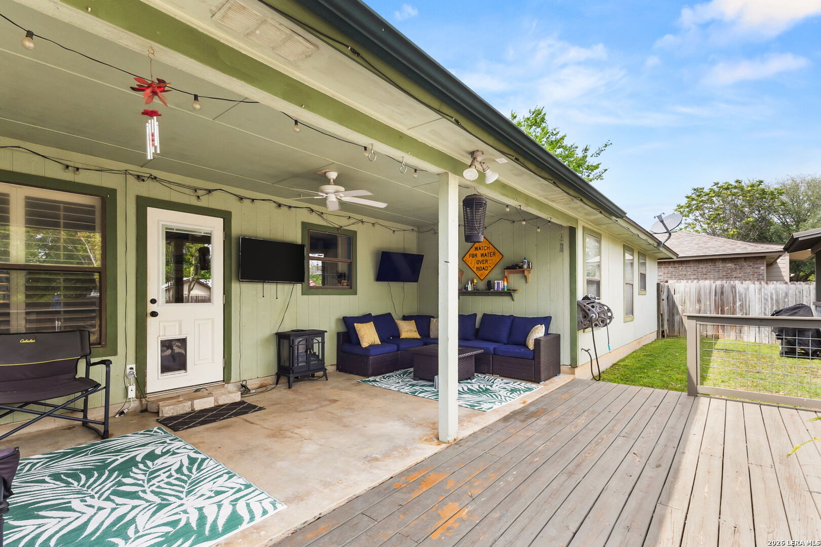 Welcome to this charming 3-bedroom, 2-bath home ideally located close to town and near the Guadalupe river-without the worry of being in the floodplain. You'll love the beautiful high ceilings, crown molding and functional split floorplan that offers both openness and privacy. The spacious primary suite features an oversized bedroom, his-and-hers walk-in closets, and a nicely updated walk-in shower. Step outside to a large backyard perfect for relaxing or entertaining, complete with a covered BBQ station and a cozy back porch. With a newer AC and roof already in place, this home offers comfort, convenience, and peace of mind. Don't miss it!