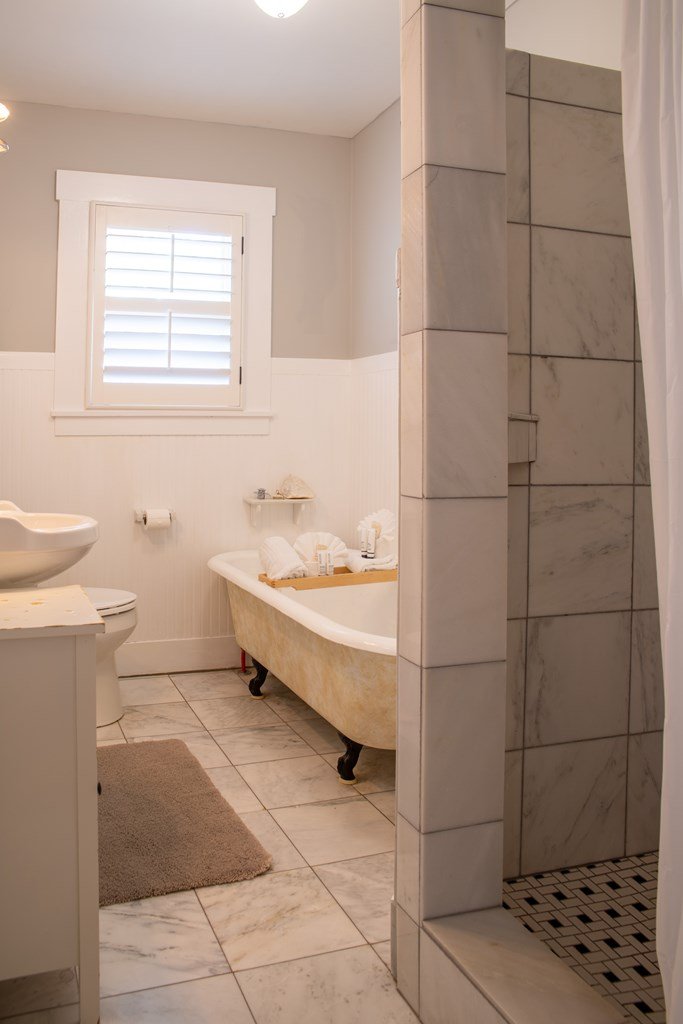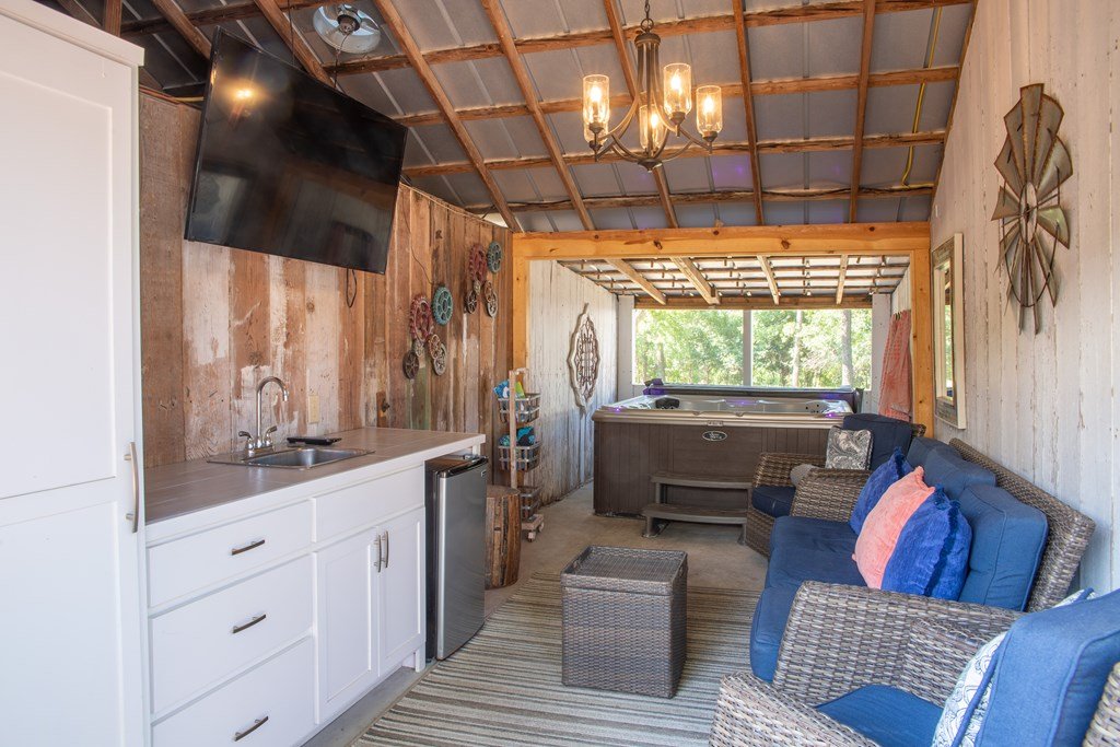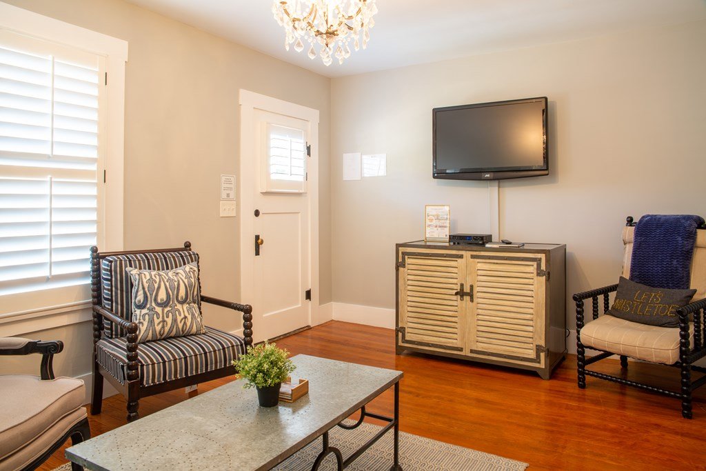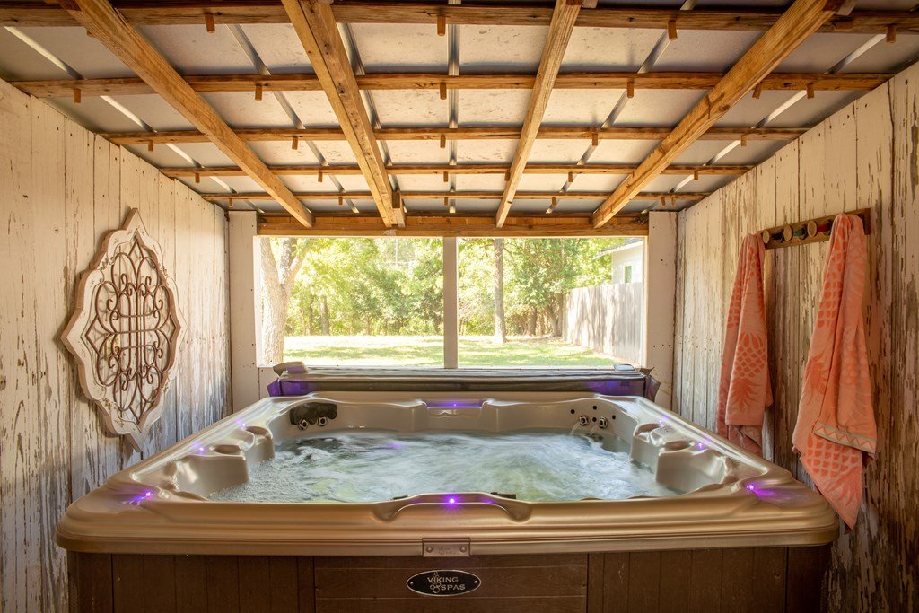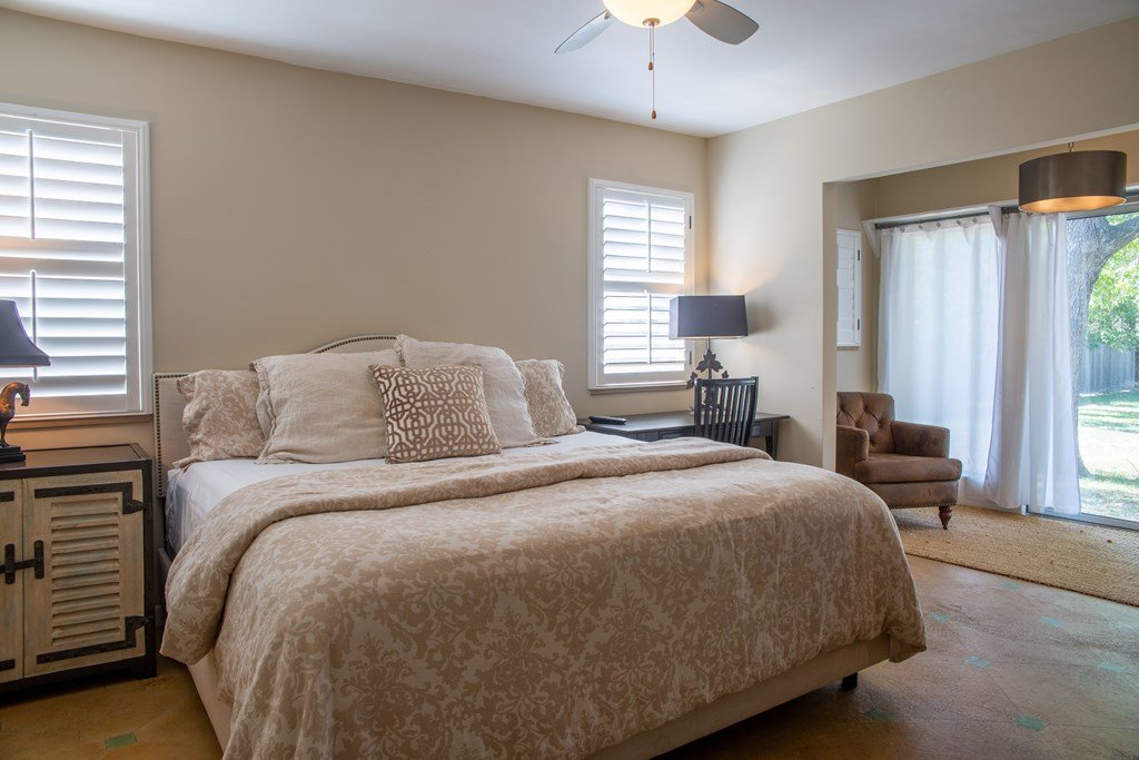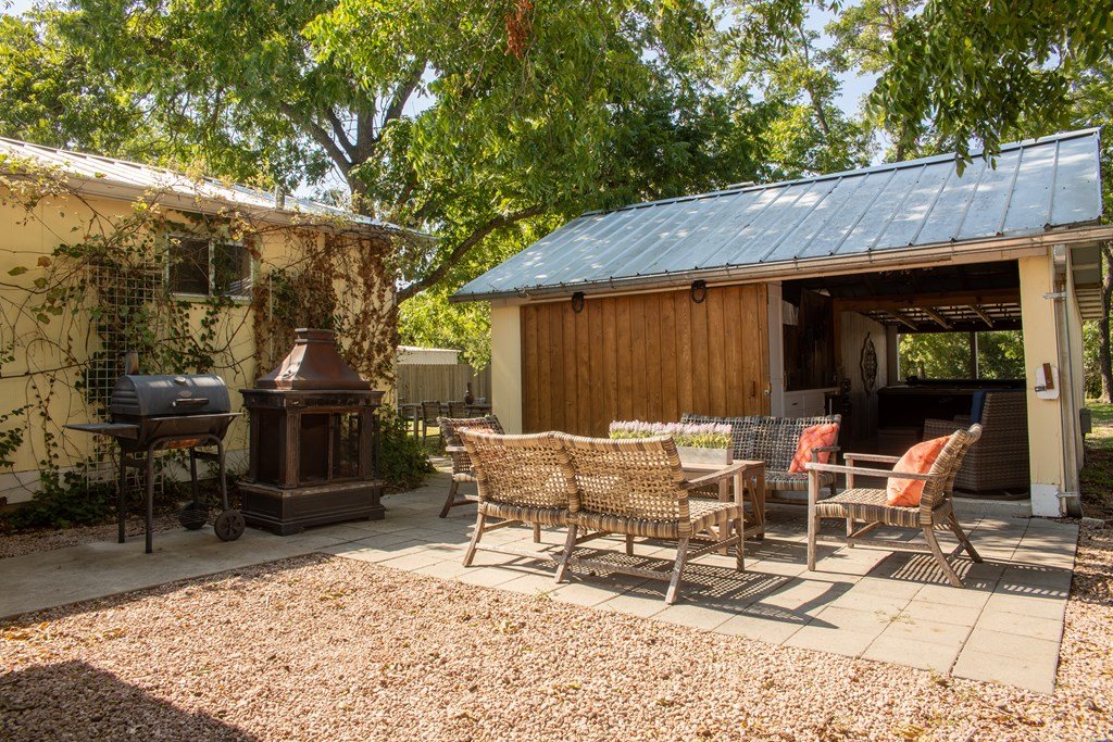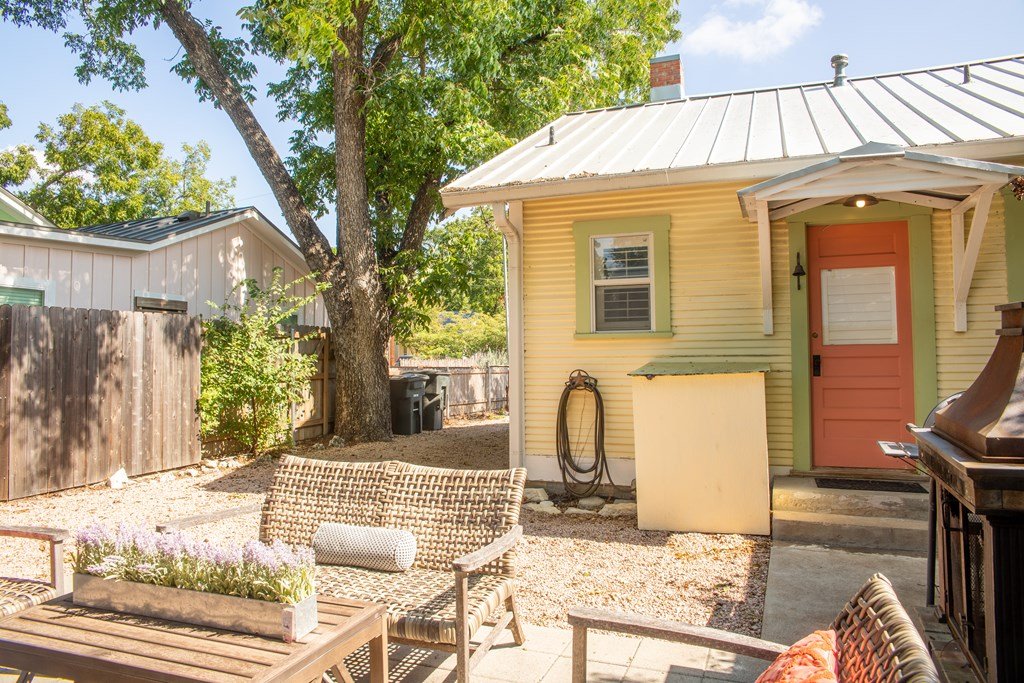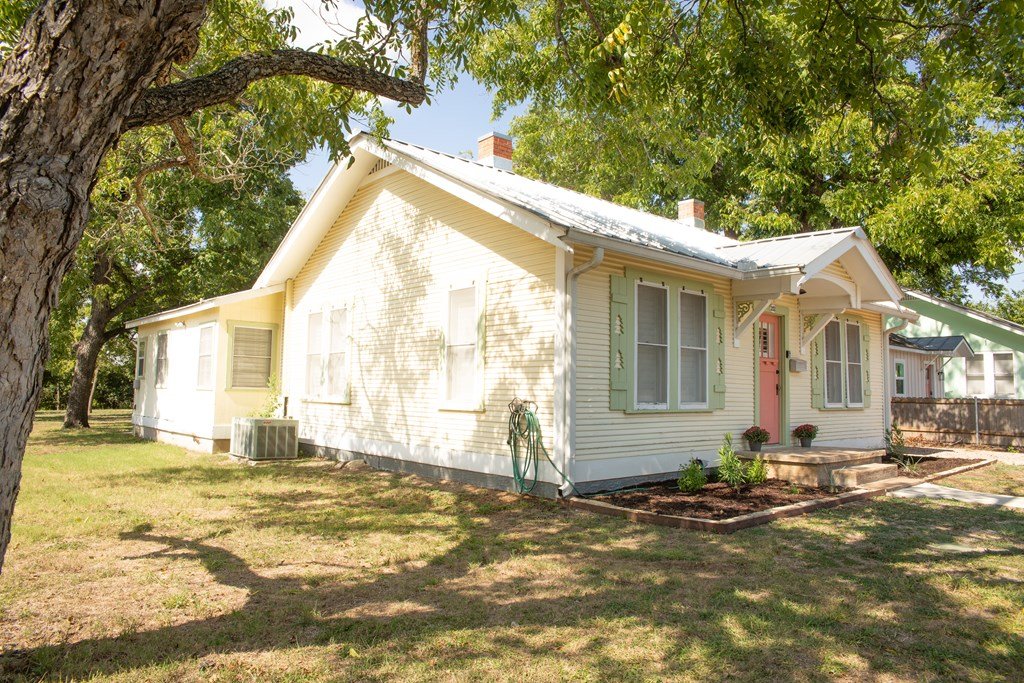 The "Cottage on Mistletoe" is the quintessential Fredericksburg B&B! Selling turn-key with future bookings, this proven income-producing property has over 160 ratings totaling almost 4.9 STARS! R-2 zoning, huge .38 acre lot backing up to Town Creek. Only 2 blocks to Main Street, making an easy walk to popular places like Hondo's and Crossroads Saloon. Built in 1940, this historic property has modern day finishes while still retaining its original charm. High-end finishes including granite countertops, marble backsplash, stainless appliances, heated bathroom floor, clawfoot tub, and original pine floor! The "party barn" in the back has hot tub, tv, chairs, and fridge to enjoy your favorite football games. Laundry room is outside (perfect for B&Bs), with a beautiful pecan-studded backyard perfect for entertaining. Come see this precious piece of Fredericksburg history!