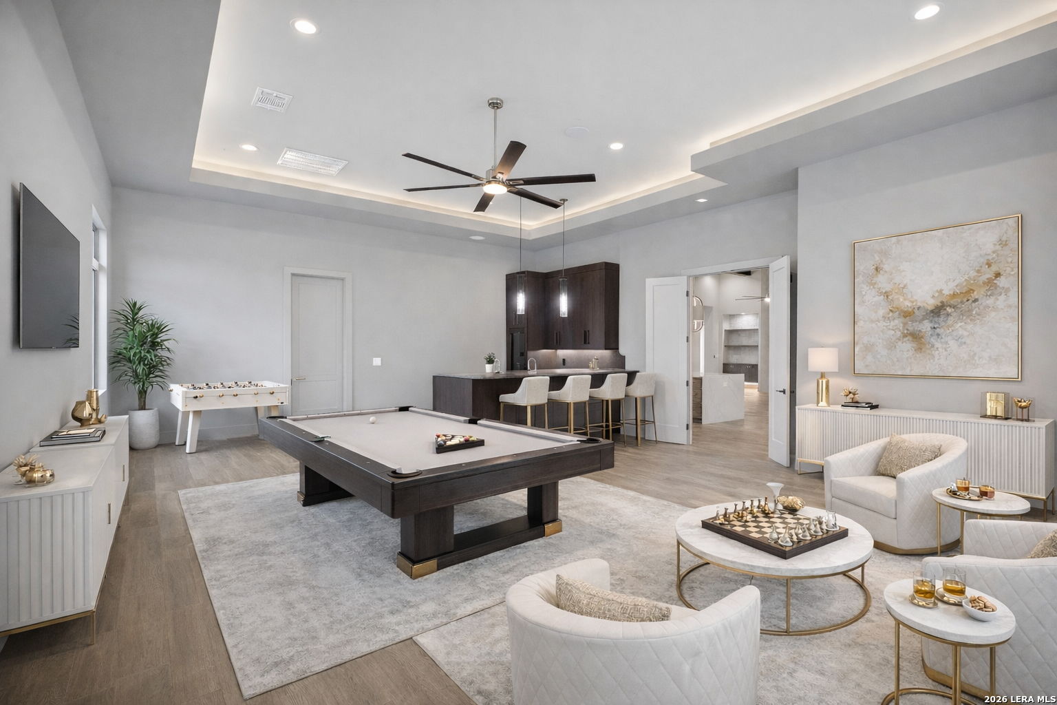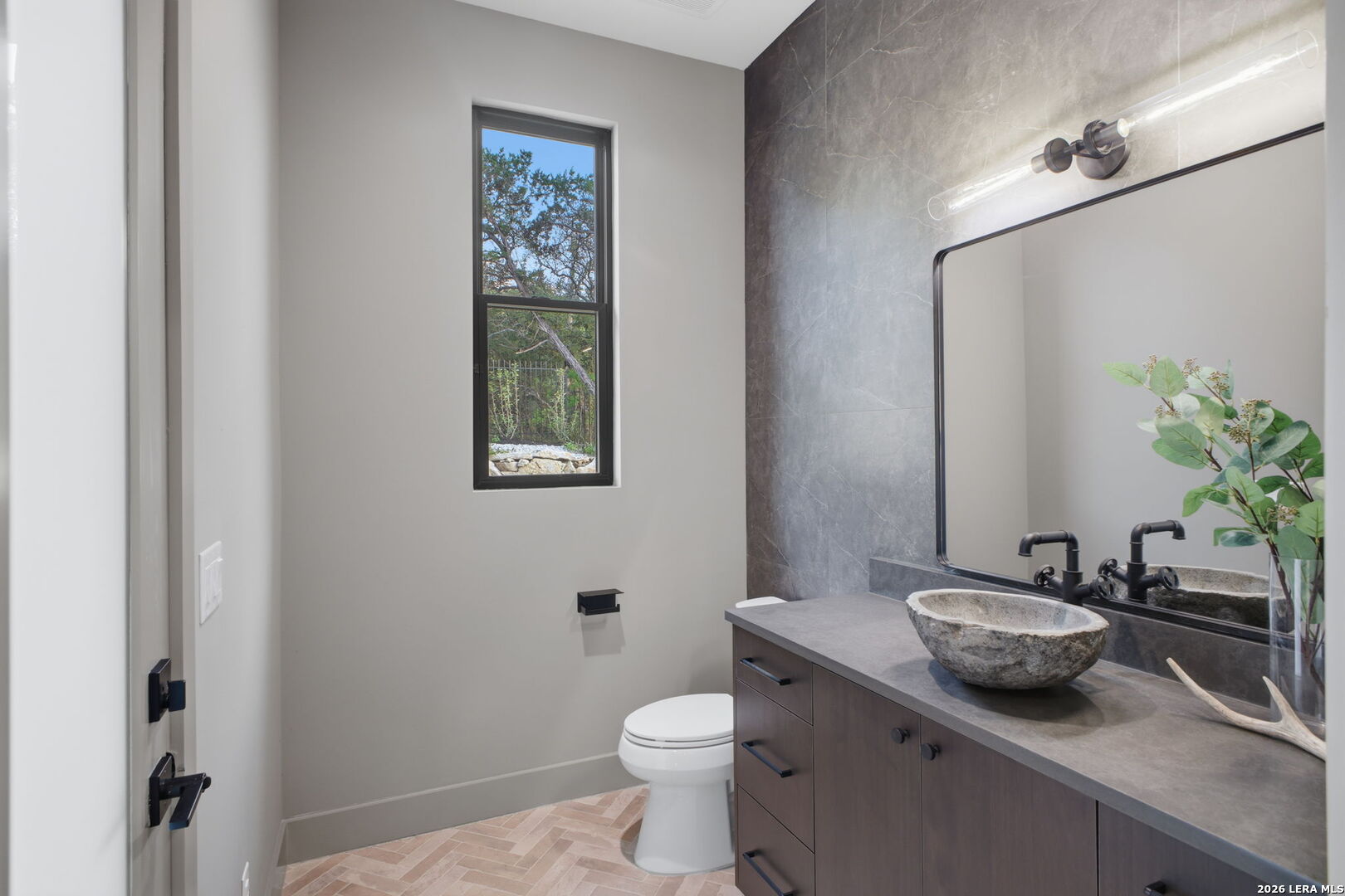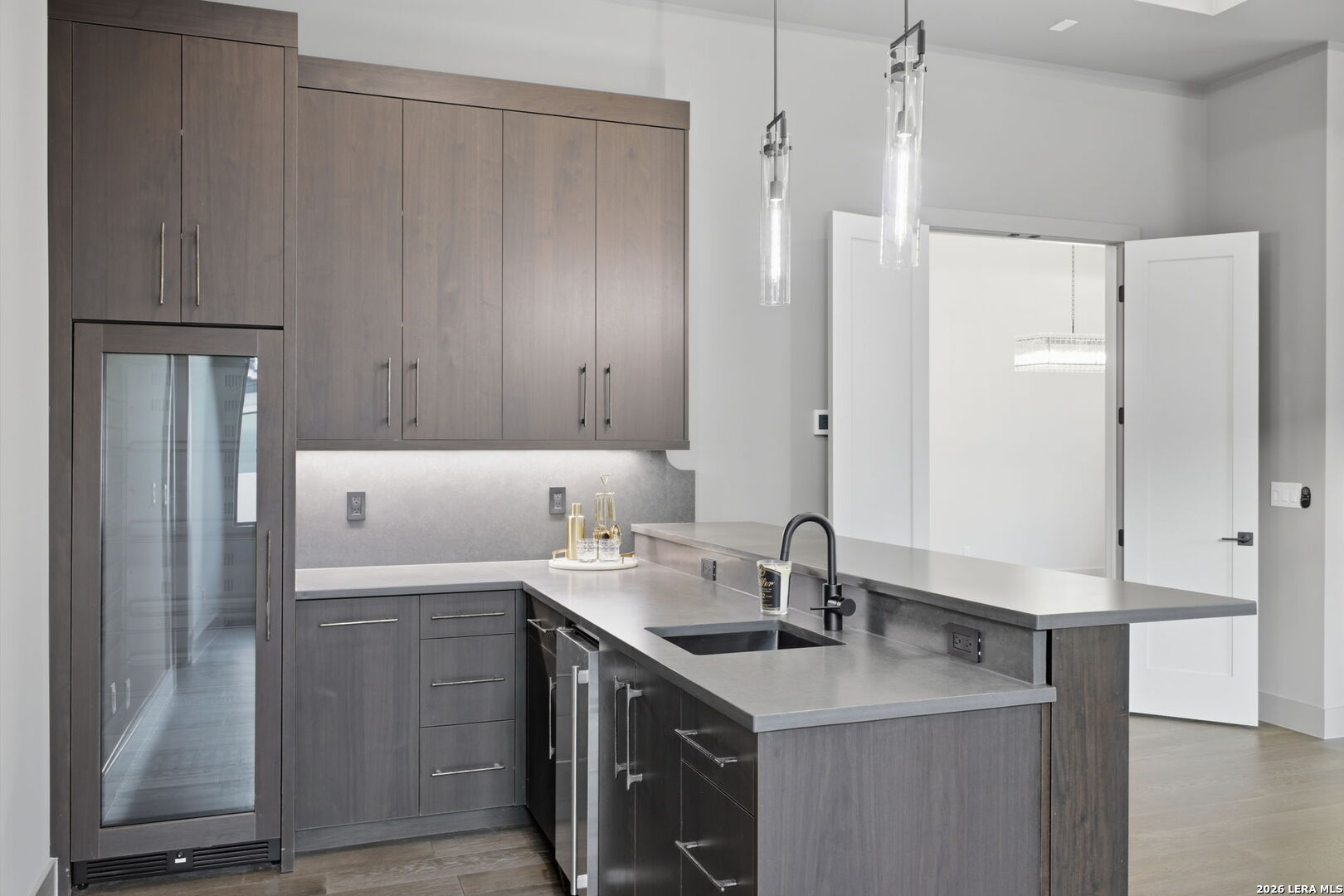 Welcome to this new one-story Modern Transitional estate which embodies show stopping detail and sophistication within The Dominion. The over 5,200 sq/ft home features unsurpassed craftsmanship and design elements that showcase the open floor plan seamlessly integrating indoor and outdoor living. The chef's kitchen features top of the line appliances, an expansive custom island that flows into the living/dining room with custom architectural ceiling detail, a dramatic fireplace and large dining room area. 5 bedrooms all with on suite bathrooms. Oversized secondary game room or living room with outside access to pool. 4 car garage with tons of built in storage.