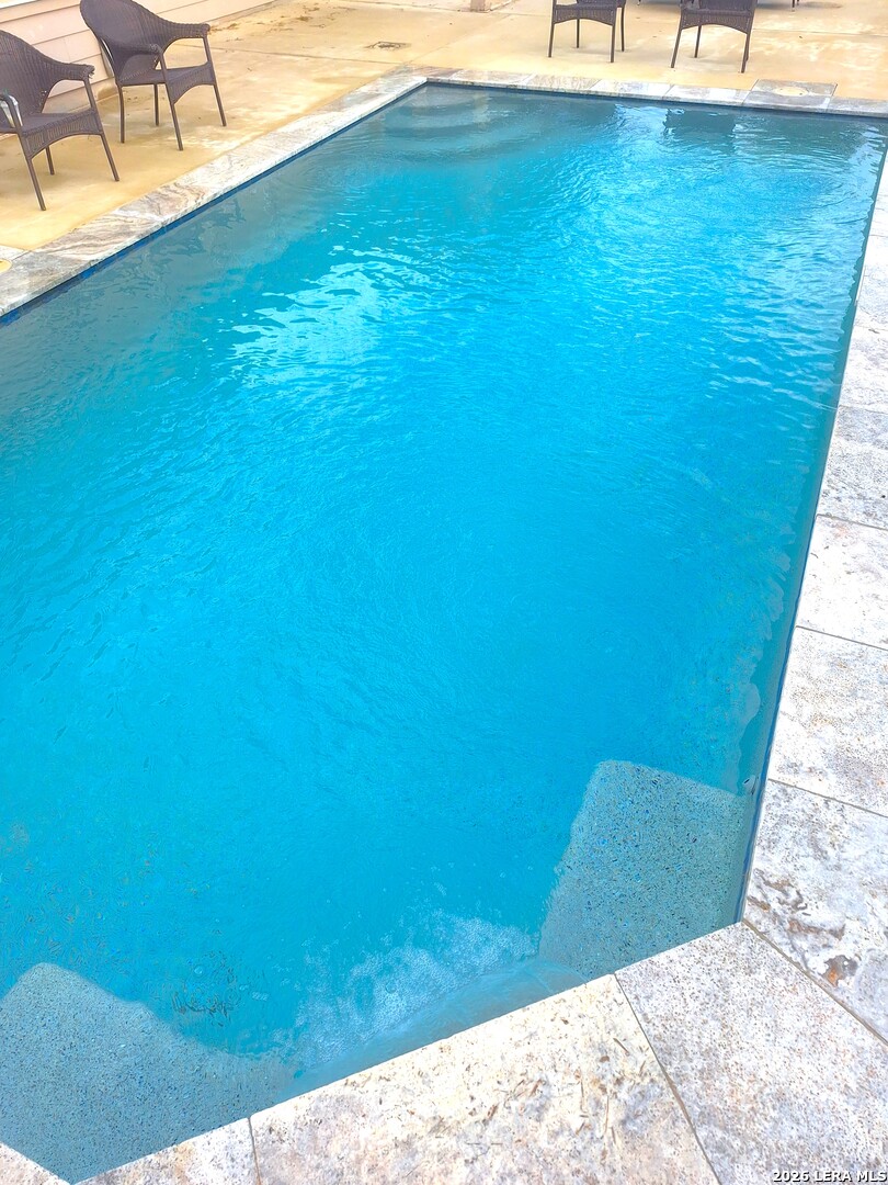 Fabulous outdoor POOL installed 2022 with adjoining extended patio. Updated and beautiful. Spacious 4 bedrooms plus an office, 2 living areas. Kitchen features stainless appliances, granite counters, tile backsplash, and a breakfast bar. High ceilings. Fabulous dual shower head spa-like shower. Fresh paint. New carpet in the bedrooms. 2 inch blinds are included. Gutters. Beautiful stone and stucco facade. New AC and heat system 2026.