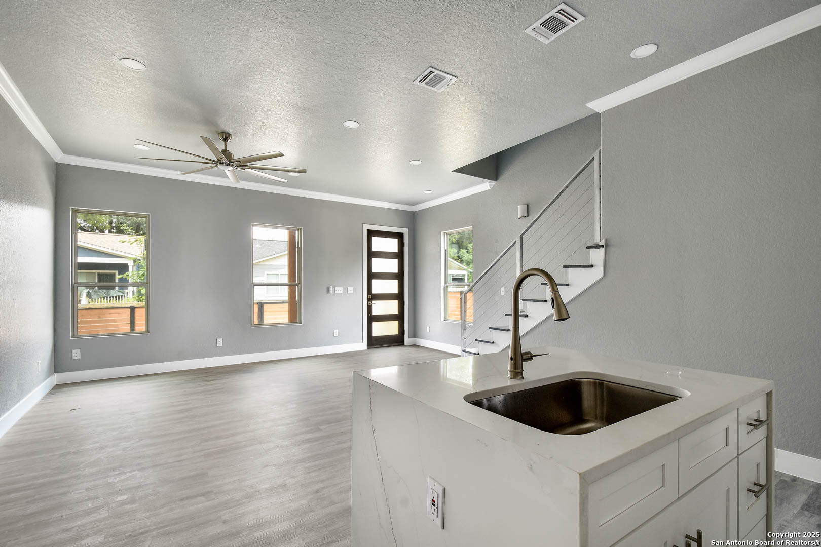 This brand-new two-story home marries modern architecture with upscale finishes. Offering three bedrooms, two and a half baths, and a dedicated study / game room, the open floor plan caters to both discerning homeowners and savvy investors. Features include stainless-steel appliances, high end cabinetry, solid surface countertops, a tankless water heater, designer fixtures, ample parking, and a private fenced yard for effortless living. Located just minutes from downtown's iconic restaurants, live music venues, and entertainment hotspots, the property delivers outstanding San Antonio living.