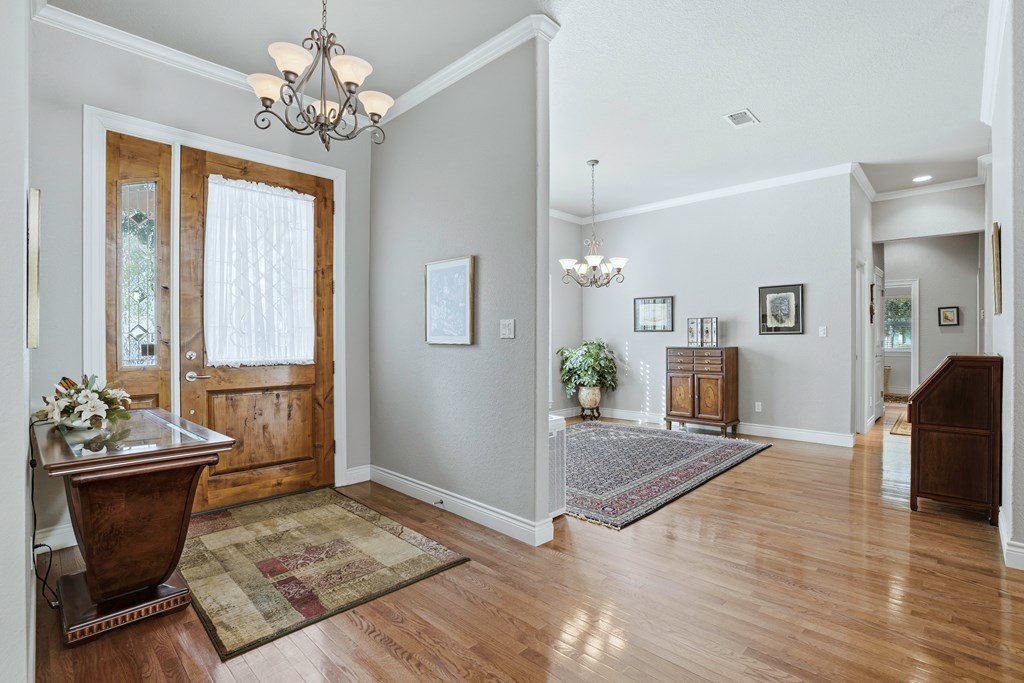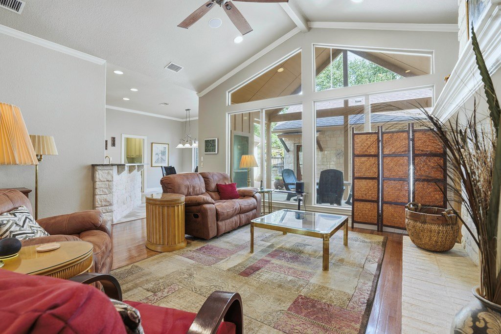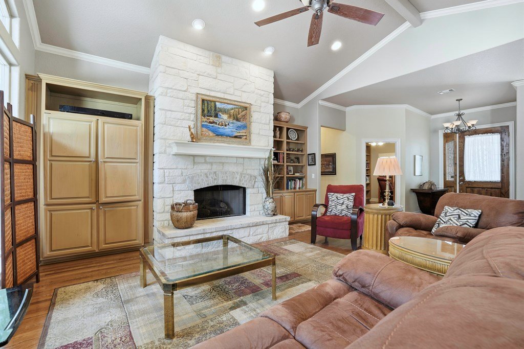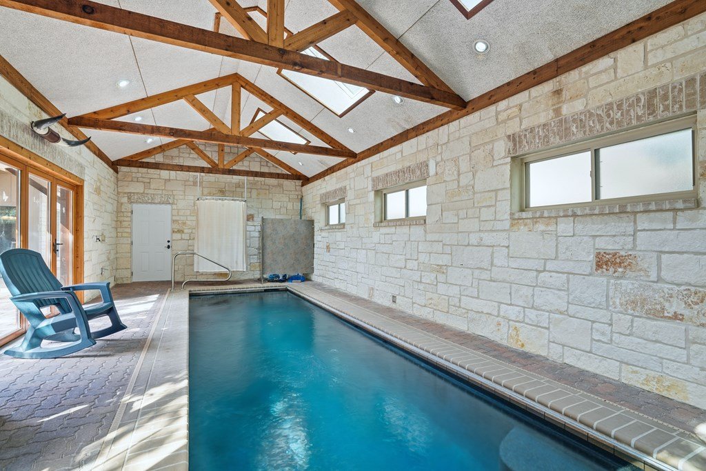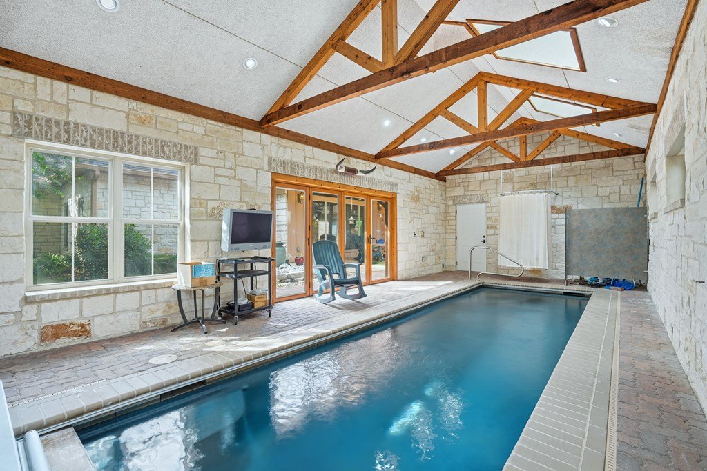 Welcome to this charming partial stone home nestled on a beautifully landscaped, tree-filled corner lot. With the garage conveniently located on the side street, this residence offers both curb appeal and functionality. Inside, you'll find 3 spacious bedrooms and 2 well-appointed bathrooms. The inviting living area features a stunning rock fireplace with a gas insert. perfect for cozy evenings. The large kitchen comes equipped with modern appliances, a generous pantry, and a breakfast area that overlooks the patio and a luxurious pool house. The pool house includes a long swimming pool, a shower, and a relaxing massage area- ideal for unwinding or entertaining. The master suite is a true retreat, boasting a large bedroom, walk-in closet, and a spa-like bathroom with a walk-in tub and a beautifully tiled shower. Two additional bedrooms offer ample space and large closets, complemented by two more spacious bathrooms. Additional highlights include a dedicated office space and a formal dining room, making this home perfect for both work and entertaining. This is a must-see property that combines comfort, style, and exceptional amenities.