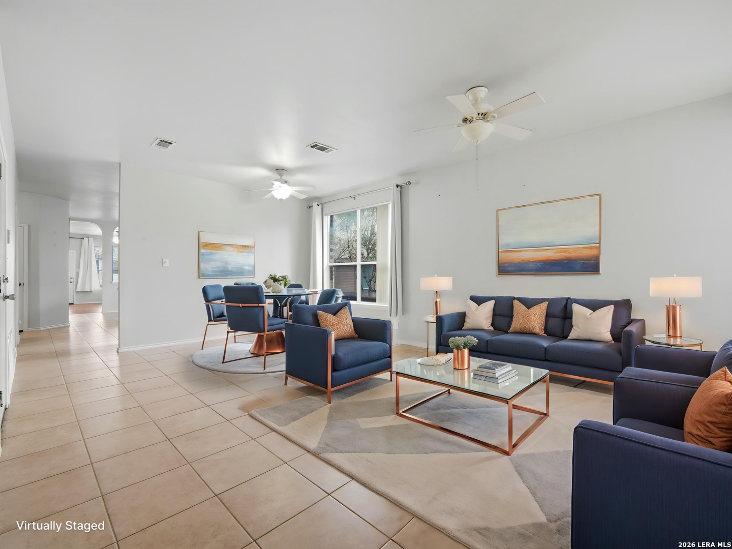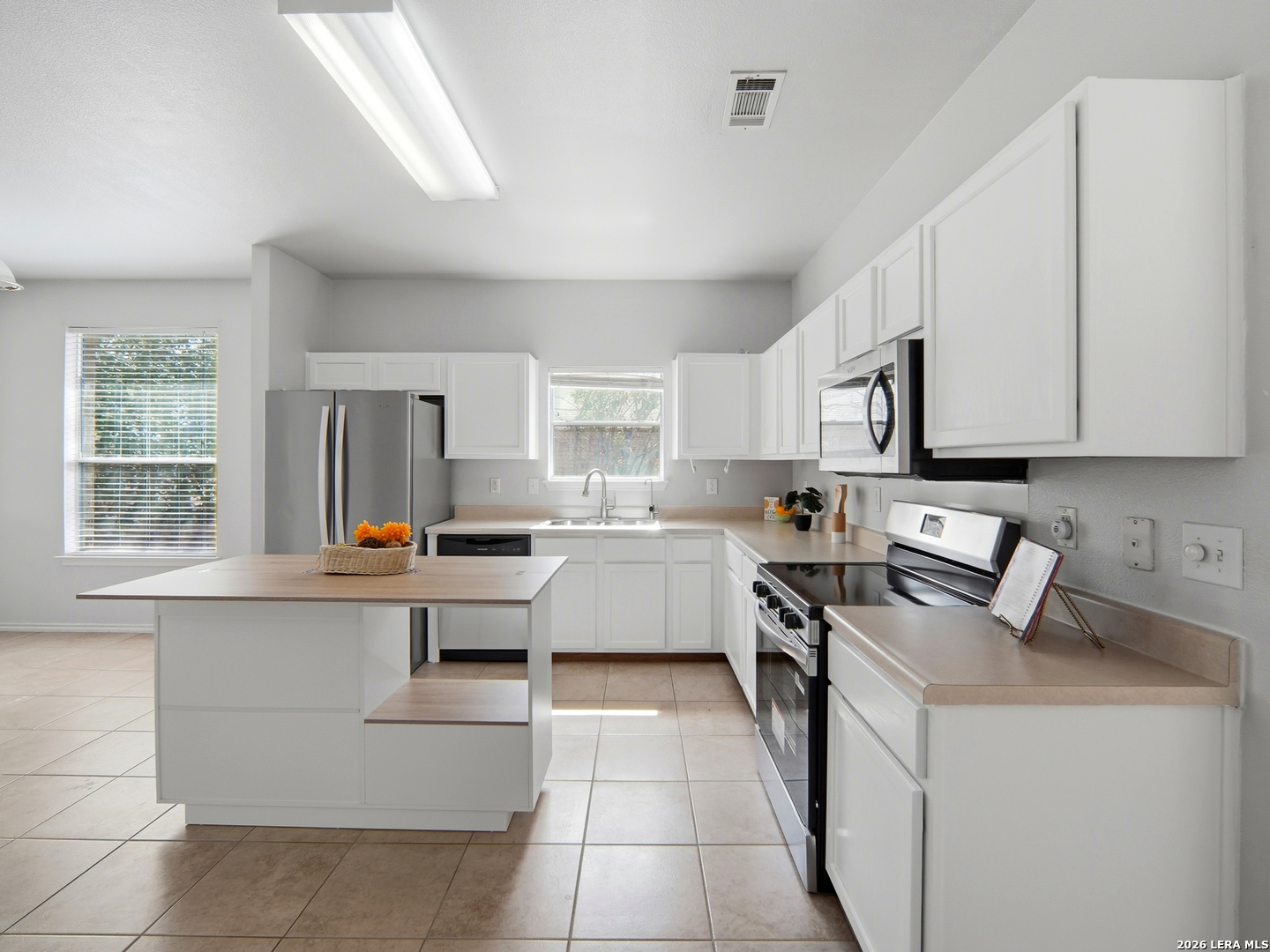 Welcome to this charming one-story home located in the desirable Encino Mesa community surrounded by mature trees. Boasting three spacious bedrooms, two full baths, this residence offers ample space for comfortable living. Enjoy the natural color palette throughout the home. The open-concept floor plan offers comfortable everyday living and easy entertaining. The chef of the house will love the spacious kitchen with plenty of cabinet and counter space, new dishwasher and new stove. Tile flooring throughout adds durability and style, and the home is truly move-in ready. The private primary suite includes a soaking tub, separate shower, and walk-in closet. This one level home with no steps, offers the perfect blend of convenience and tranquility. Don't miss out on the opportunity to make this gem your home!