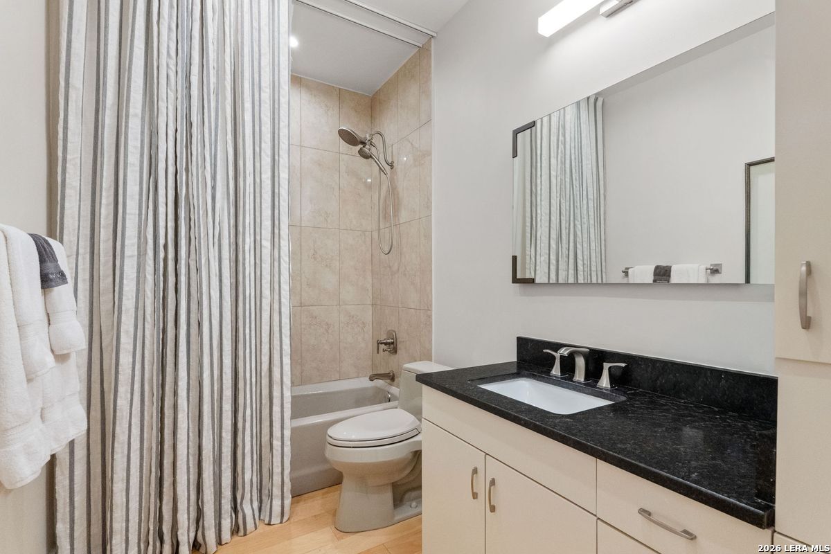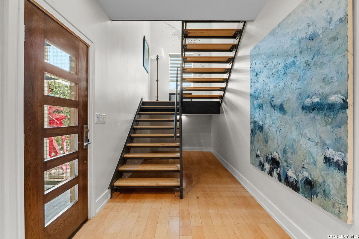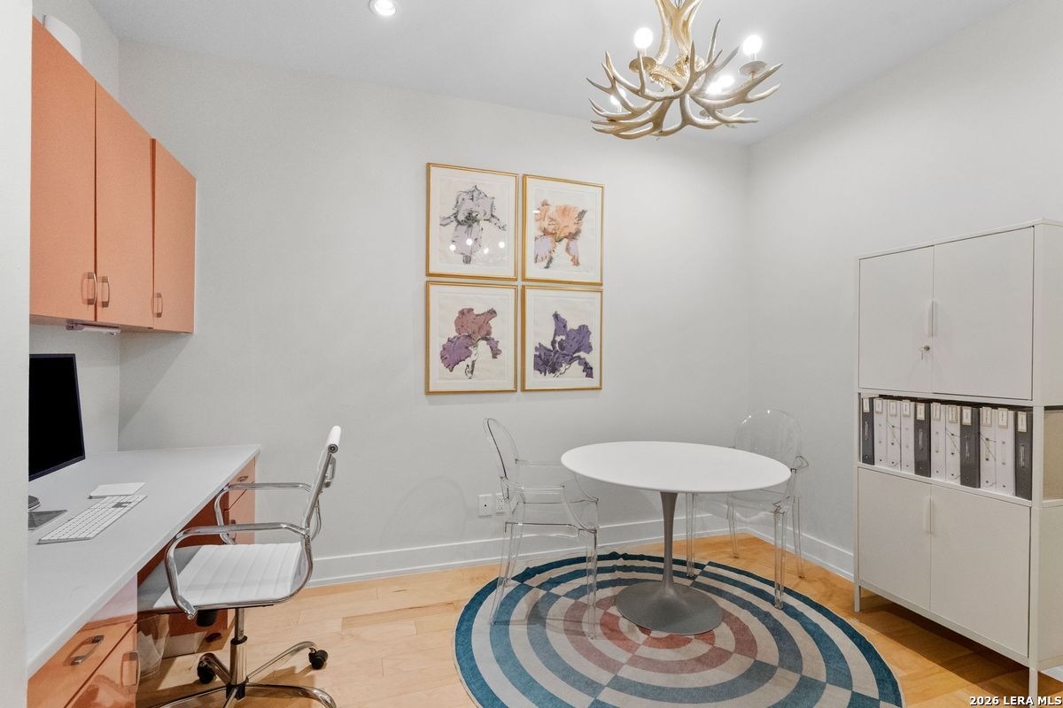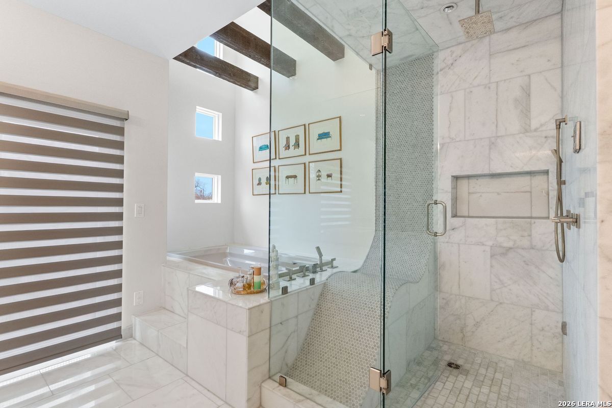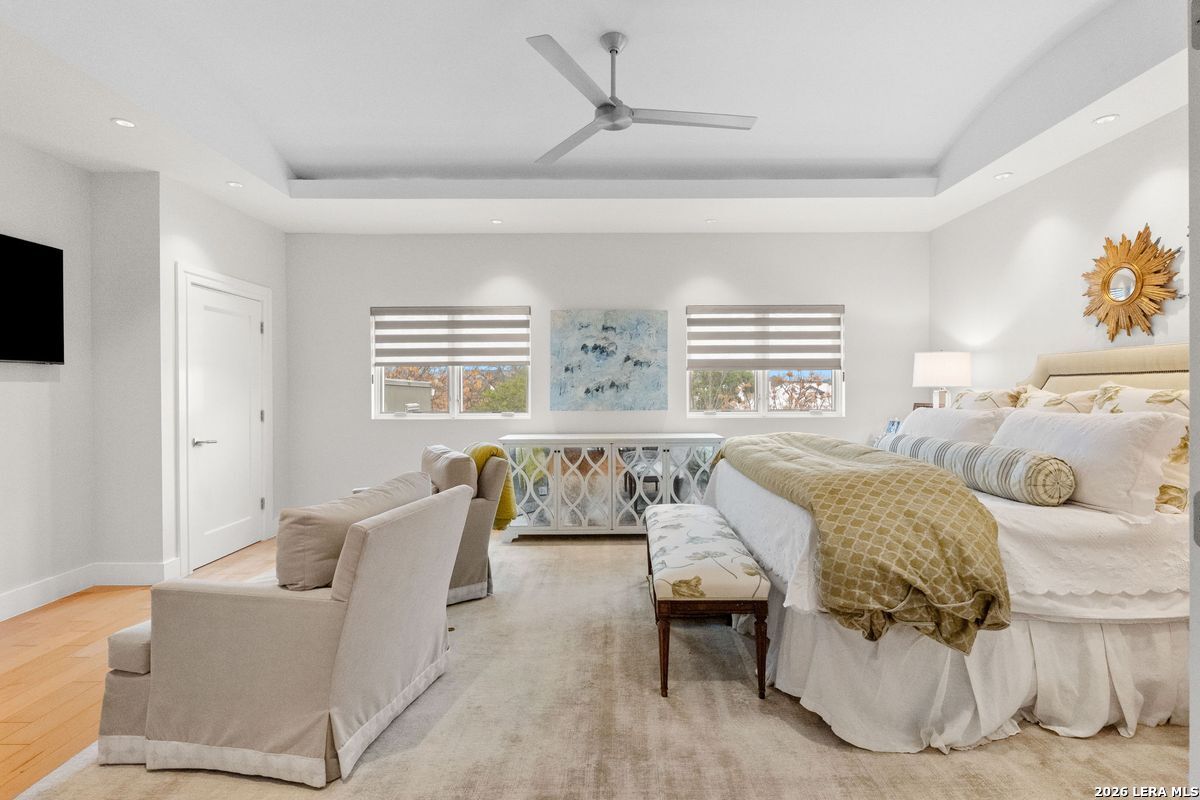 Welcome to refined, lock-and-leave living in this stunning three-story contemporary townhome condominium, where sophisticated design meets everyday functionality. Thoughtfully appointed with high-end finishes and modern conveniences, this residence offers an exceptional luxury lifestyle in Olmos Park. An elevator provides effortless access to all three levels. The main living space is designed for both entertaining and daily living, featuring an open-concept layout that seamlessly connects the kitchen, dining, and family room. At the center of the home, the chef's kitchen impresses with premium Viking appliances, gas cooking, a wine refrigerator, and sleek black granite countertops. Expansive double sliding doors open to an incredible screened-in porch, creating the perfect indoor-outdoor living experience. This inviting space is ideal for al fresco dining, morning coffee, or relaxing while enjoying fresh air year-round, all while filling the home with beautiful natural light. The residence offers three spacious bedrooms, each with its own private bathroom. The tranquil primary suite is a private retreat featuring a wet bar with refrigerator, a generous walk-in closet, and a recently renovated spa-inspired bathroom complete with a whirlpool tub, walk-in steam shower, dual vanities, and designer lighting. Additional highlights include a dedicated home office ideal for remote work, an expansive laundry room with an adjoining walk-in storage closet-features rarely found in townhome living-and an enclosed turfed yard perfect for pets. An oversized two-car attached garage provides ample parking and storage. Located within the prestigious Olmos Park community and the highly acclaimed Alamo Heights School District, this exceptional home offers walkable access to local shops, restaurants, and coffee bars while delivering the comfort, convenience, and luxury of modern urban living.
