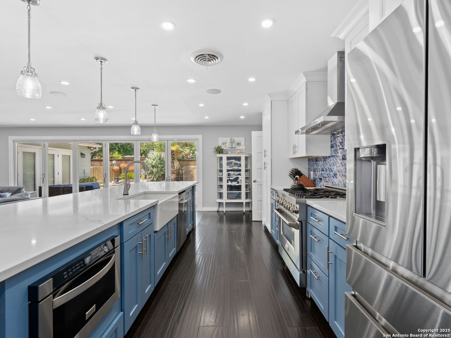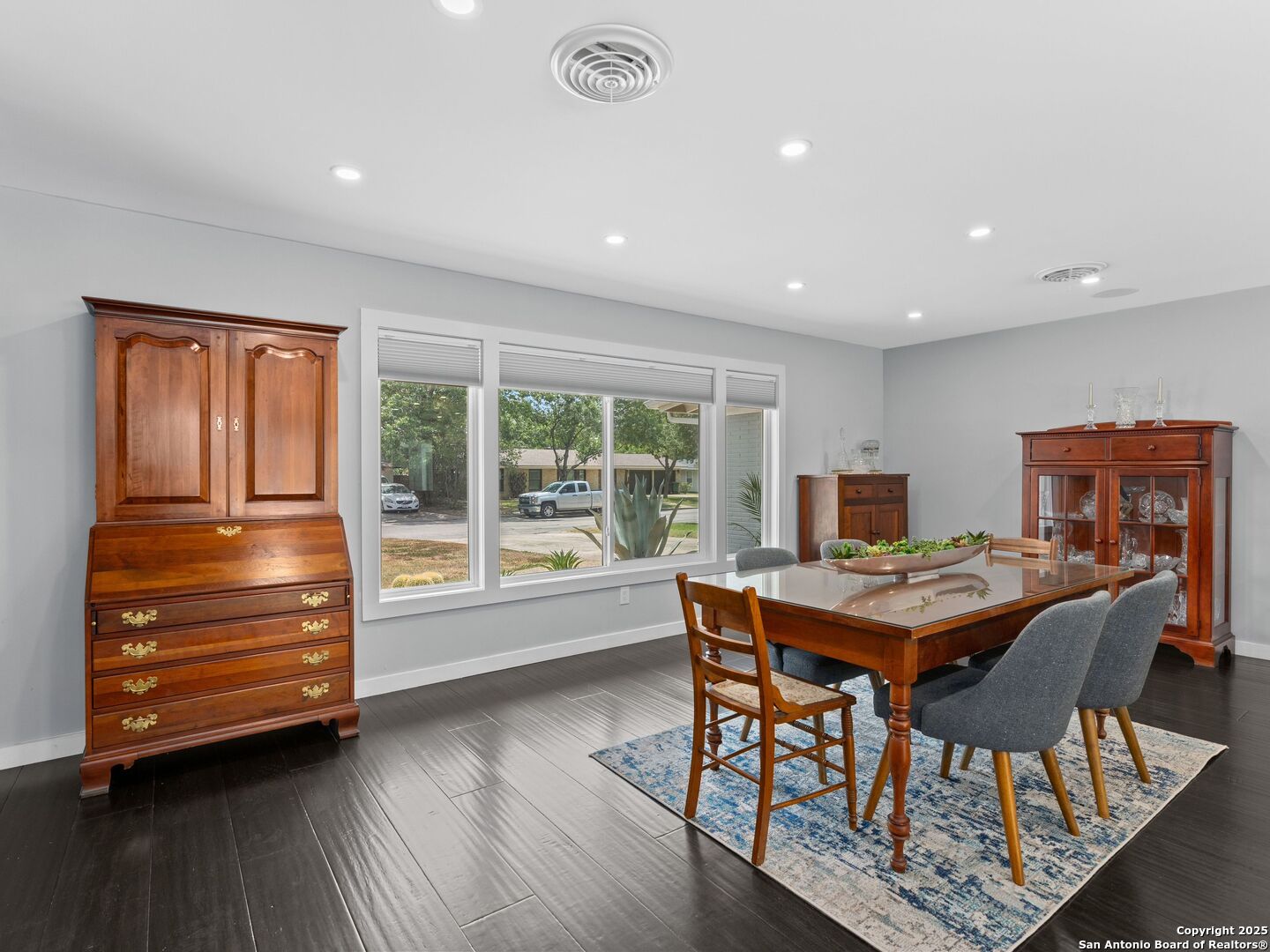 Exceptional 4-bedroom, 3.5-bath home located in the heart of highly sought-after Alamo Heights. This beautifully updated residence offers a spacious open floor plan, perfect for both everyday living and entertaining. The kitchen is a showstopper, featuring a massive island that spans the width of the space, modern pendant lighting, a gas cooktop, and stylish finishes-all flowing seamlessly into the dining and living areas. Can lighting throughout the main living spaces adds a sleek, modern touch and beautifully defines each area. The primary suite is privately split from the secondary bedrooms and boasts a newly updated bath with an extra-large walk-in shower, glass walls, and gorgeous new tilework. All bedrooms are generously sized and filled with natural light, enhanced by custom plantation shutters. Step outside to your own private oasis: a heated in-ground pool and hot tub, recently resurfaced, and a pergola-covered patio-ideal for year-round entertaining. A newly added half bath with direct backyard access serves as the perfect pool bath for guests. Additional upgrades include: - New commercial-grade real wood garage doors - New front door - New glass doors leading to the backyard for enhanced light and pool views - Energy-efficient double-pane windows - Water softener - Electric tankless water heater - New Turf in the backyard. Large hallway storage closet Just minutes from top-rated AHISD schools, dining, and shopping at The Alamo Quarry Market, this home blends comfort, style, and location in one unforgettable package.