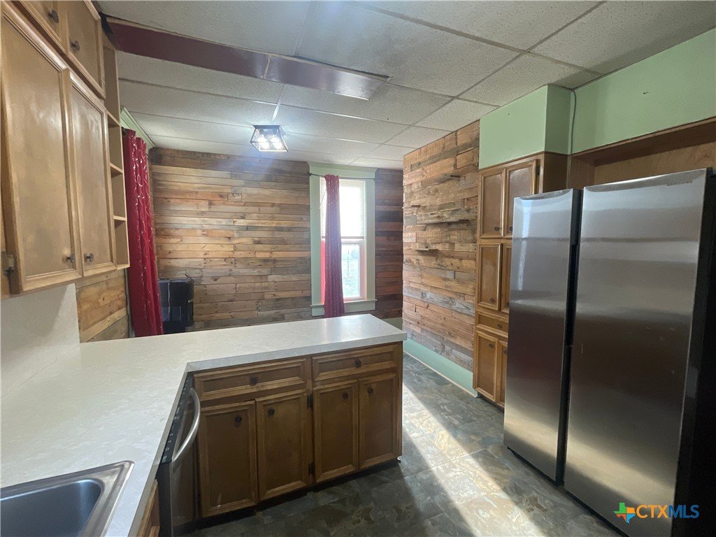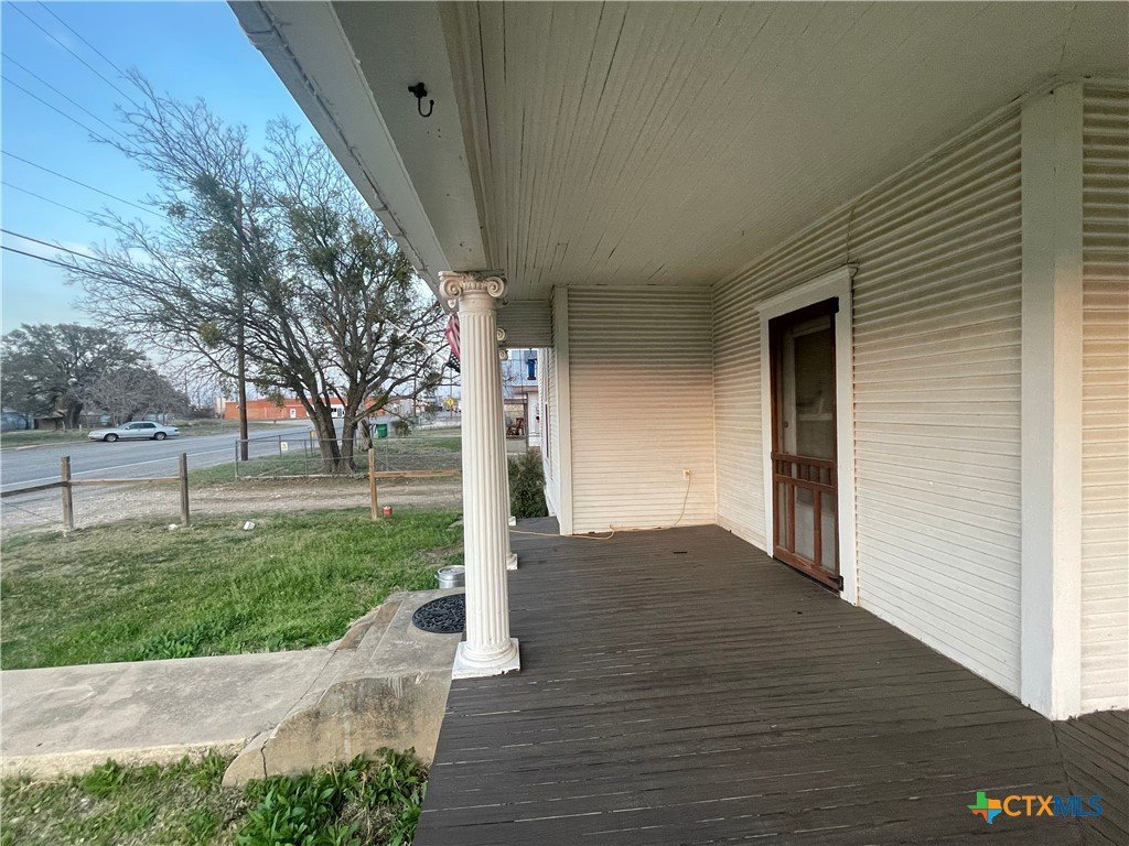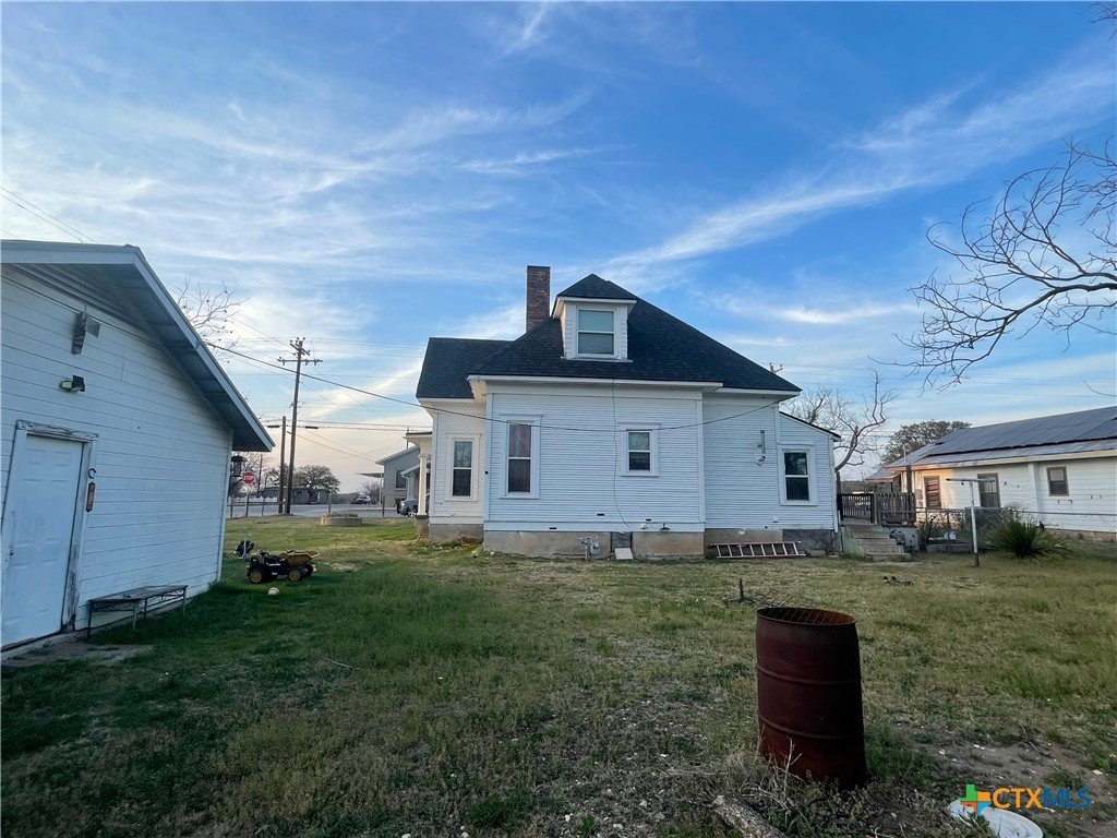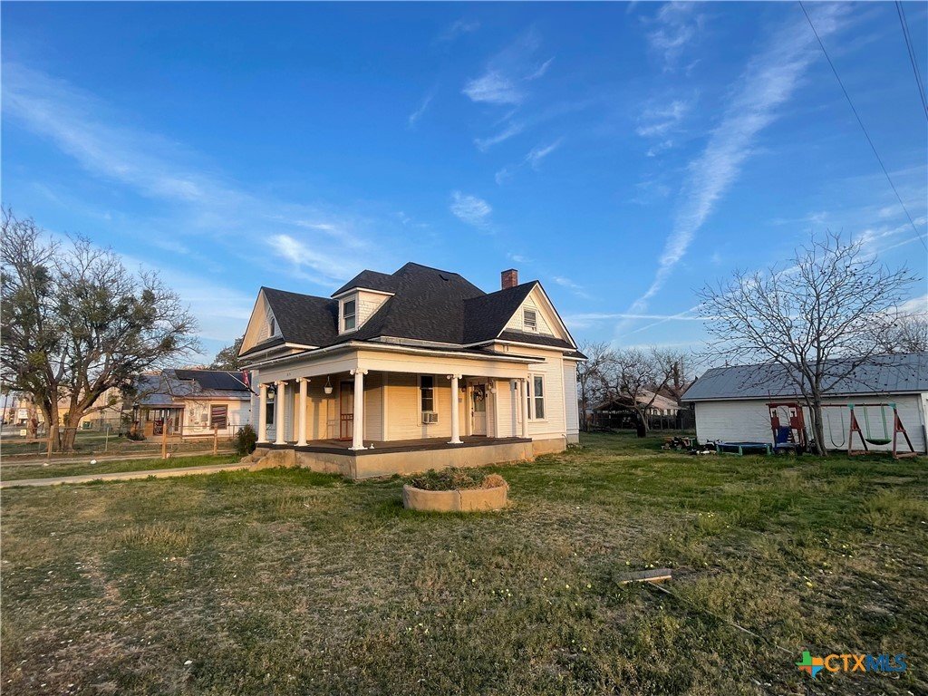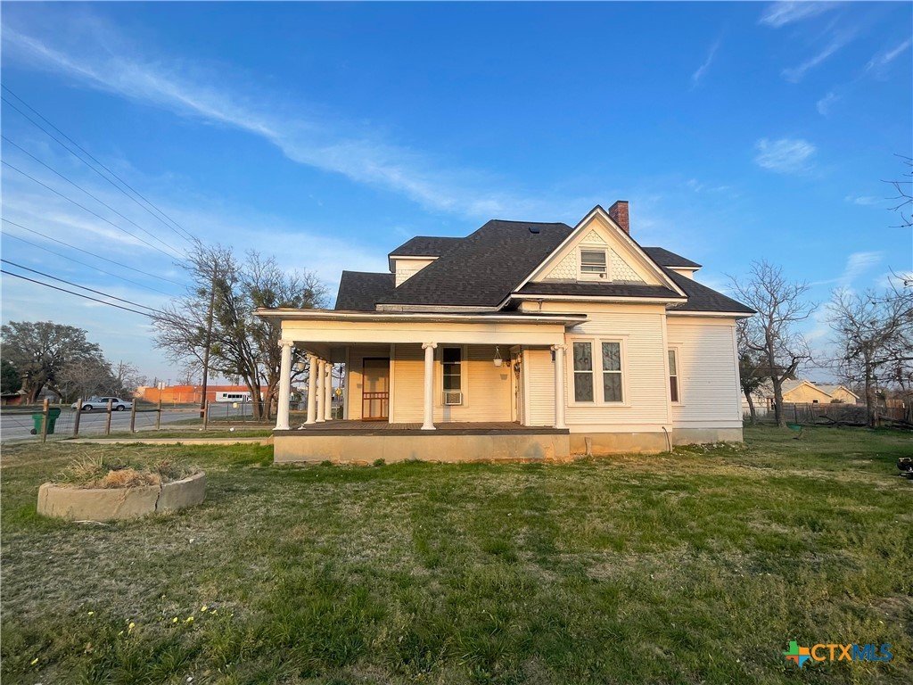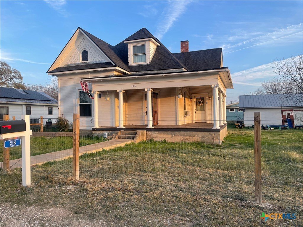 Own a piece of Hill Country history! This 1,590 sq ft, 3-bed, 2-bath traditional home sits on a fenced 0.25-acre corner lot. Enjoy stunning sunsets from the iconic wraparound porch. Major updates have been done, including brand-new roof, fresh upstairs carpet, and gas fixtures. All appliances convey! The property also offers a massive, detached cinderblock workshop/garage with a roll-up door—perfect for hobbies or storage. A premier investment or dream home waiting for your final touch. Small-town charm at its best!