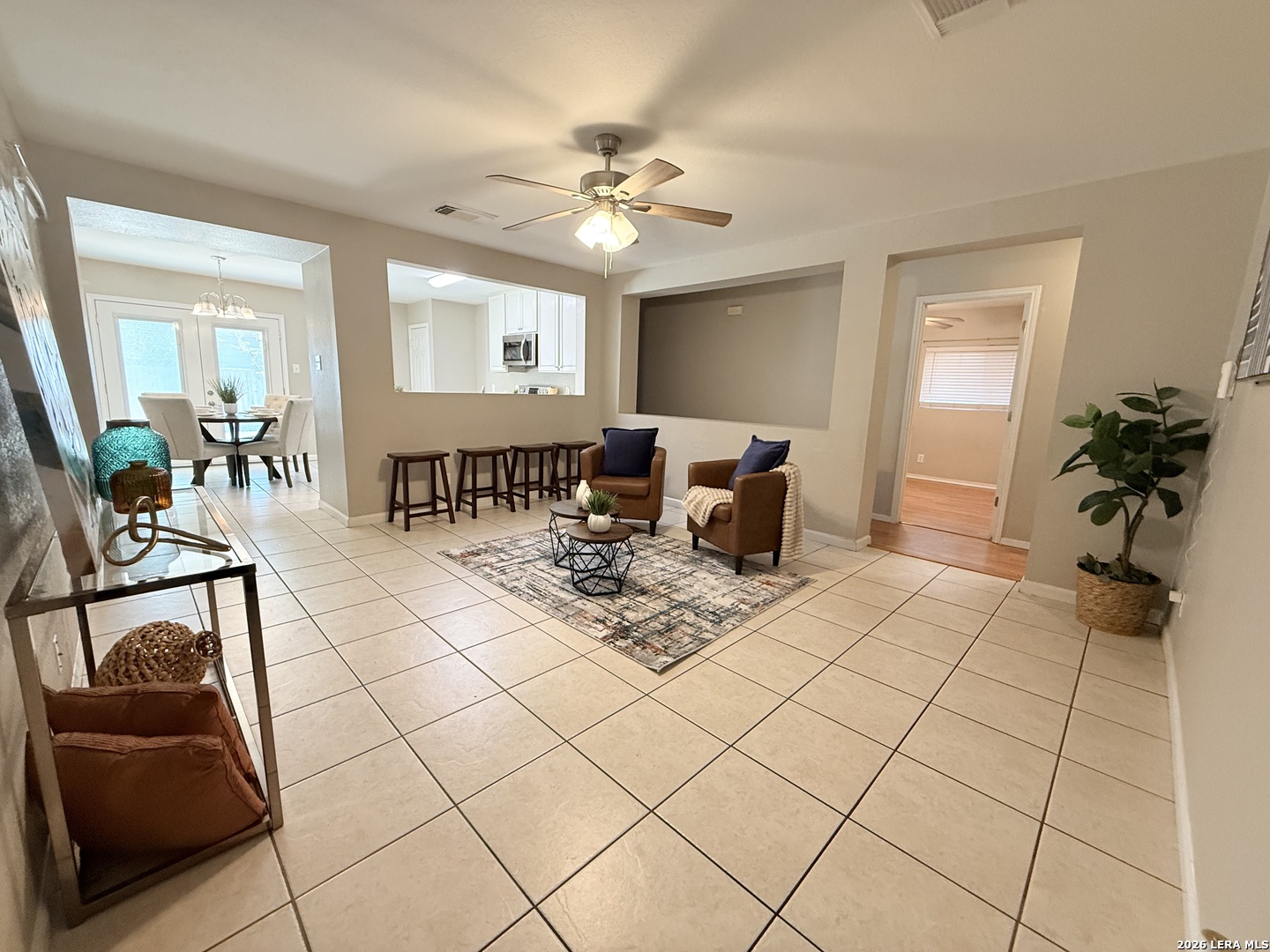 Perfect starter home located in a convenient, established neighborhood. This 4-bedroom, 2-bath residence features tile flooring in the living, dining, and kitchen areas, with wood laminate flooring in all bedrooms. No carpet throughout for easy maintenance. Inviting covered patio adds curb appeal and provides a welcoming entrance.