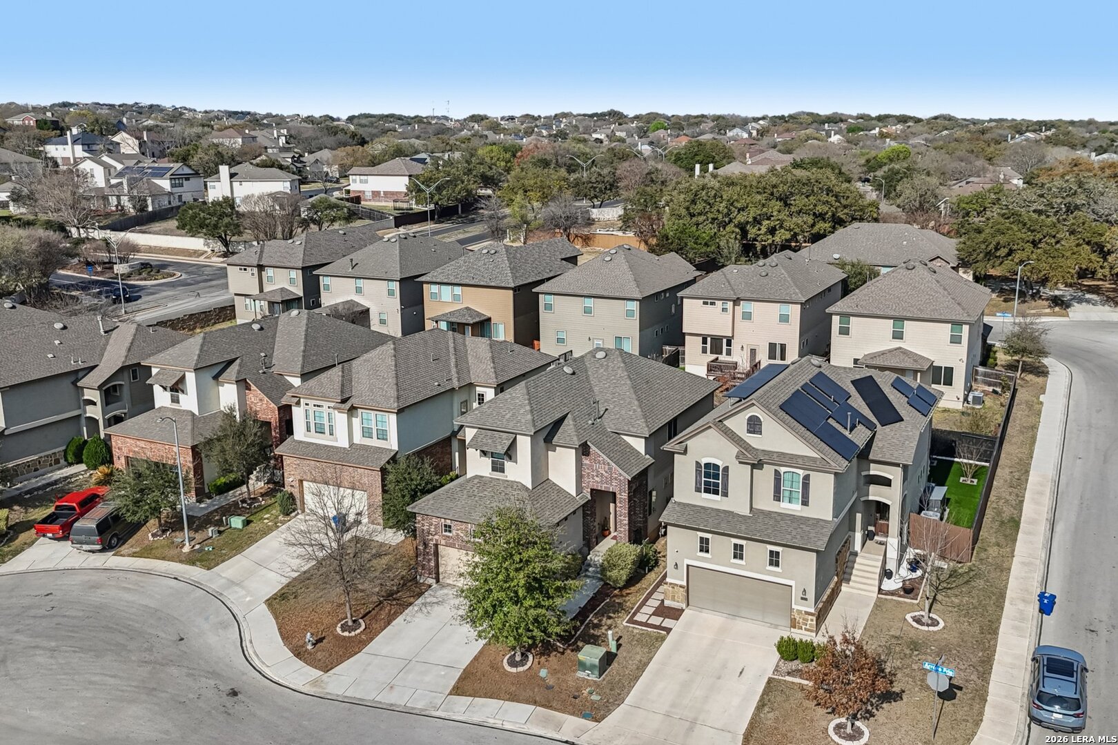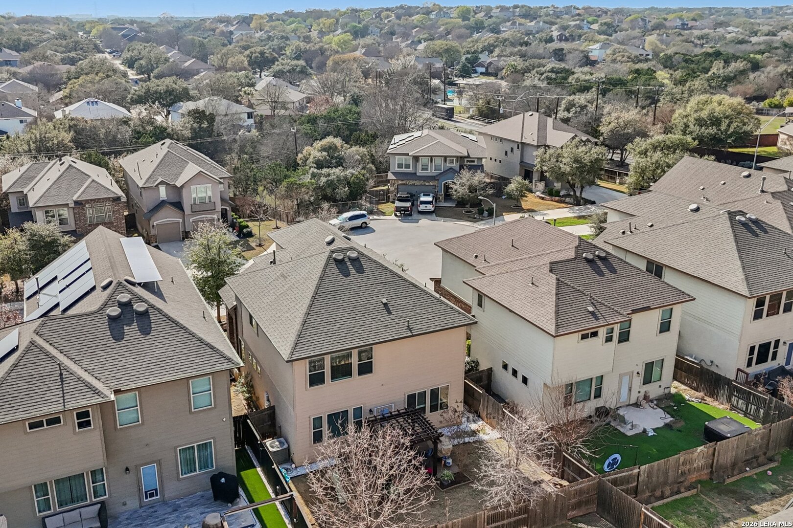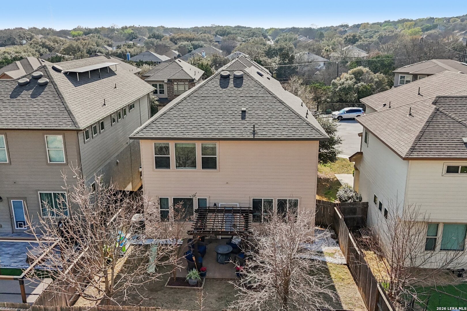 LOCATION..LOCATION..LOCATION This well-maintained two-story home offers plenty of living space with 3 bedrooms, 2 full baths, and 1 half bath. The open-concept floor plan provides a spacious living area that flows seamlessly into the kitchen and dining space, making it ideal for everyday living and entertaining. The kitchen features ample cabinet and counter space and overlooks the main living area, allowing for easy interaction with family and guests. Upstairs, the generous primary suite includes a private en-suite bath and walk-in closet, while the additional bedrooms offer flexibility for guests, a home office, or growing households. Situated on a manageable lot, the backyard provides space to relax or entertain while remaining low maintenance. The home also includes a two-car garage and modern features. Conveniently located near Loop 1604, Hwy 281, shopping, dining, and major employers, this home offers easy access to everything North San Antonio has to offer while still providing a quiet neighborhood setting.