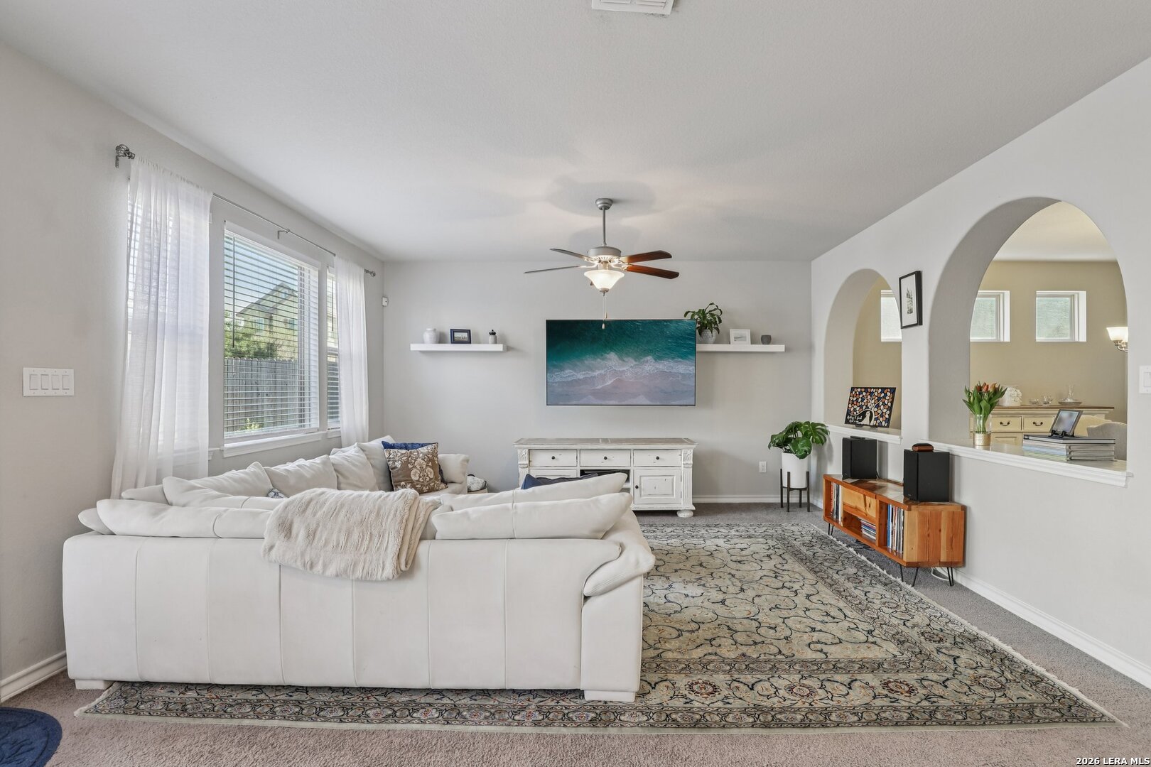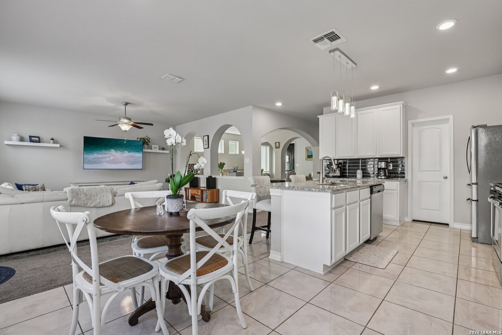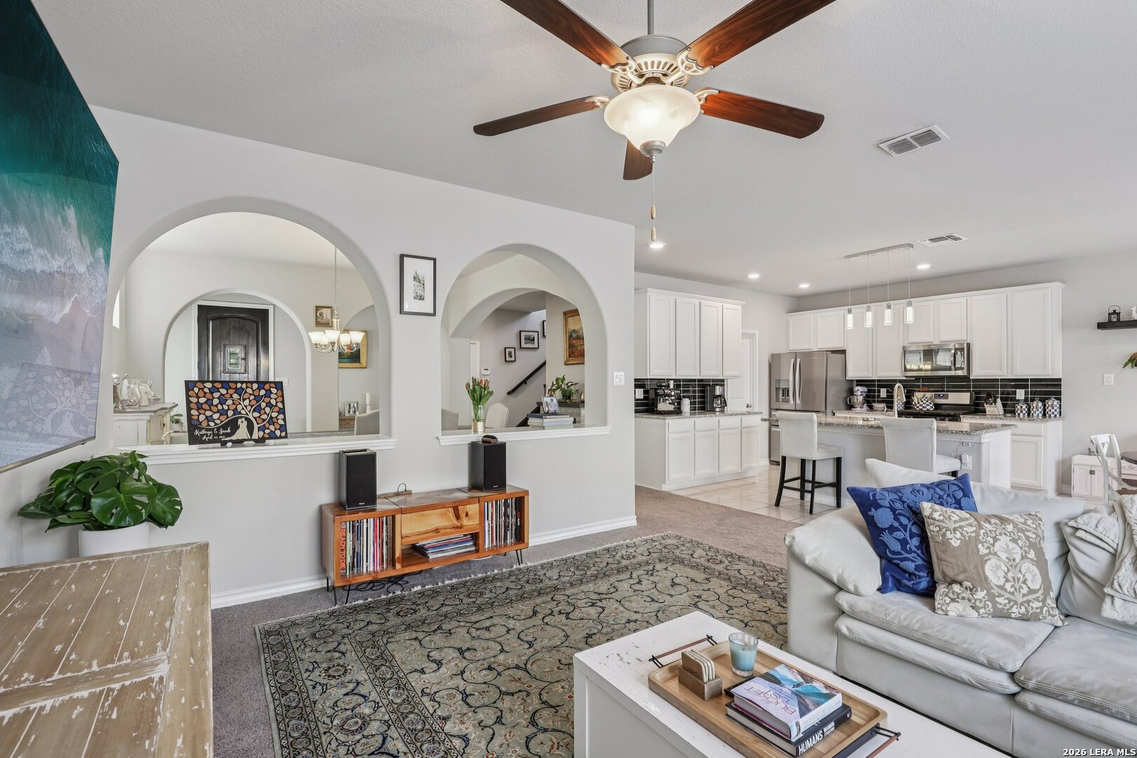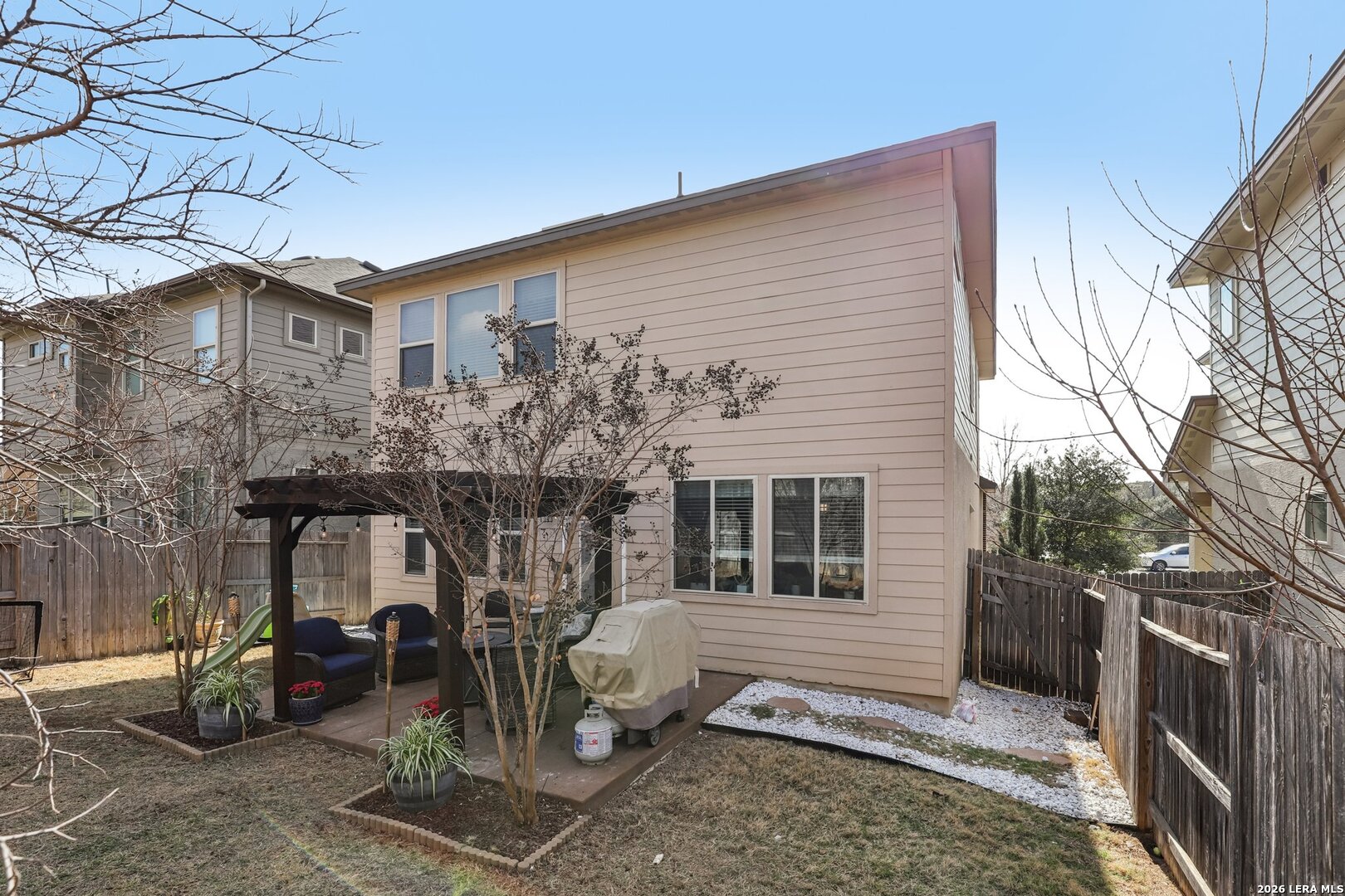 LOCATION..LOCATION..LOCATION This well-maintained two-story home offers plenty of living space with 3 bedrooms, 2 full baths, and 1 half bath. The open-concept floor plan provides a spacious living area that flows seamlessly into the kitchen and dining space, making it ideal for everyday living and entertaining. The kitchen features ample cabinet and counter space and overlooks the main living area, allowing for easy interaction with family and guests. Upstairs, the generous primary suite includes a private en-suite bath and walk-in closet, while the additional bedrooms offer flexibility for guests, a home office, or growing households. Situated on a manageable lot, the backyard provides space to relax or entertain while remaining low maintenance. The home also includes a two-car garage and modern features. Conveniently located near Loop 1604, Hwy 281, shopping, dining, and major employers, this home offers easy access to everything North San Antonio has to offer while still providing a quiet neighborhood setting.